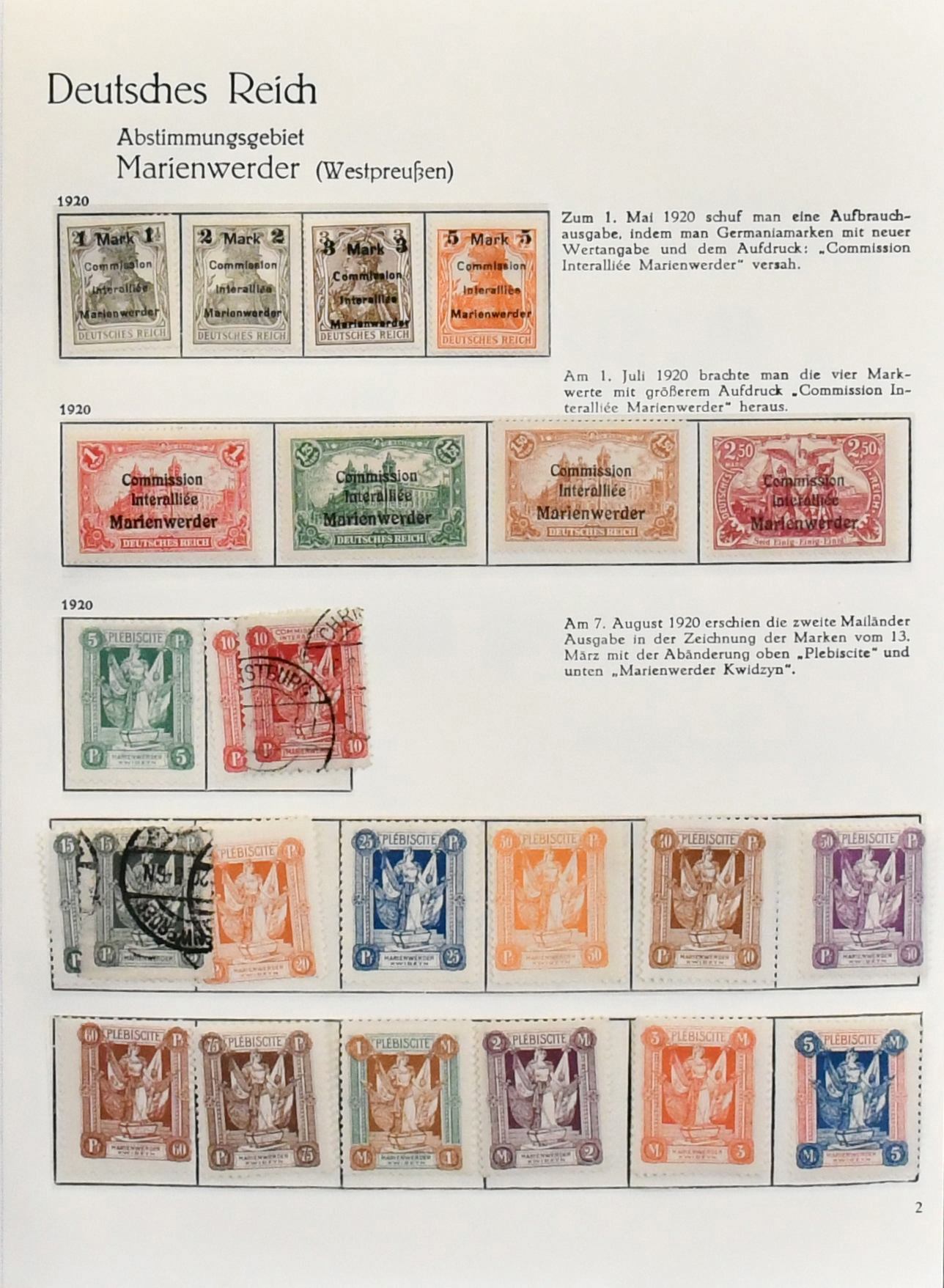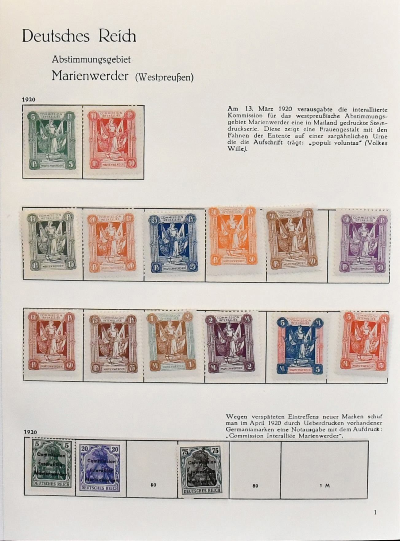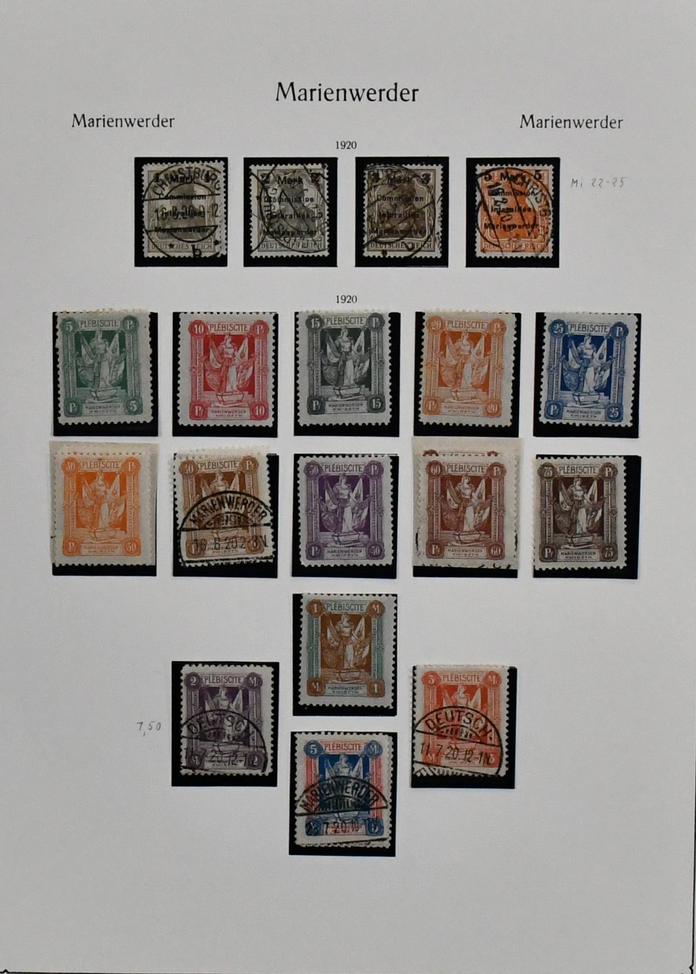 Marienwerder, bis auf Nr. 17 und 21 nahezu kpl. Sammlung, mit Nr. 1/14, 19/20 (Mi. 190,-), 22/25 (Mi. billigst 100,-), 30/43 postfr. u. gest. (305,-) usw., auf Leuchtturm-Vordrucken