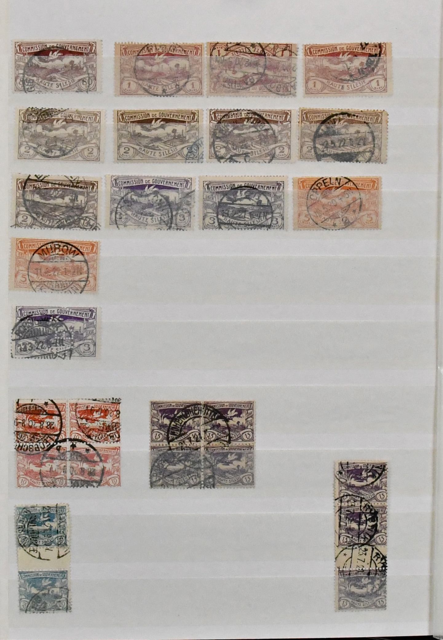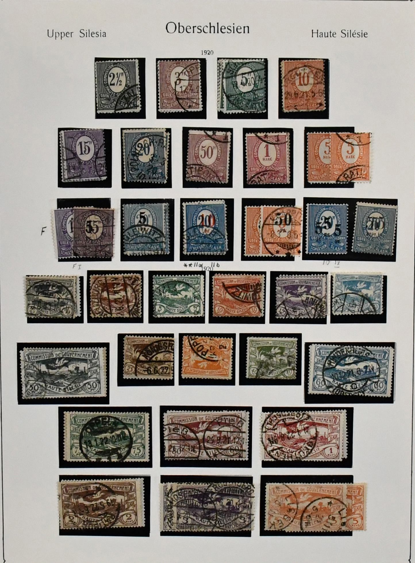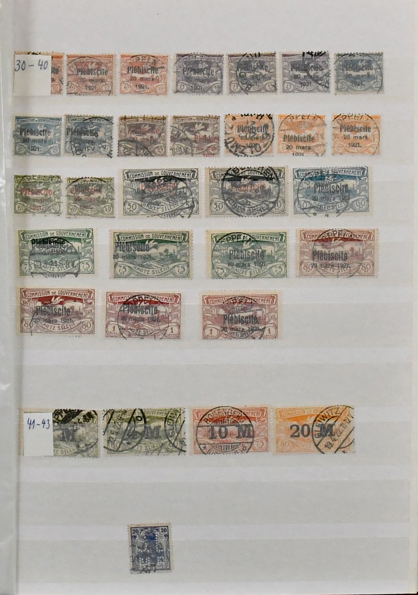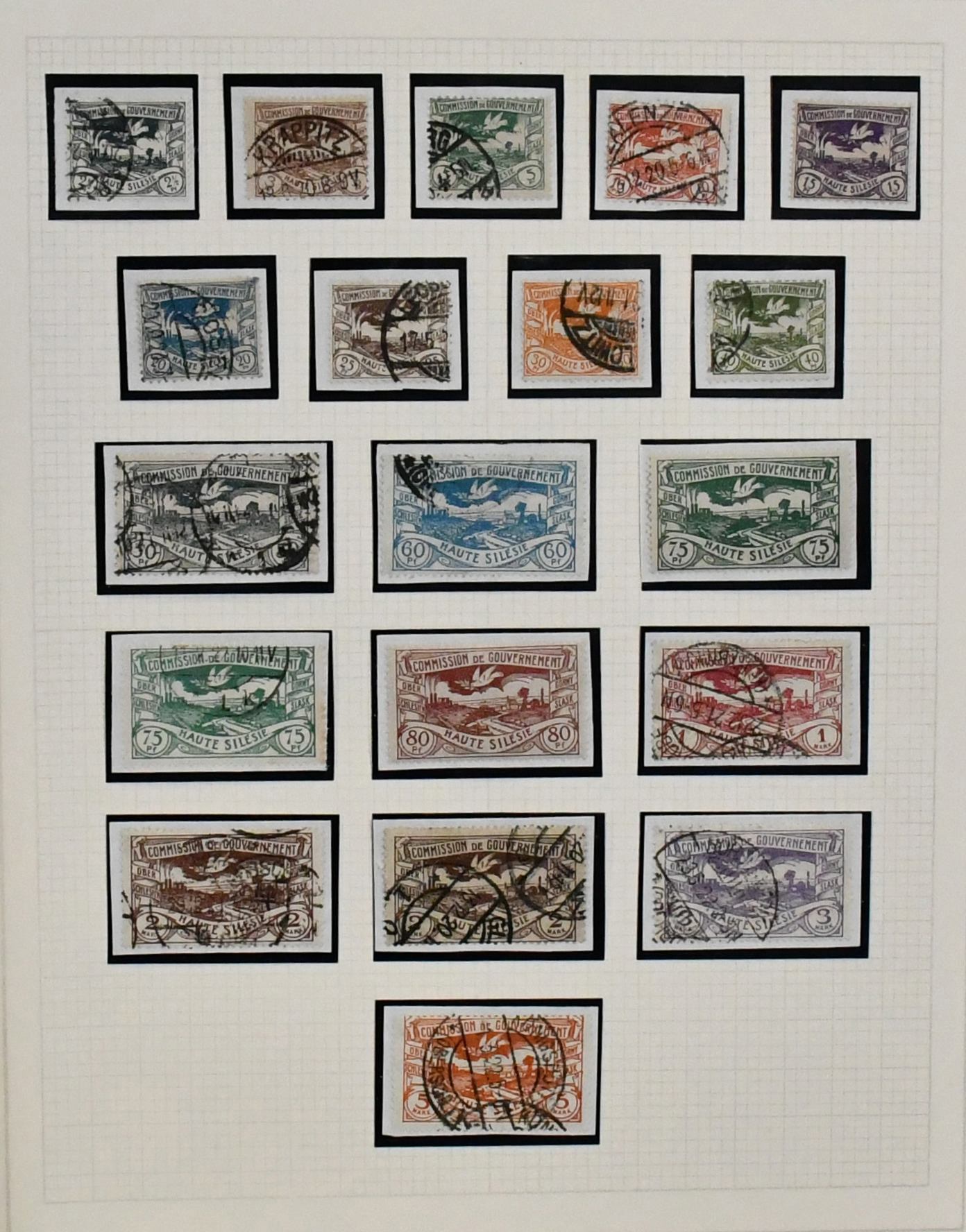 Oberschlesien, gestempelte, von Nr. 1-43 komplette Slg., dabei mehrfach Nr. 1/9, mehrf. Nr. 10/12 inkl. dreimal Nr. 12 (Mi. billigst 195,-), gute Nr. 10F per sechs (alle ungeprüft, bitte ansehen), 30/40 meist mehrf. (780,-) usw. Dazu 160 Dienst-Werte und Östl. Oberschlesien, Insurgenten-Ausgabe Nr. 3B (Mi. 100,-), sowie reguläre Ausgaben Nr. 1/18