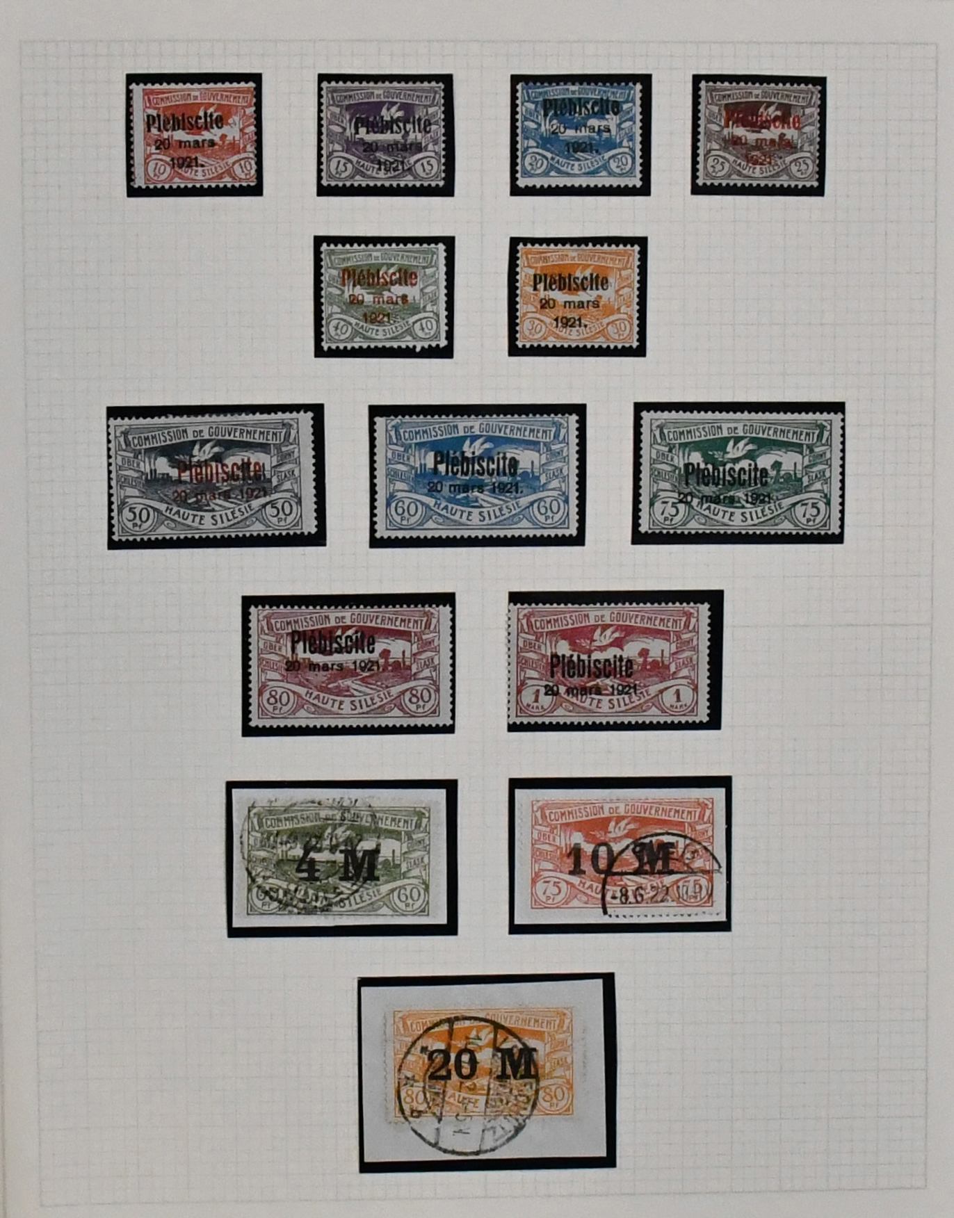 Oberschlesien, von Nr. 1-43 komplette Sammlung, dabei Nr. 1/12 inkl. Nr. 10F gebr. und ungebr. (ungepr.), Nr. 30/40 usw. Dazu Dienst Nr. 1/20, sowie Oppelner Notausgaben Nr. 1/25, 27/28, 31 u. 33, teils postfr., teils ungebr., alle nur mit Altsignaturen und daher unbewertet