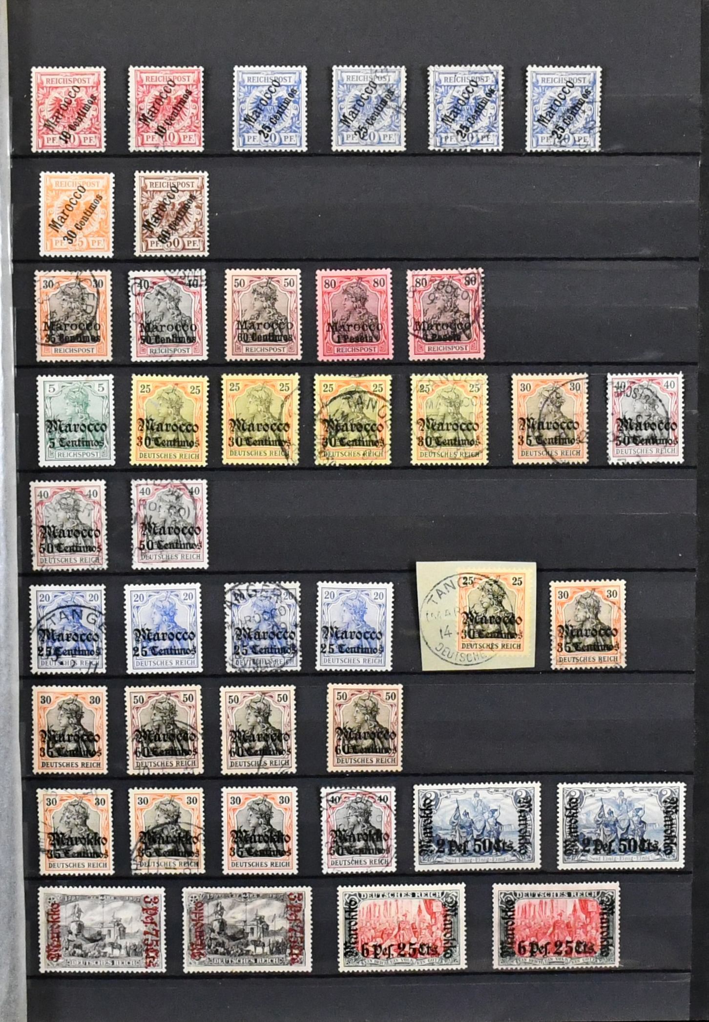 Marokko, Slg. ab Nr. 3/6, teils mehrfach, mit Nr. 12/15, 26/28 gest., teils mehrf., 56/58 per zwei, usw.