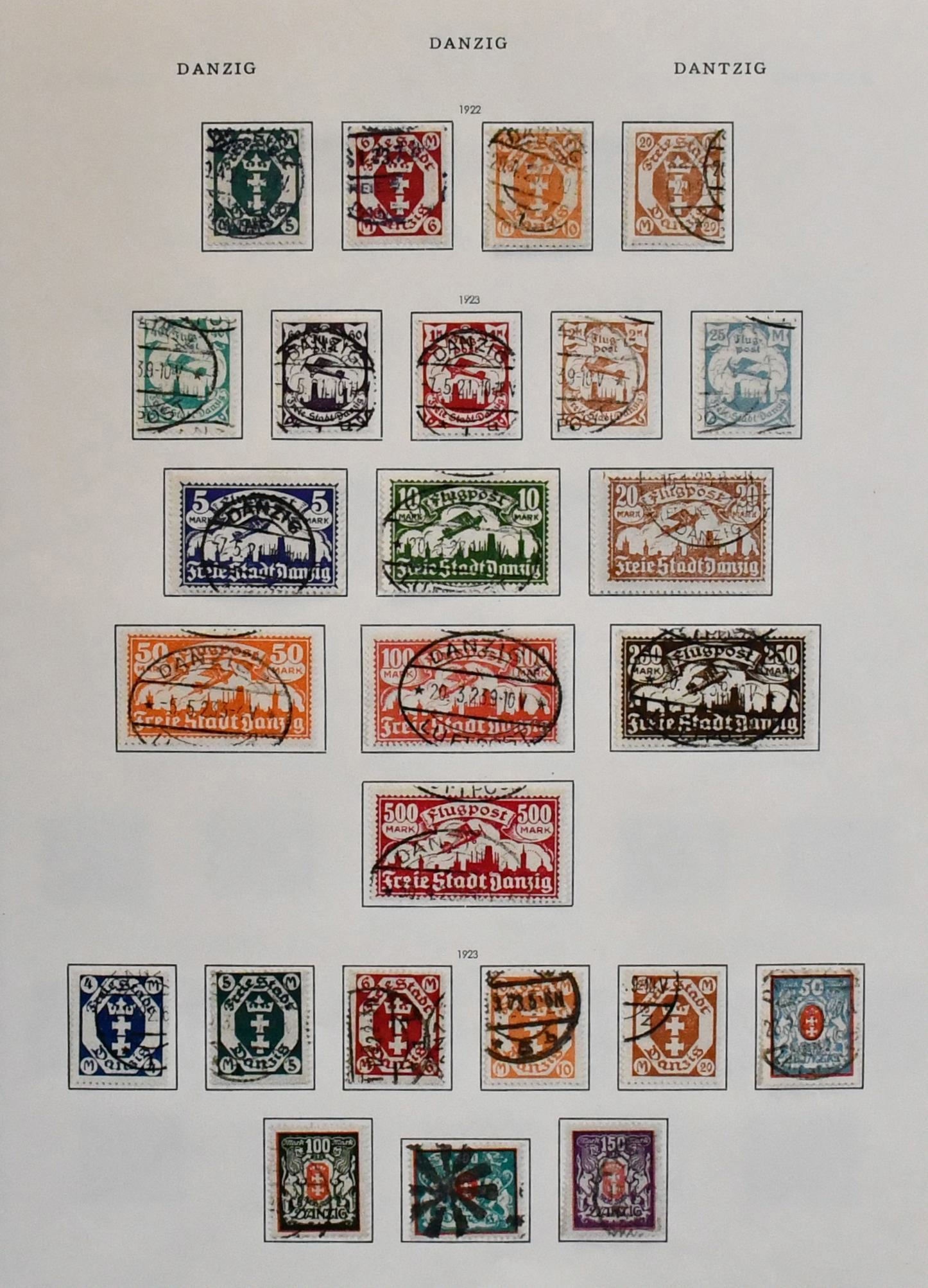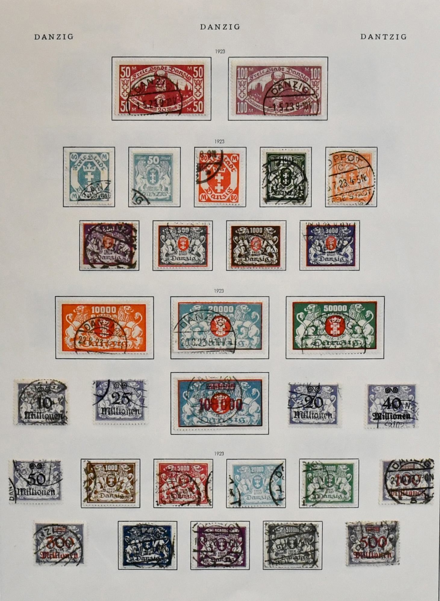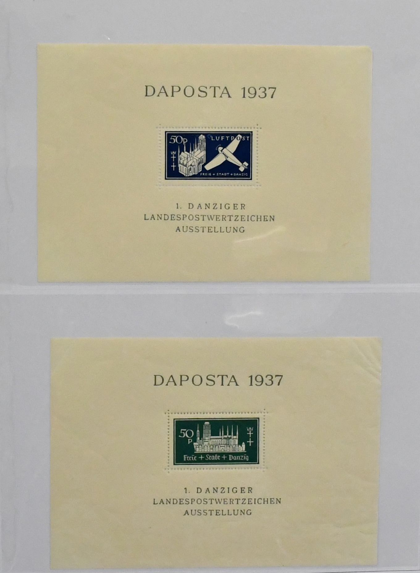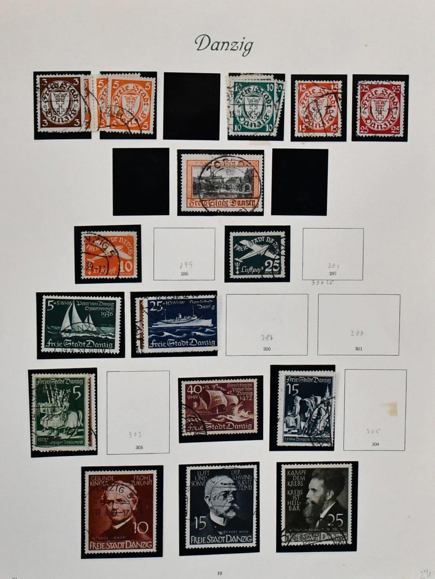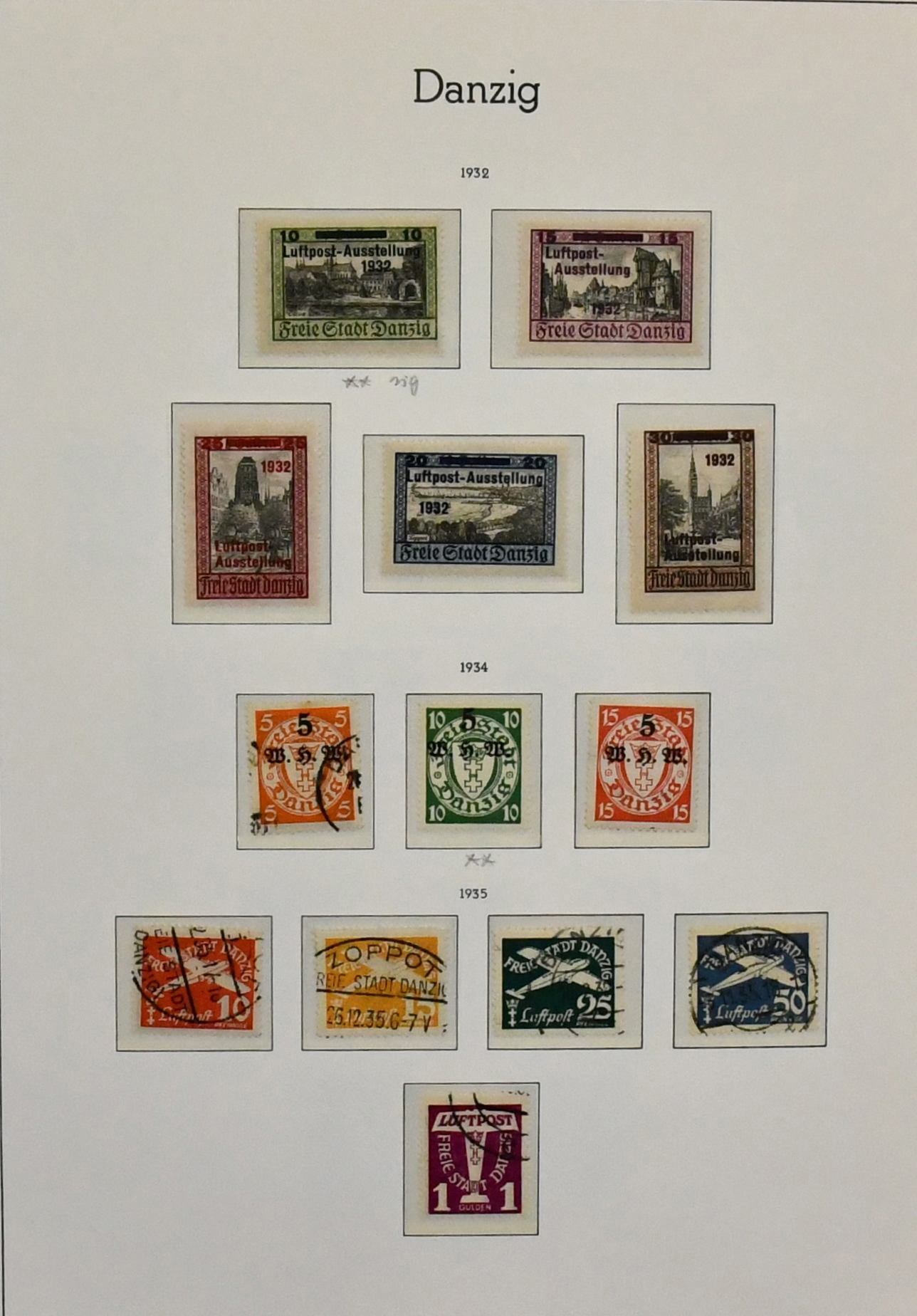 Danzig, 1920/1939, umfangreiche Sammlung, lediglich ohne beide Innendienst-Sätze und Nr. 237, nahezu kpl., inkl. Nr. 1/31, 37 per zwei, 41/46I, 41/46 und 45/46II, 50/192 teils mehrf., einige Infla-Ganzsachen, Nr. 202/11, 220/35, 238/39 gest., Bl. 1/2 einmal gest., sowie auf Briefen, Bl. 3 gest., allen Winterhilfen, Nr. 297 postfr. mit Plattennummer usw. Dazu Dienst Nr. 1/51 und Porto Nr. 1/47 ebenso kpl.