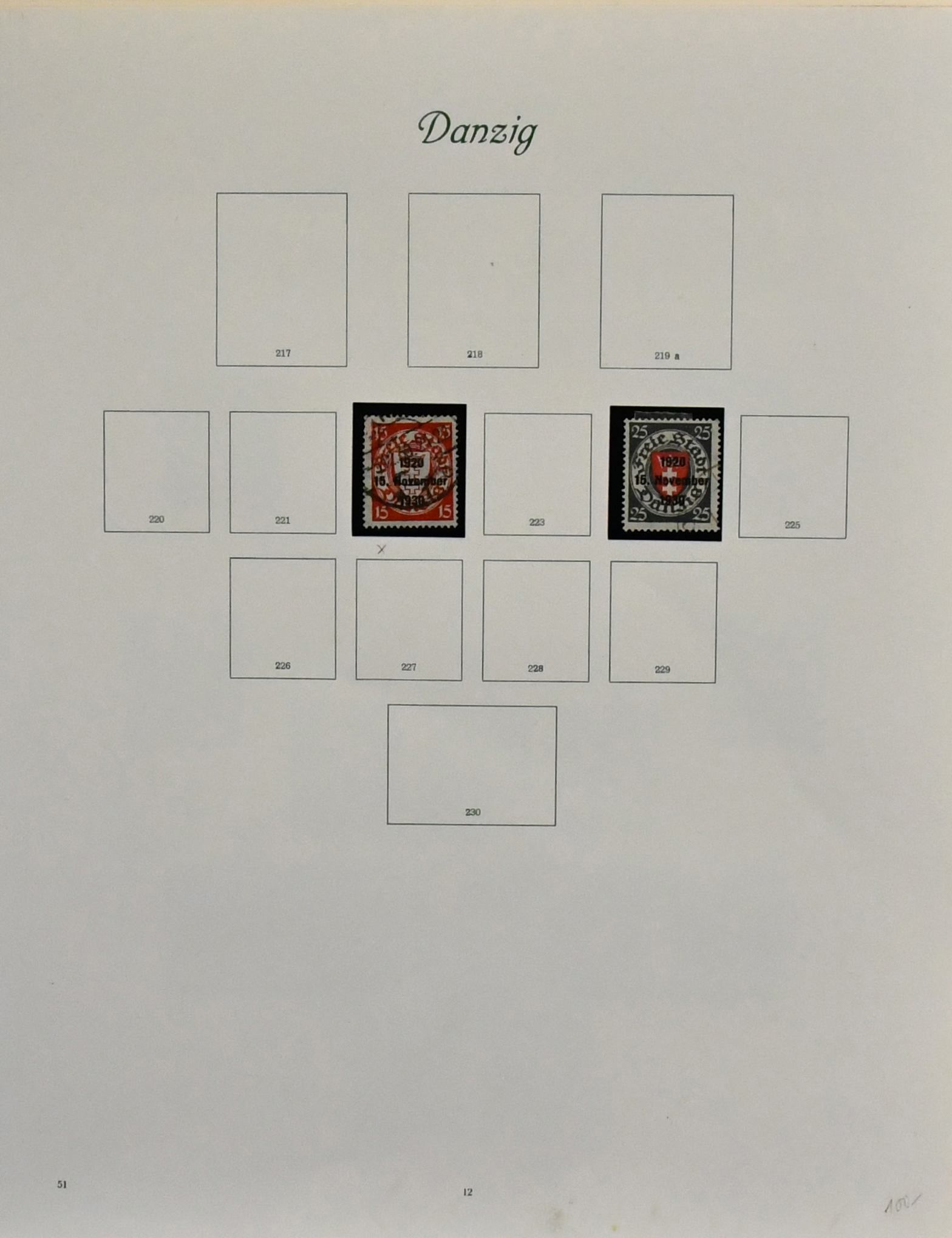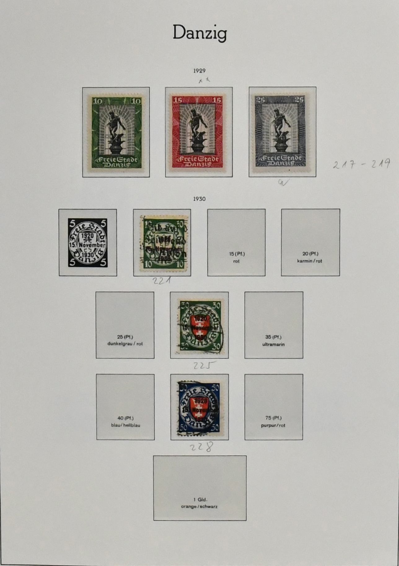 Danzig, 1924/1939, gest. Slg. mit u.a. Nr. 207, 240/44, 256/69, Bl. 1/2, Bl. 3 (Mängel), 297 (140,-), Porto Nr. 30/37, 40/42, Nr. 45 u. 47 (Mi. 250,-) usw., auf älteren Borek-Vordrucken. Mi. rund 1300,-