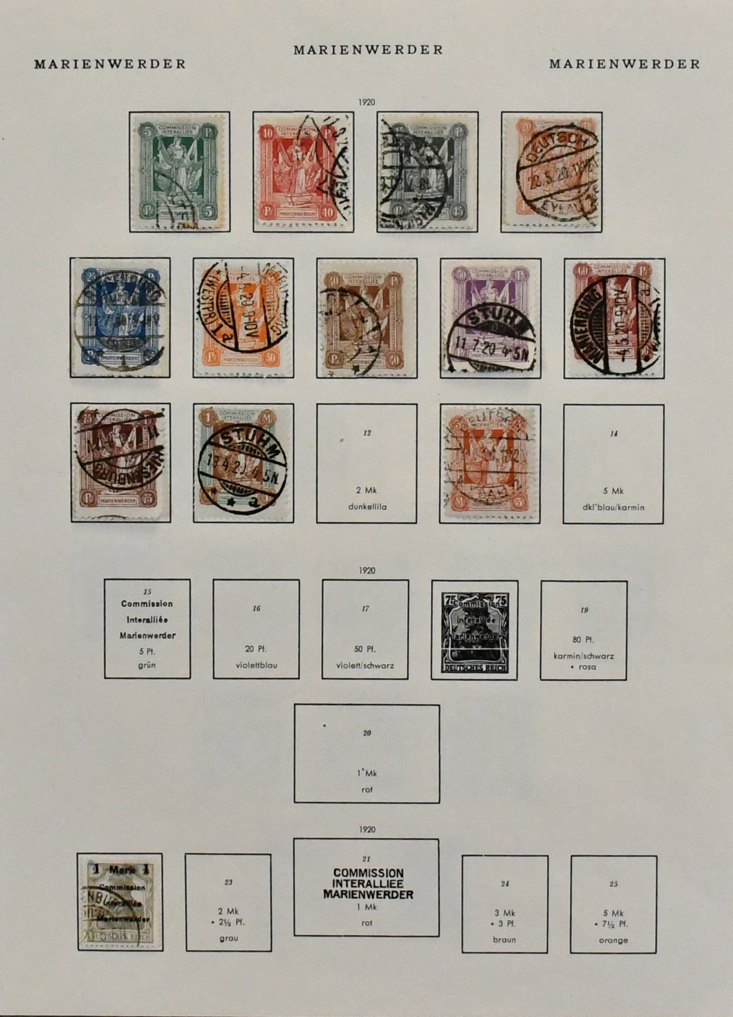 Deutsche Abstimmungsgebiete, gest. Slg. mit Allenstein Nr. 1/28 (Mi. 150,-), Marienwerder Nr. 22, 26/43 (ohne Nr. 32) kpl. (Mi. 100,-) usw.