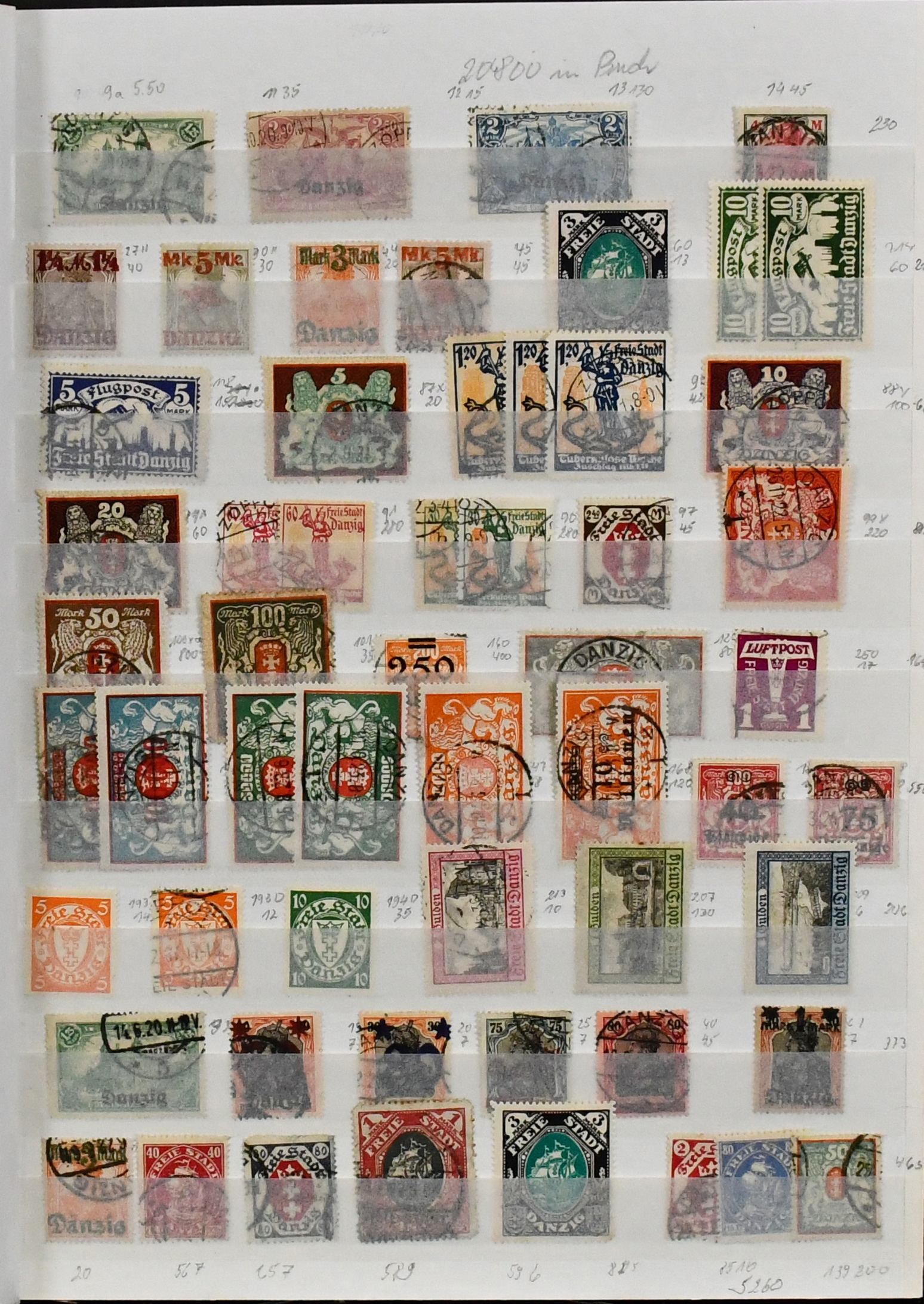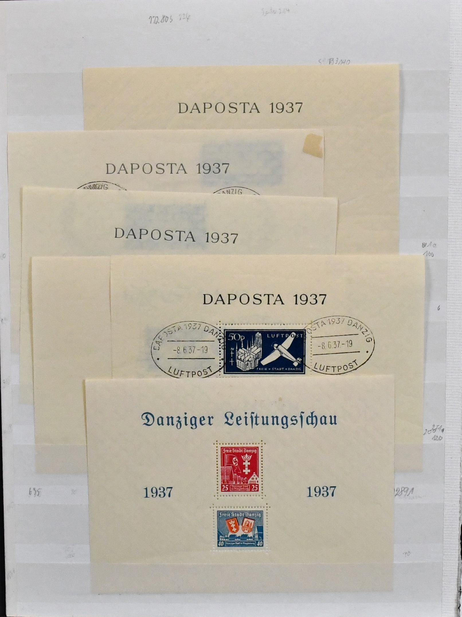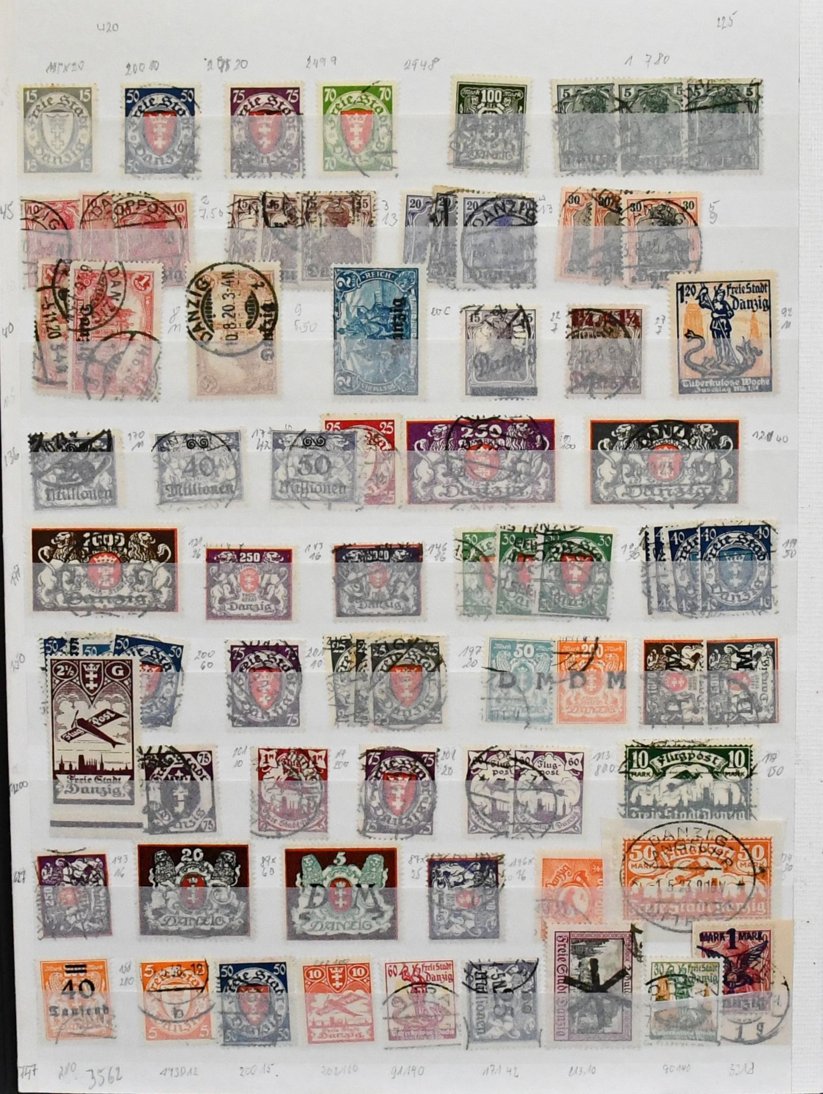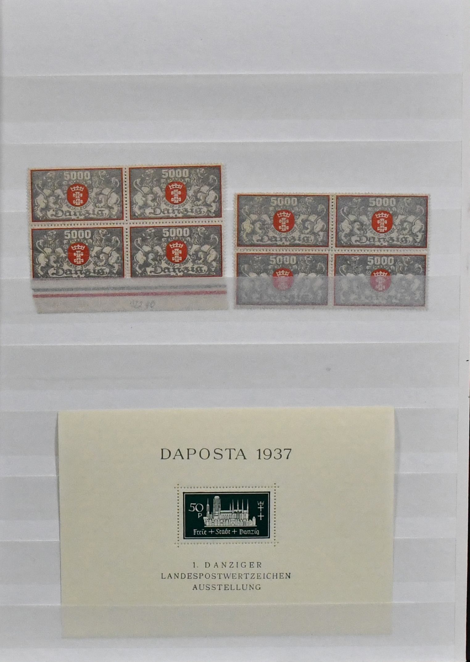 Danzig, Zusammenstellung besserer Ausgaben, Schwerpunkt Infla, dabei Nr. 33 ungebr. (Mi. 170,-), 87/89 in postfr. Viererblöcken, 190/92 ungebr., sonst fast alles gestempelt, z.B. zweimal Nr. 43 ohne Unterdruck auf Briefstück (Mgl.), nach 1924 mit u.a. Nr. 207, 208 gest., Bl. 1/2 mehrf., Bl. 3 postfr. usw.