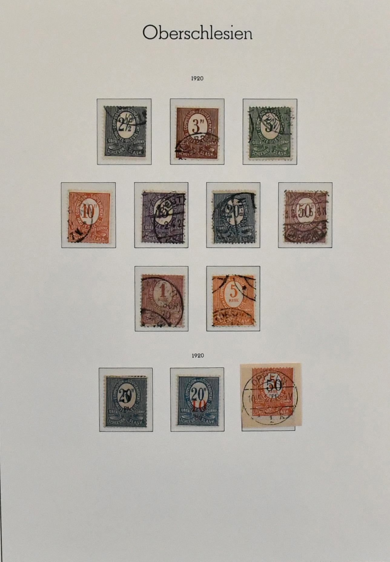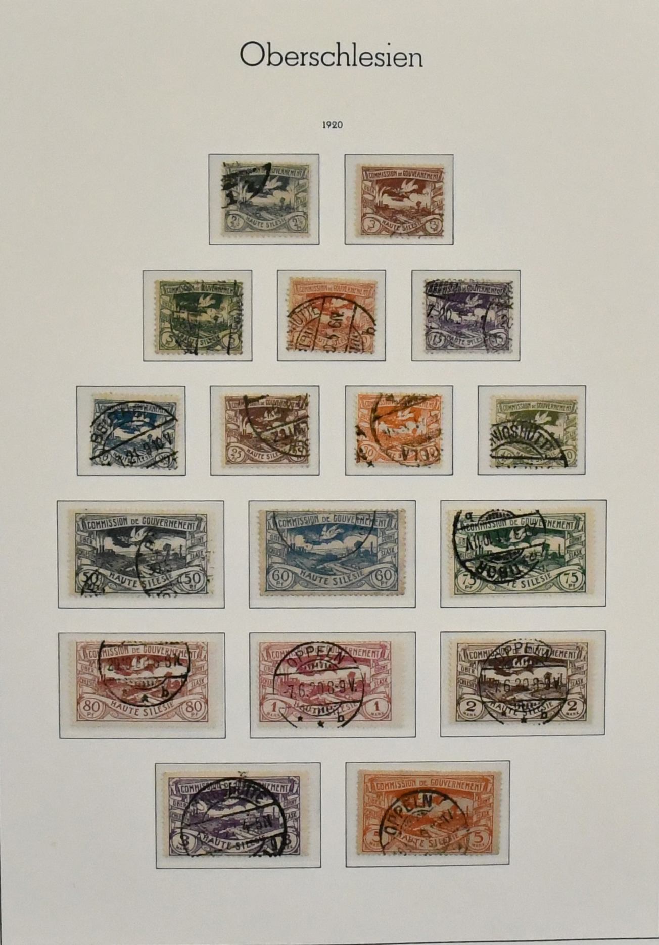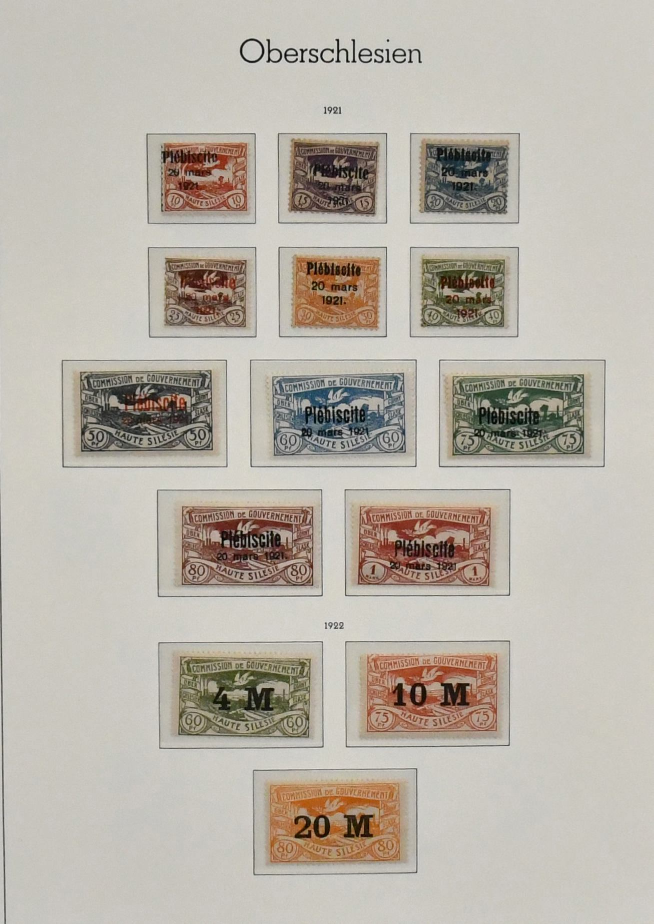 Oberschlesien, kpl. Slg. mit Nr. 1/9 gest., 12 gest., 30/40 usw. Dazu Dienst Nr. 1/20 kpl., auf Leuchtturm-Vordrucken