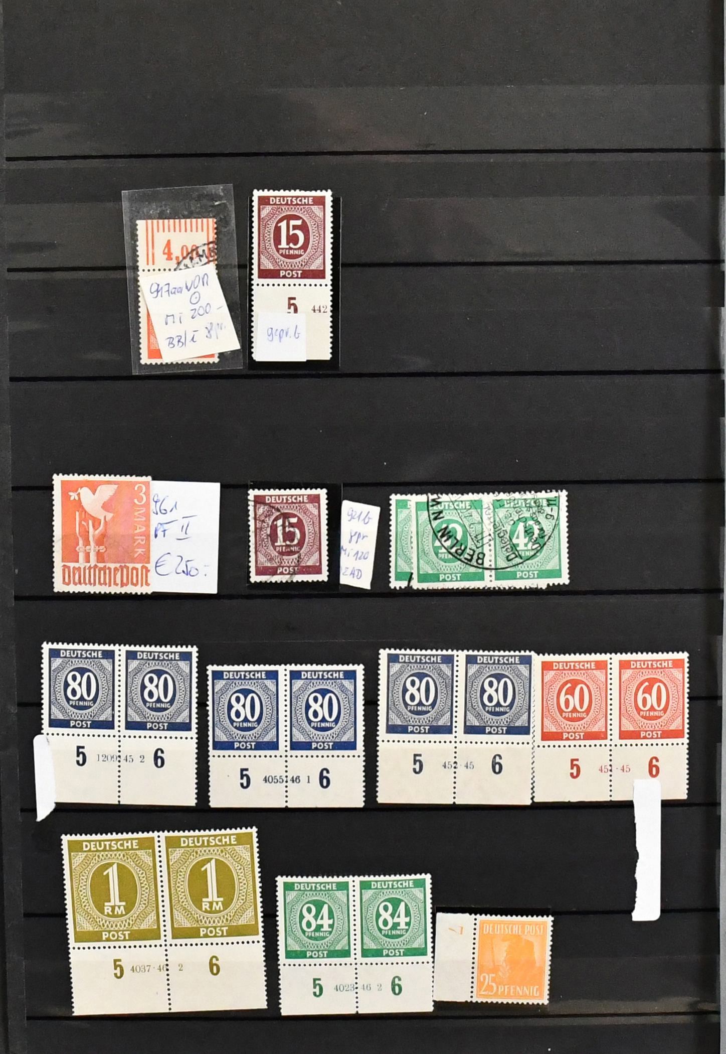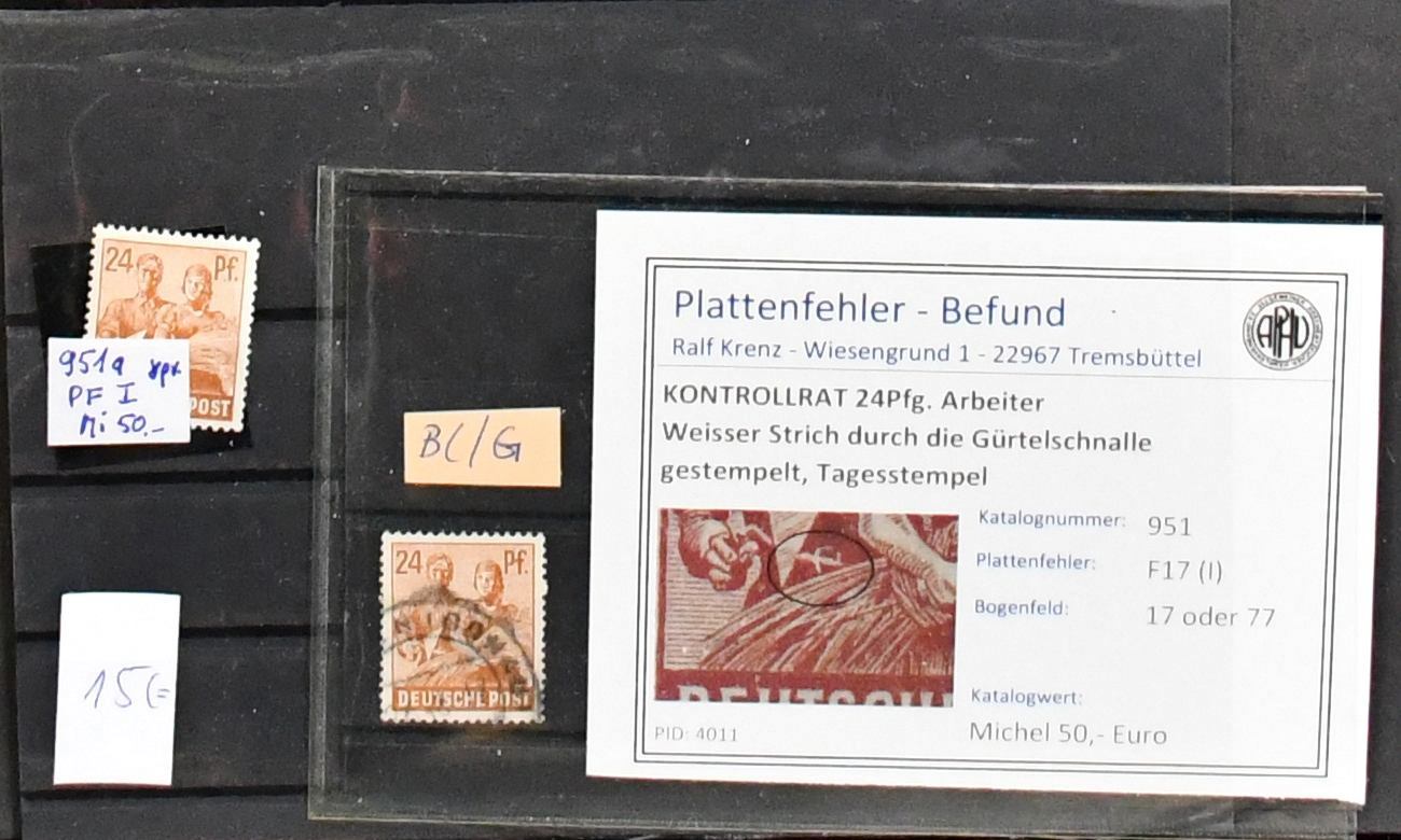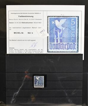 Kontrollrat, Partie besserer Ausgaben inkl. postfr. HAN Nr. 929 (Mi. 120,-) und 947 (300,-, ein Wert "eckrund"), 948L (2, 500,-), 951I postfr. u. gest. (100,-), sowie zweimal Nr. 962b mit Prüfbefund (360,-). Dazu 16mal Nr. 951, laut Einlieferer in "d"-Farbe, aber ungeprüft
