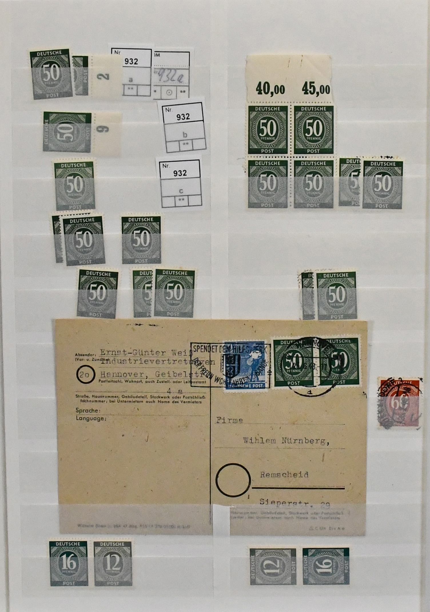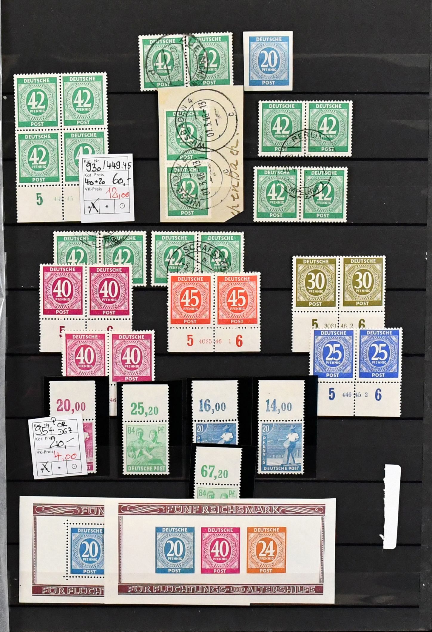 Kontrollrat, Zusammenstellung inkl. guten gest. Farben, je gepr., mit Nr. 917aaWOR, 921b, ferner Nr. 930 16mal gest., meist in Paaren, gute postfr. HAN-Paare inkl. Nr. 926, 930, 931, 933, 935 (3 versch. inkl. seltenen), 936, 937, Bl. 12A/B postfr., 952DZ, 961 zart gest. etc.