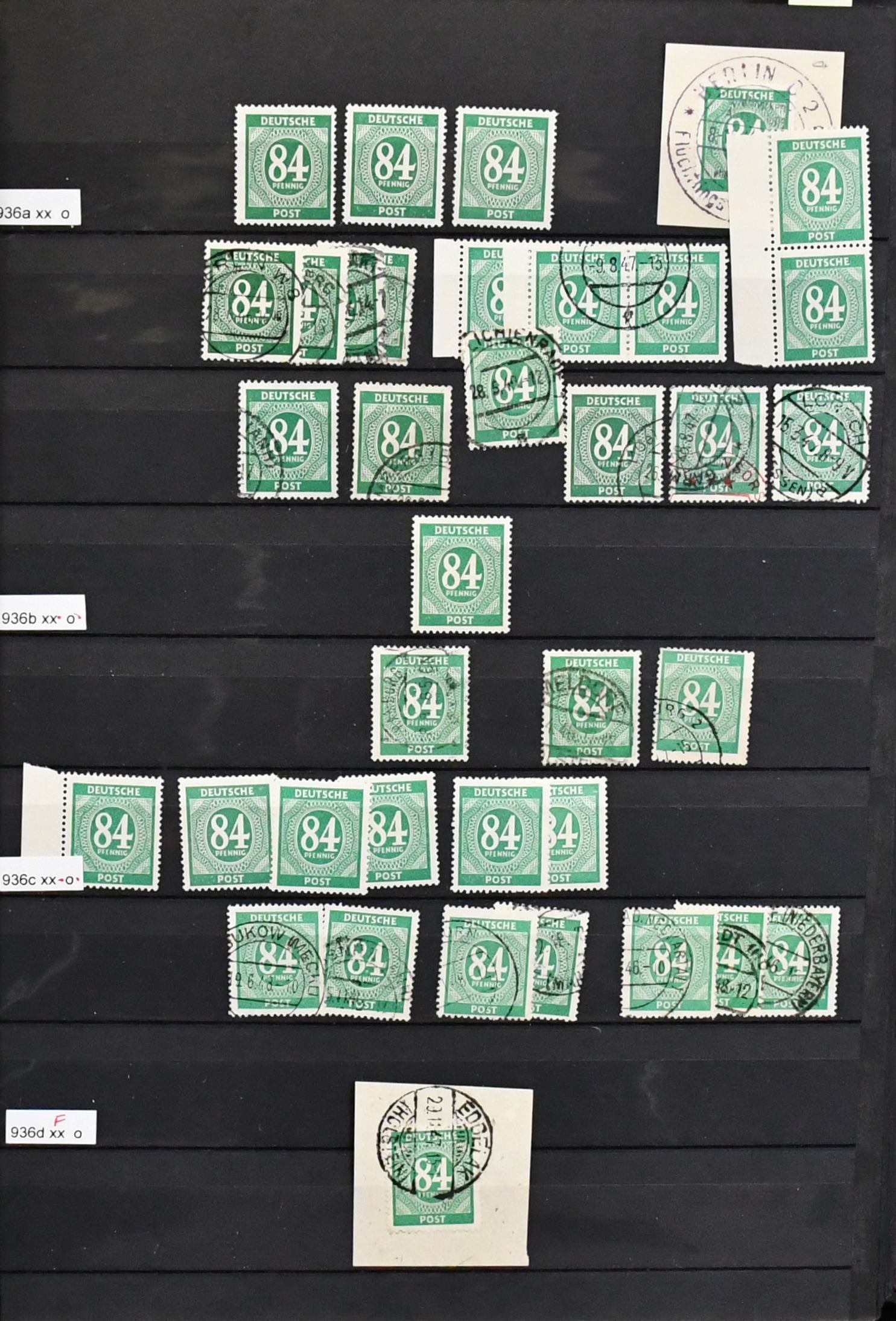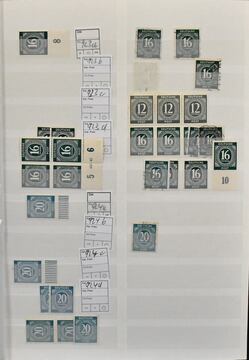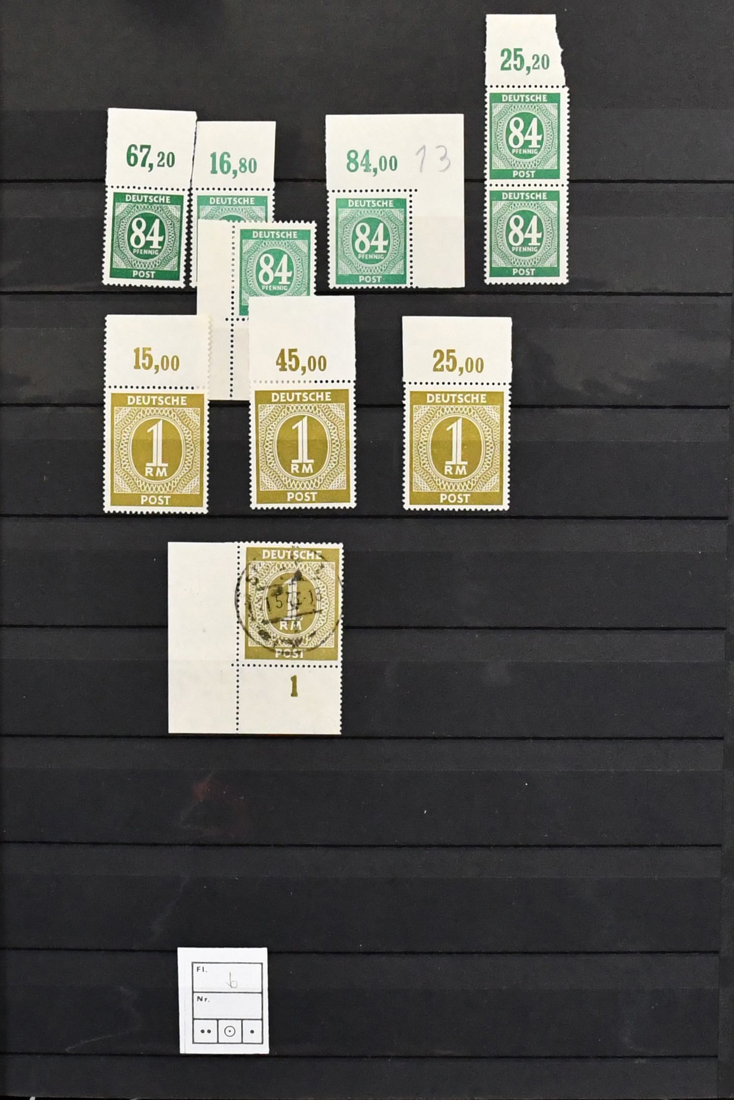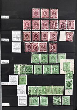 Kontrollrat, nur Ausgabe Ziffern, Spezialslg. von über 210 Belegen inkl. Vorlagebögen, sowie diversen losen Marken, fast alle mit "Hannover"-Stempeln, dabei diverse Ränder inkl. OR, Farben, H-Bl. 123, acht Belege mit der 42 Pfg. (meist kpl. Serien-Vorlage-Bögen), Bl. 12A/B (diese mit Berliner SST) etc.