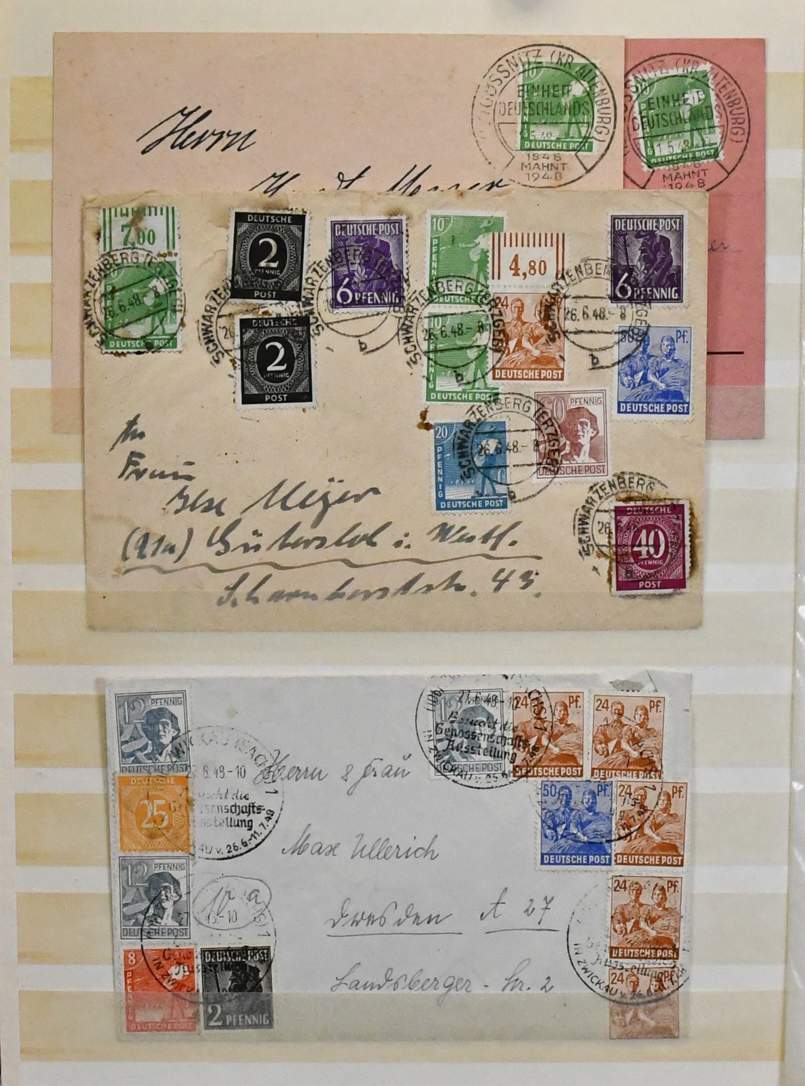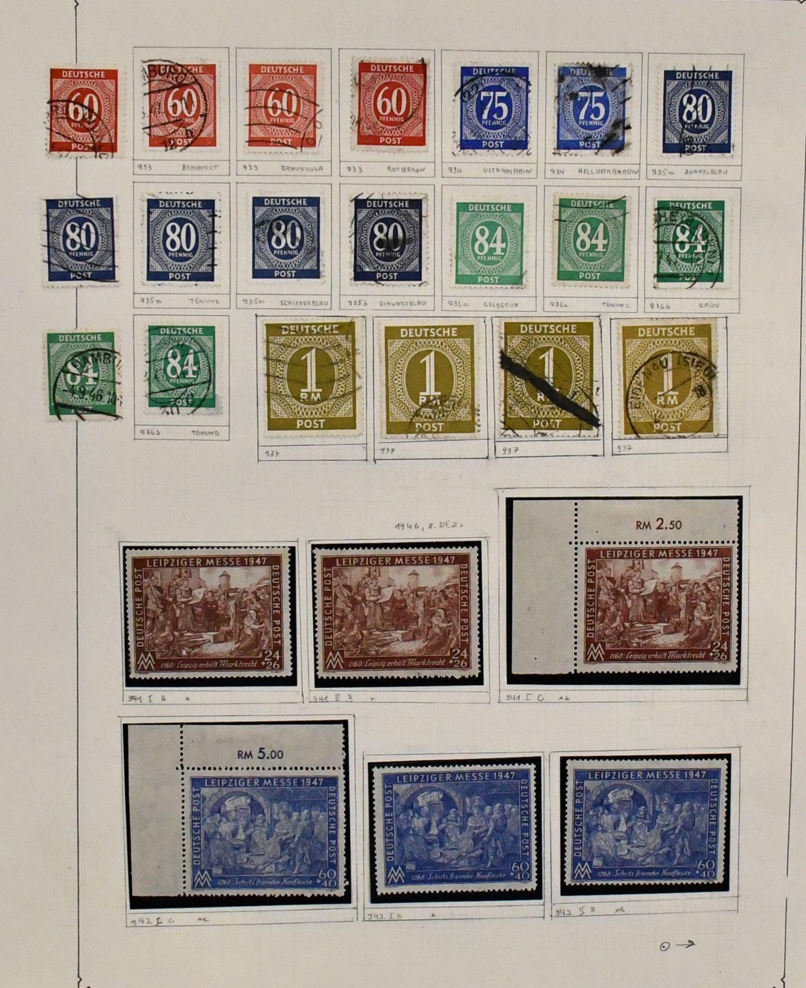 Gemeinschaftsausgabe, 1945/49, Partie von rund 2000 postfr. und gest. Werten Ziffern, Arbeiter und Leipziger Messe, umfang- und sortenreich nach Farben spezialisiert, jedoch alles ungeprüft und daher vorsichtig ausgerufen, in zwei E-Büchern