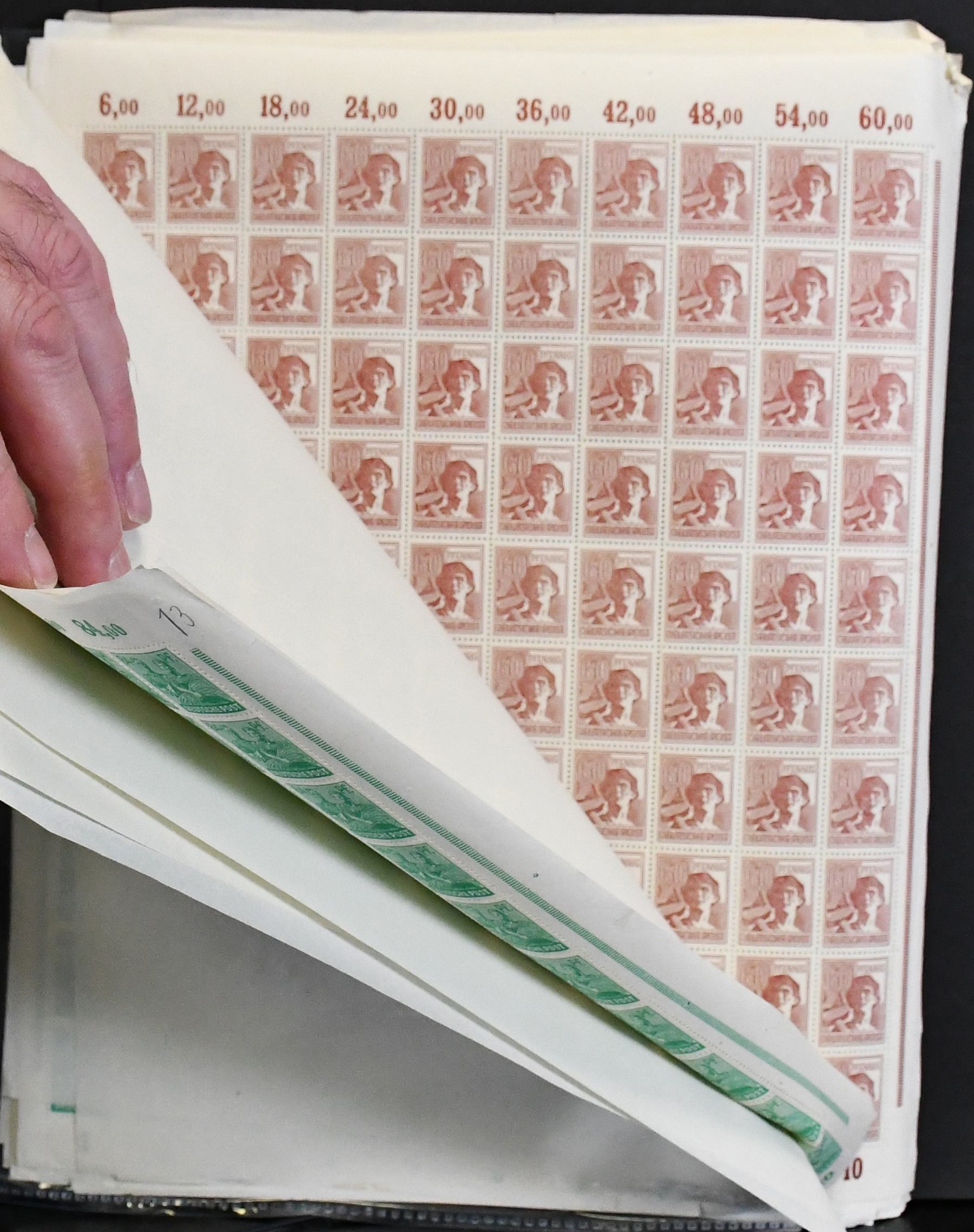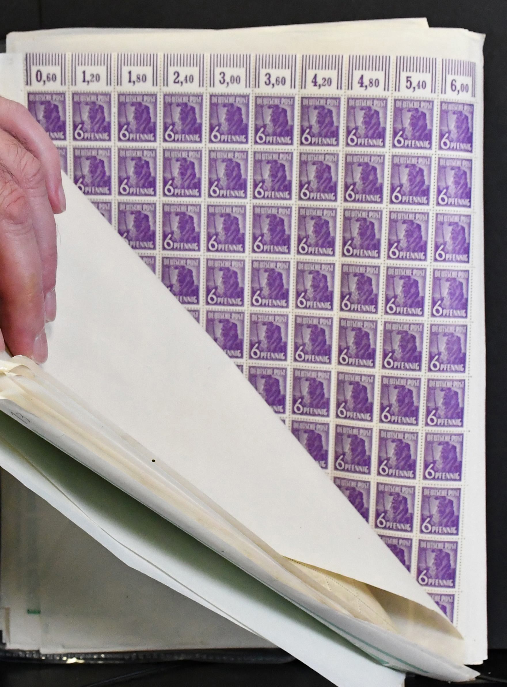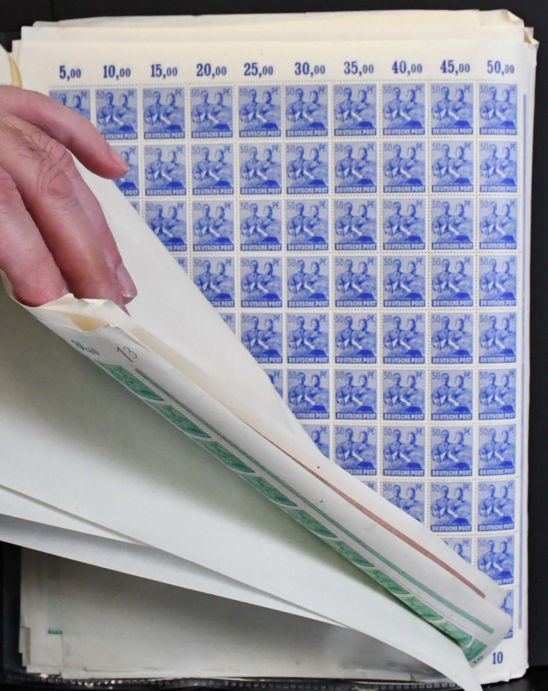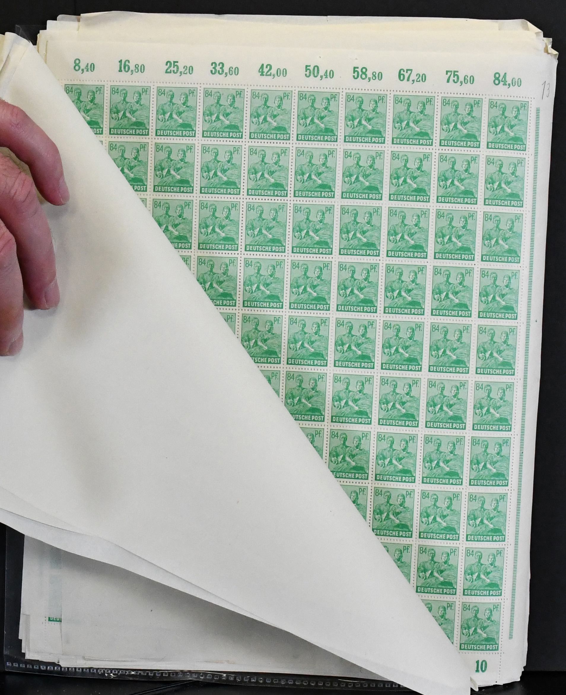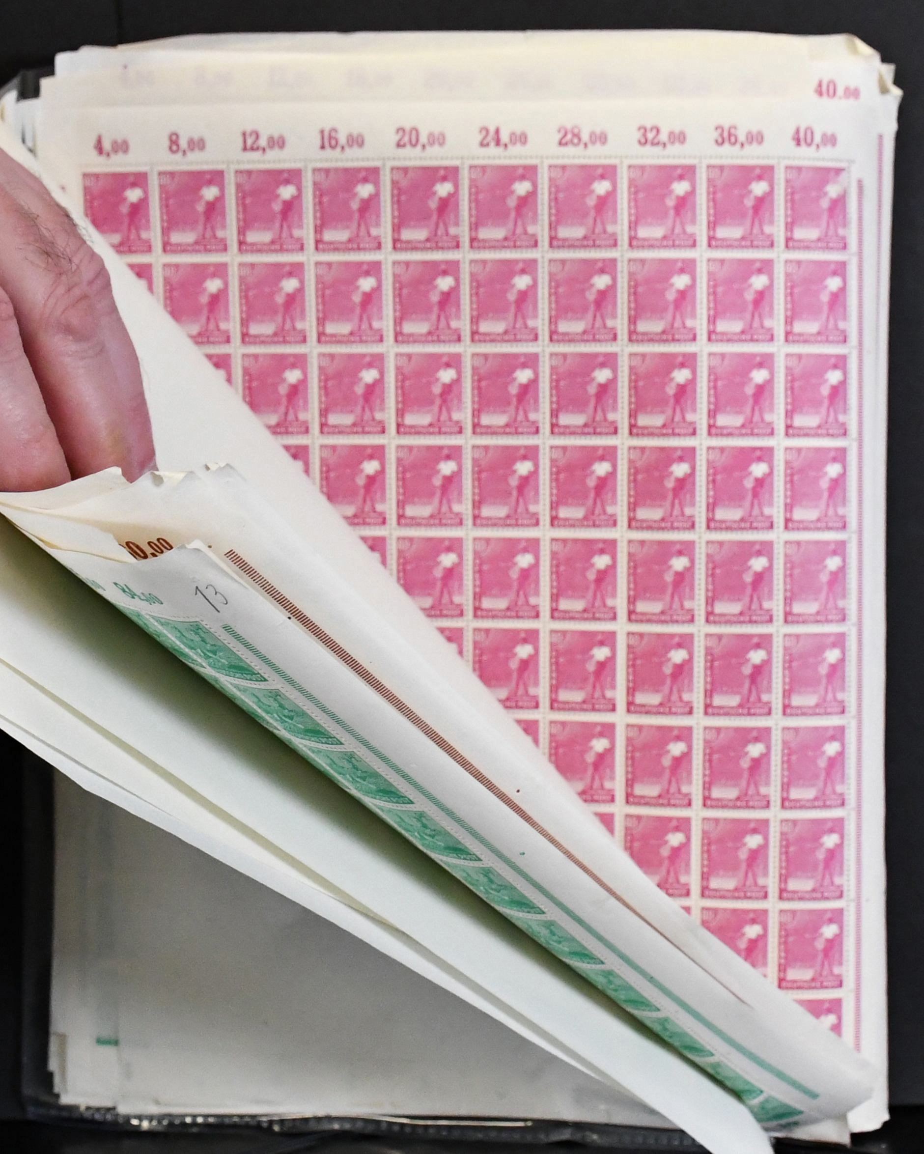Gemeinschaftsausgabe, Arbeiter-Serie, Partie von 20 postfr. Bogen inkl. zweimal Nr. 943PORdgz, zweimal Nr. 952 mit Druckerzeichen (Mi. nur DZ 120,-), neun Hausauftragsnummern mit zusammen 440,- Mi., usw.