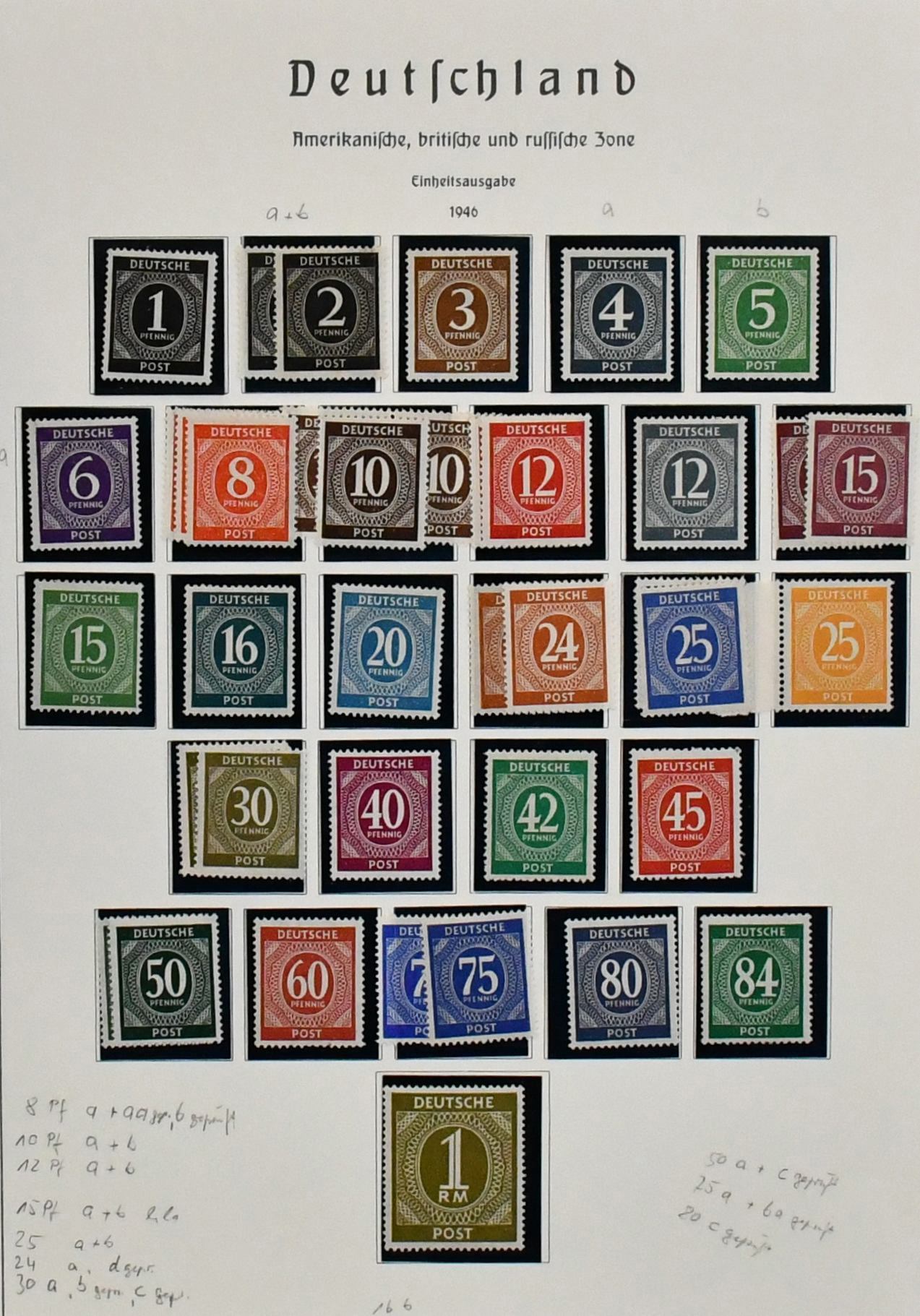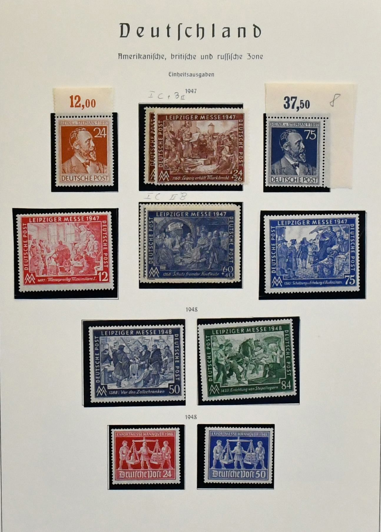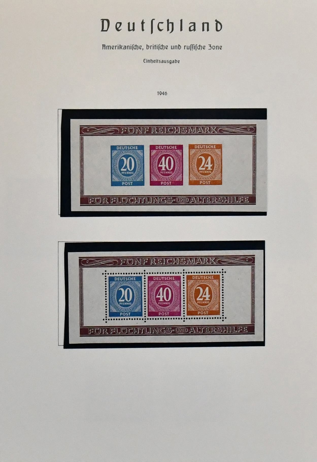 Gemeinschaftsausgabe, 1945/49, postfr. kpl. Slg. mit u.a. Bl. 12A/B (Mi. 120,-), Nr. 949 mit Druckerzeichen (Mi. 120,-) usw., auf Leuchtturm-Vordrucken