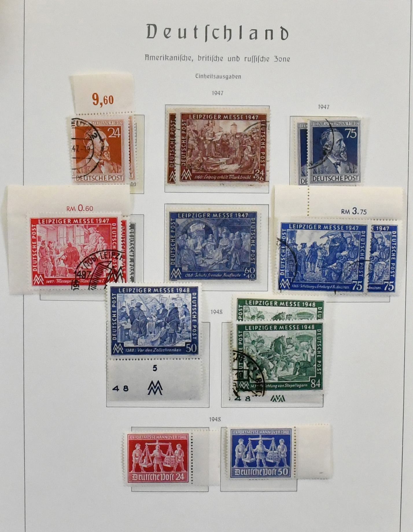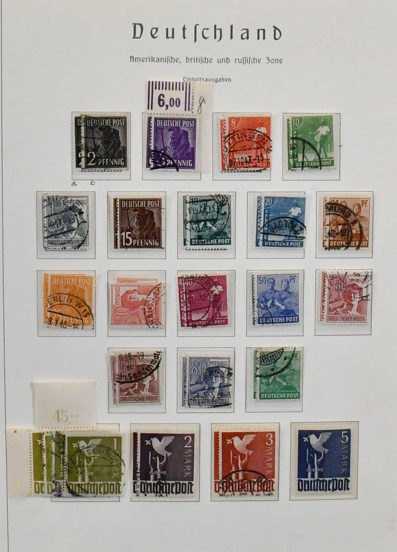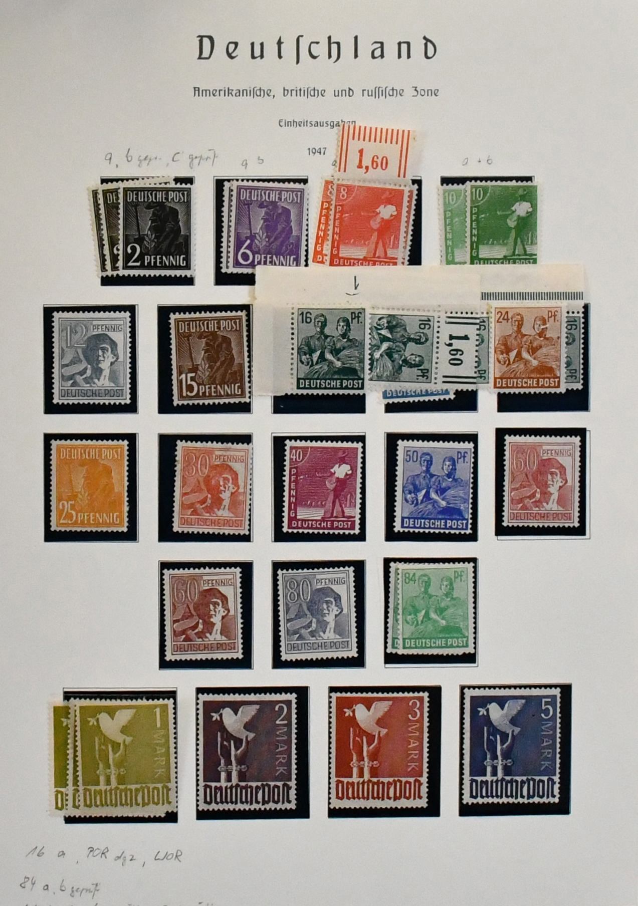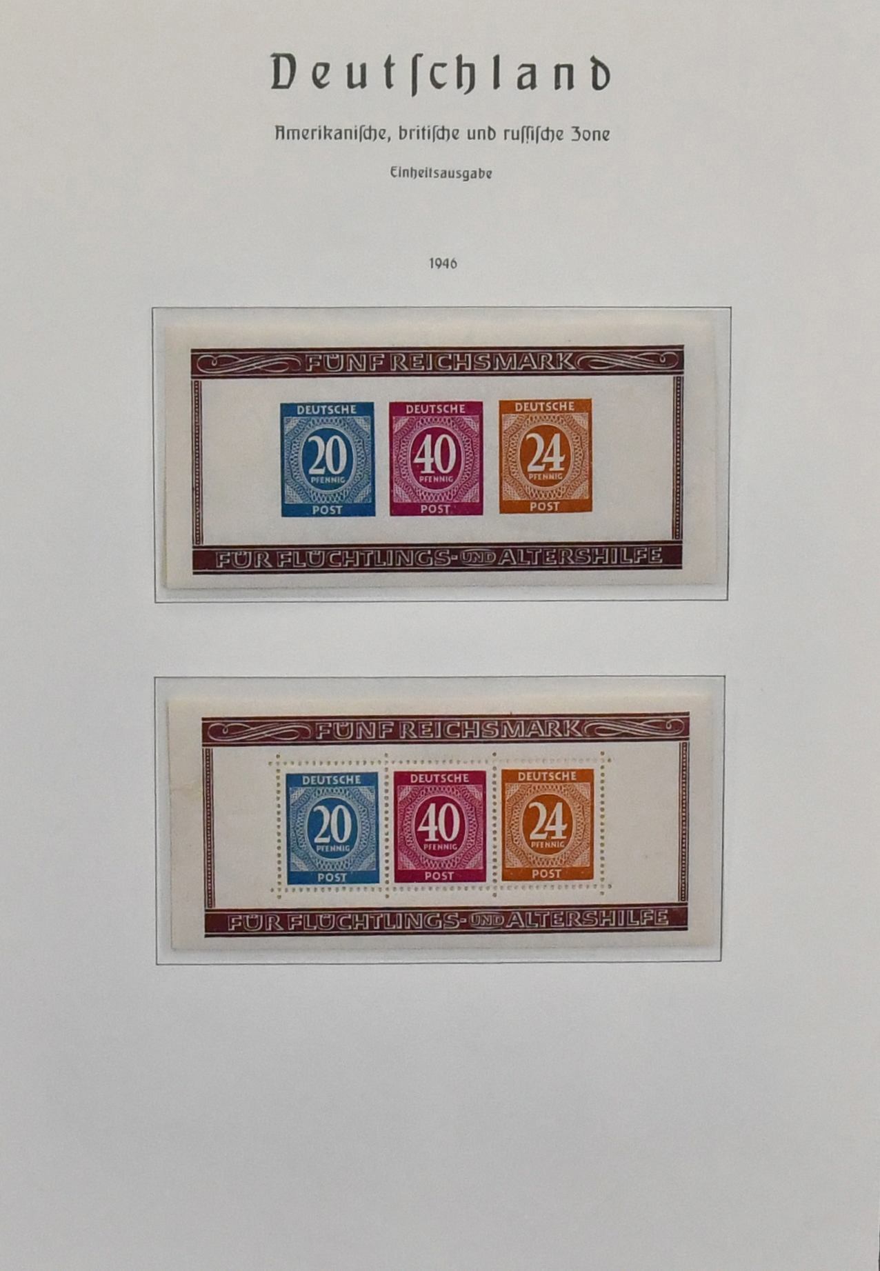 Gemeinschaftsausgabe, 1945/49, postfr. kpl. Slg. mit u.a. Bl. 12A/B (Mi. 120,-), Nr. 949 mit Druckerzeichen (Mi. 120,-) usw., auf Leuchtturm-Vordrucken