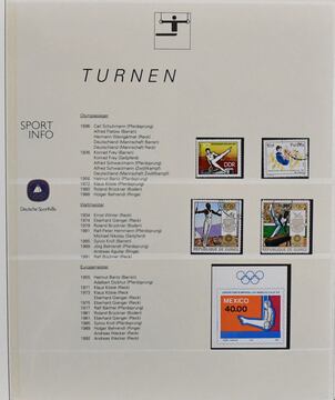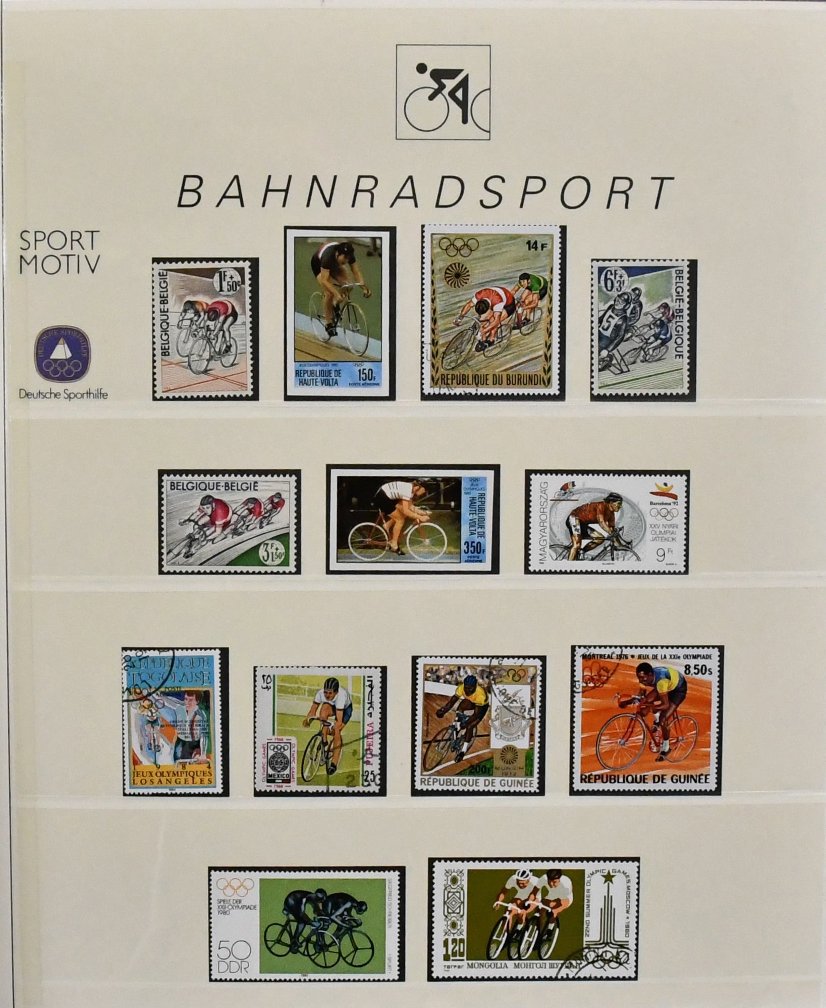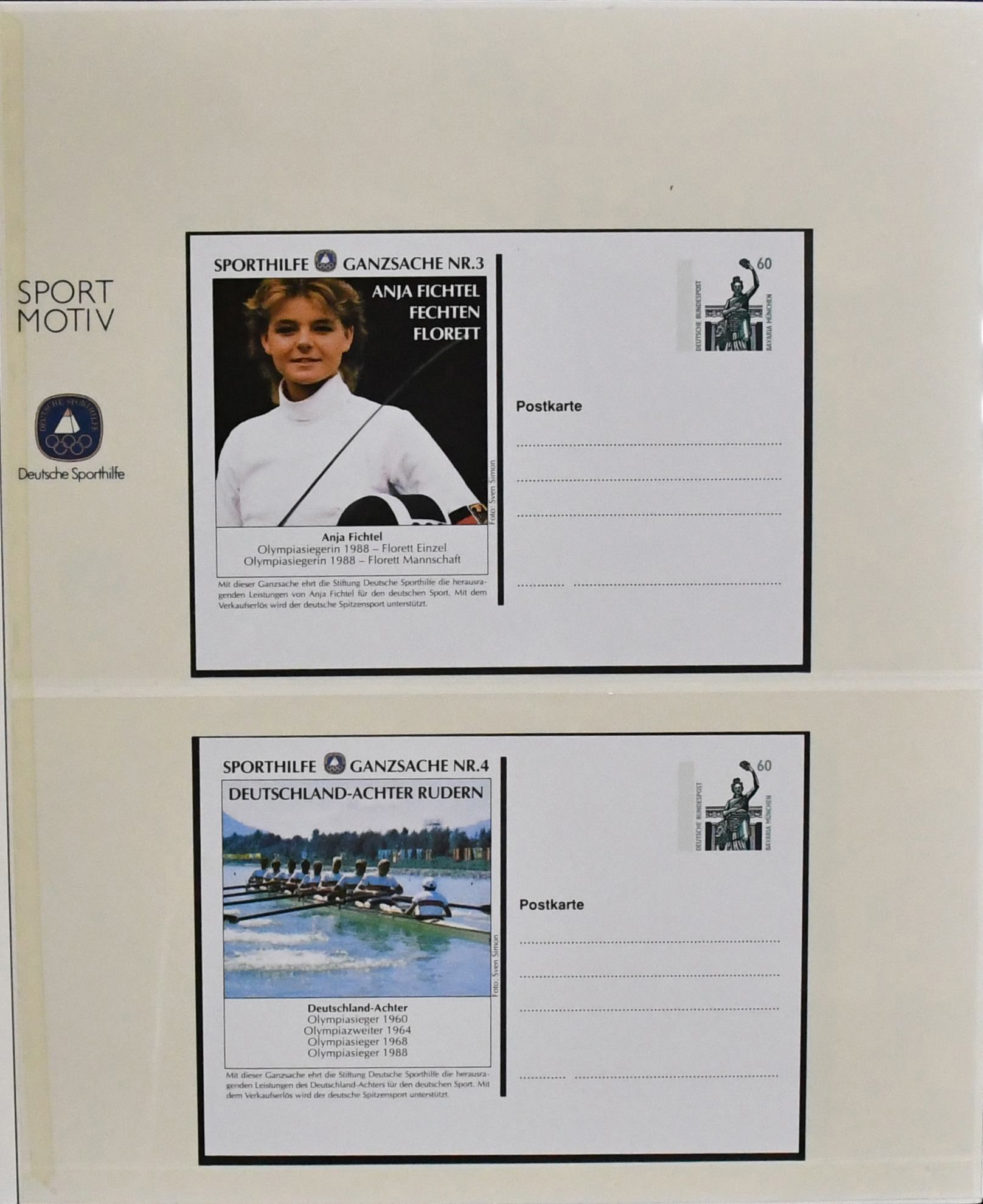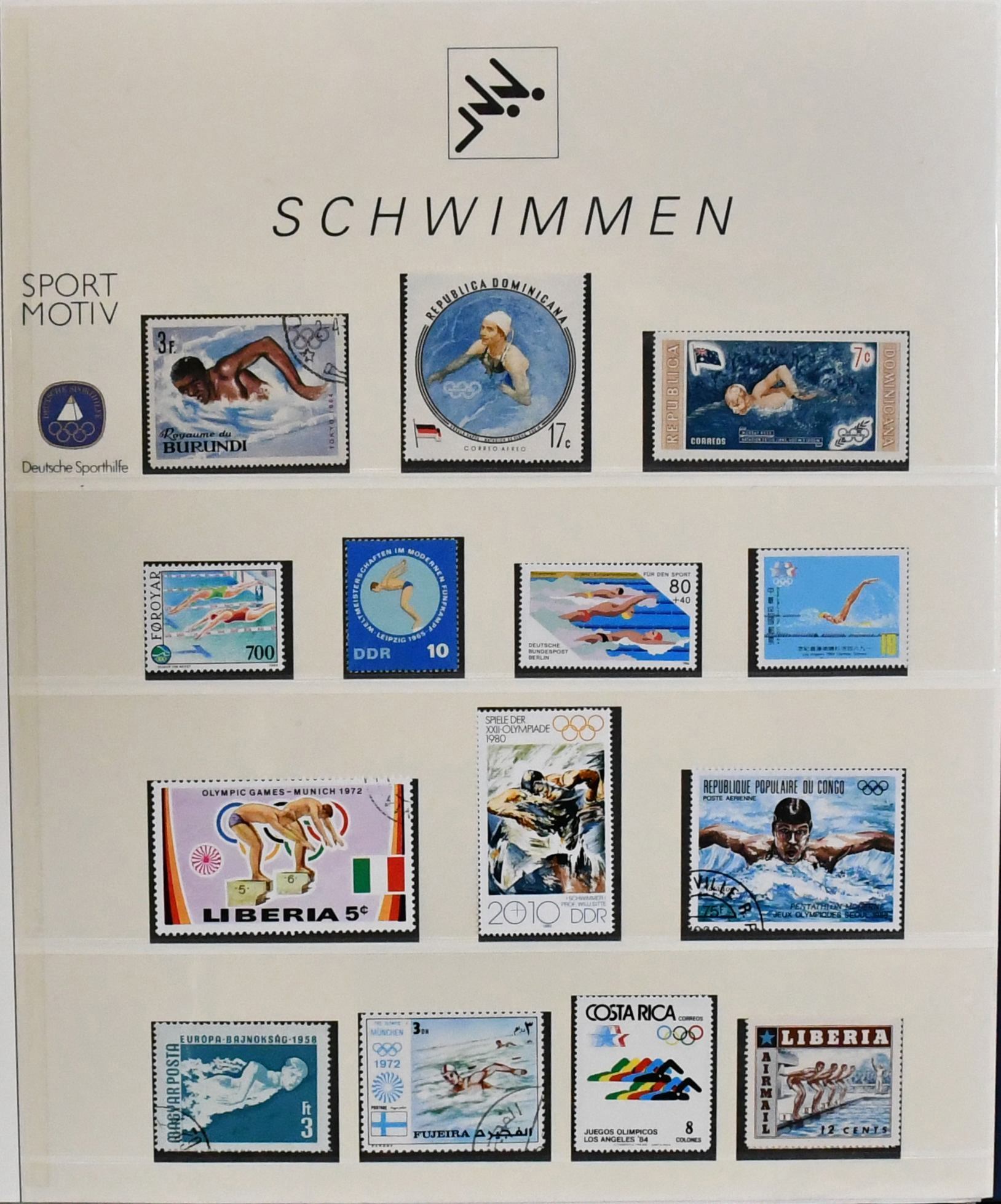 Olympia, Abo-Sammlung der Deutschen Sporthilfe auf 61 Vordrucken, dazu viele Textseiten, in zwei Lindner-Ringbindern mit Marken und Belegen aus aller Welt