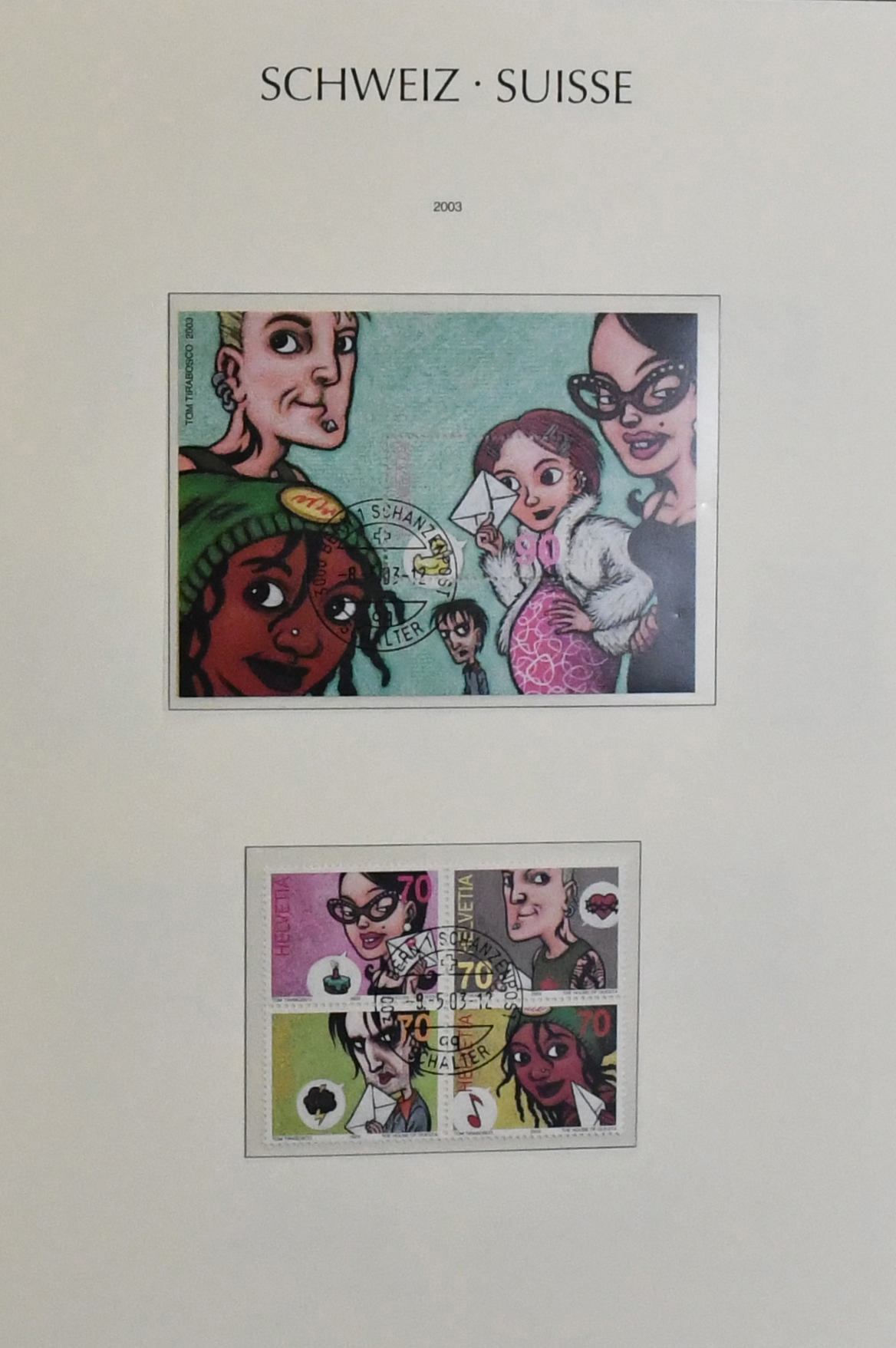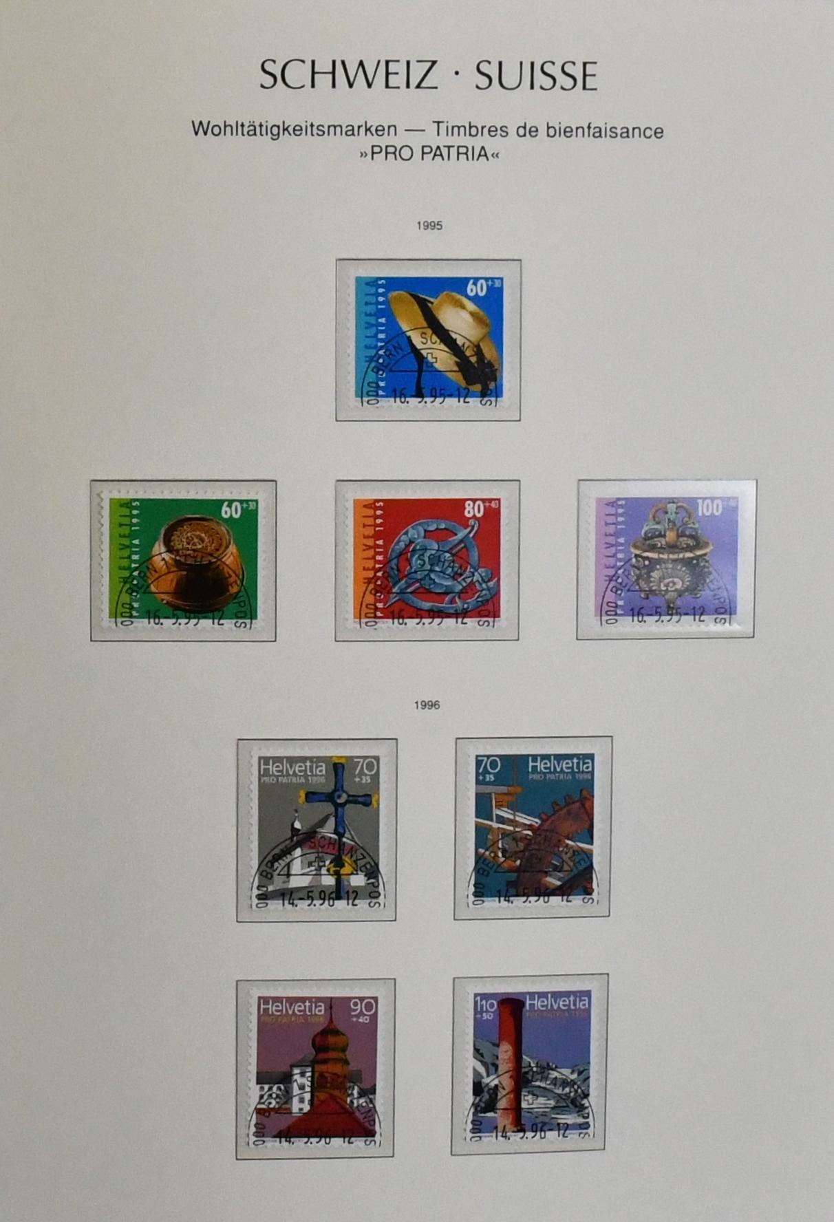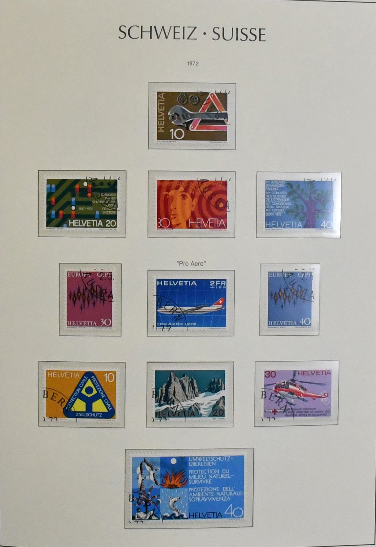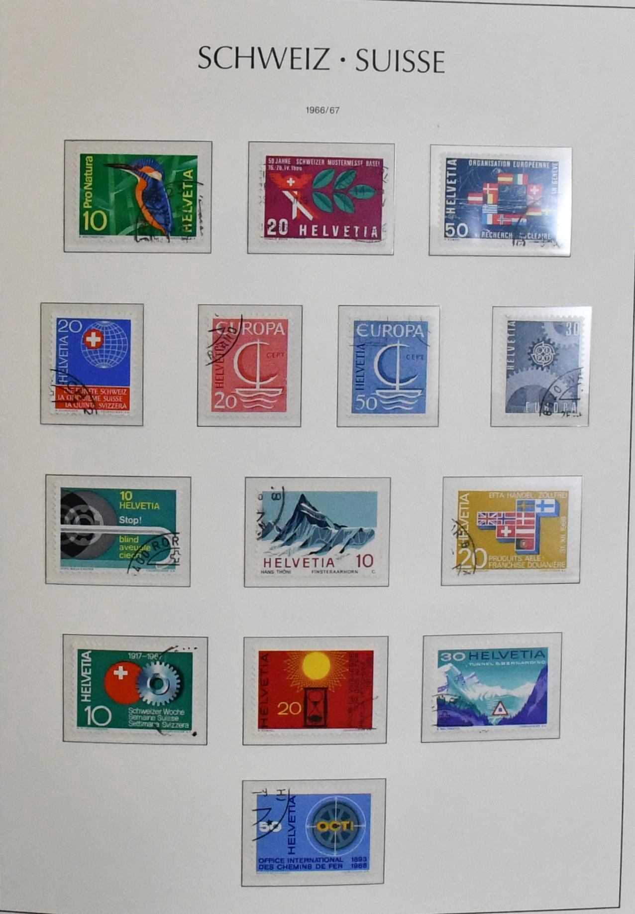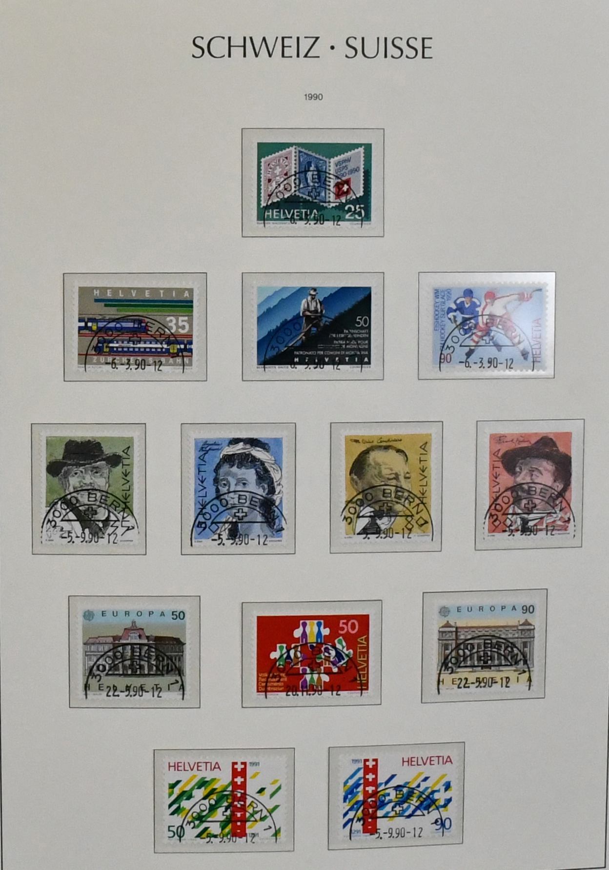 Schweiz, von 1966-2004 gest. kpl. (Abo-Ware) auf Leuchtturm-Vordrucken (Text ab 1945 kpl.) in zwei Leuchtturm-Bindern. Mi. 1100,- + Zubehör