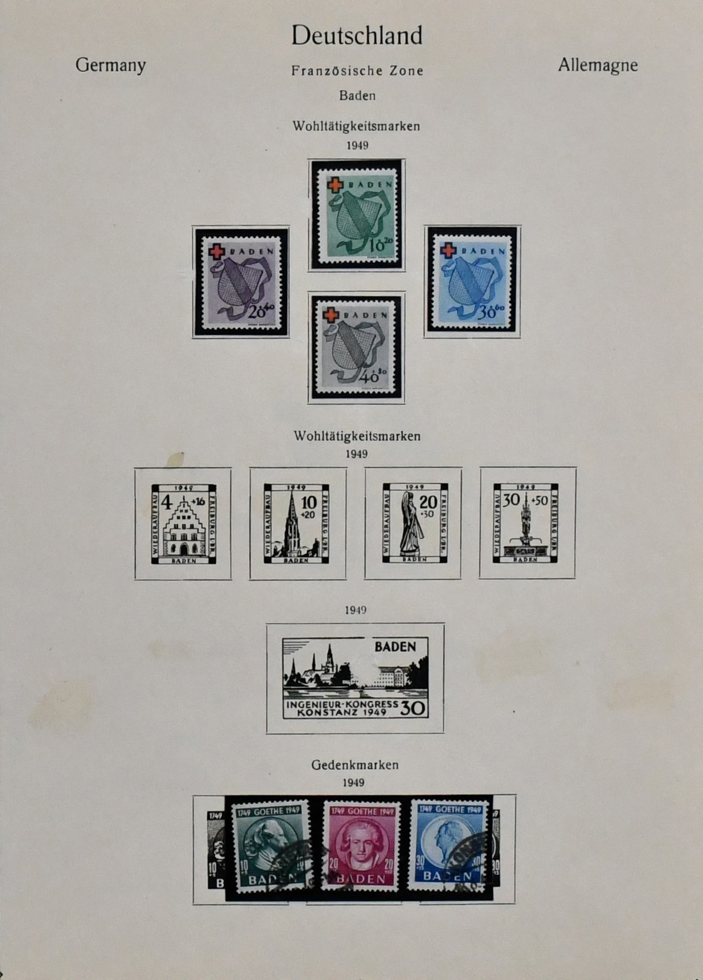 Französische Zone, 1945/49, gest. Slg. mit Allg. Ausgabe Nr. 1/13, Baden Nr. 1/37, 46, Rheinl.-Pfalz Nr. 1/41, sowie Württemberg Nr. 1/39 etc., auf Lindner-Vordrucken. Mi. 1700,-