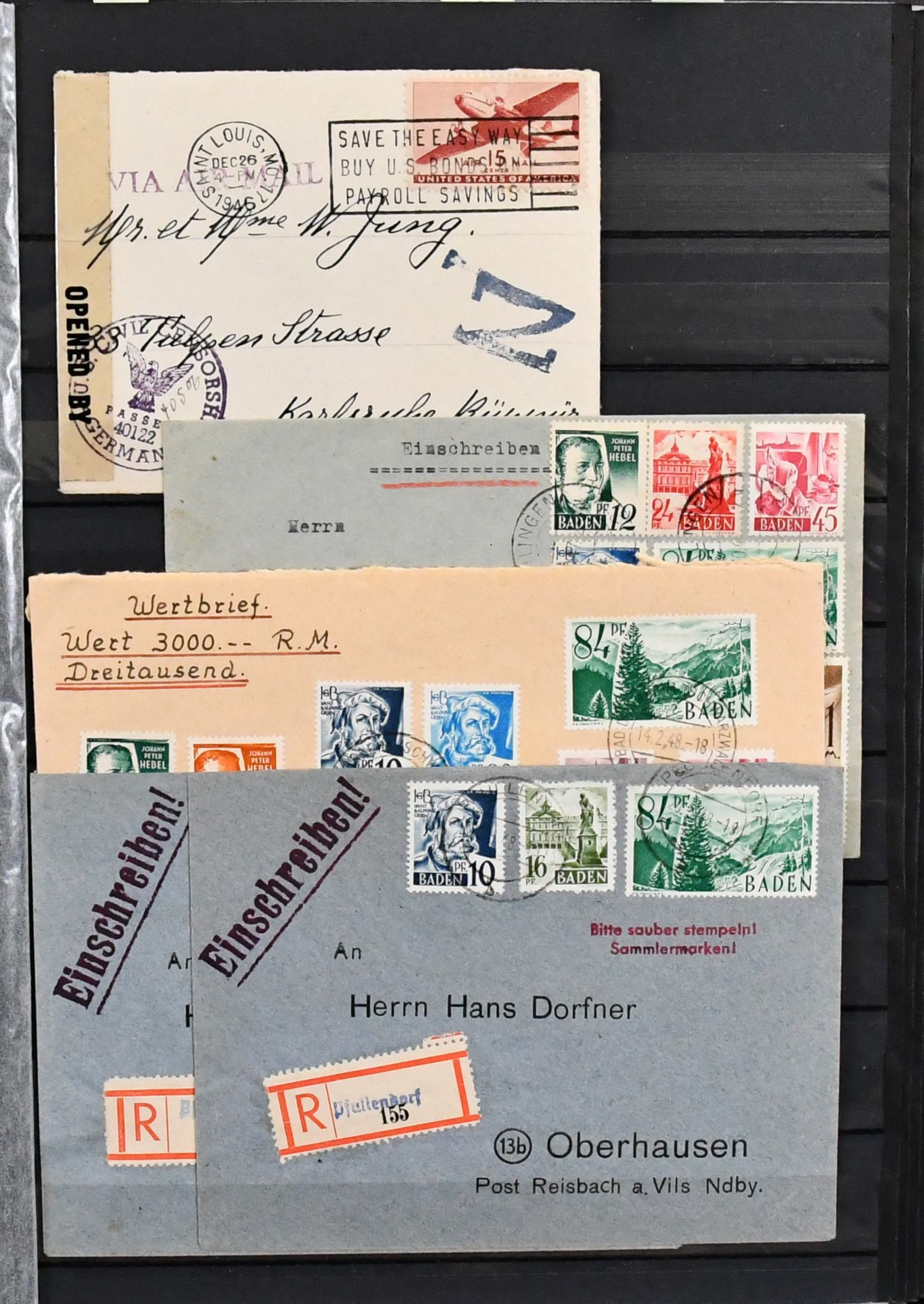 Französische Zone, Zusammenstellung ab Allgem. Ausgabe, dabei Baden mit Nr. 42-45, 46I, 47-49, Nr. 52II (gest.), Bl. 1A, Rheinland-Pfalz mit Nr. 36 mit zartem Eckstempel, Nr. 42-45, 46-52, Bl. 1, etwas Württemberg
