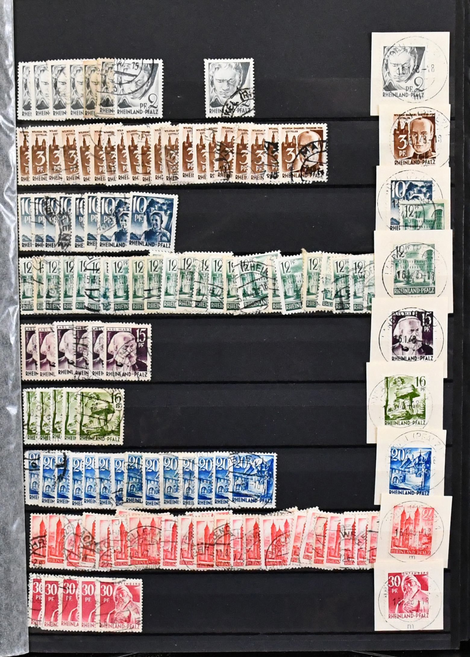Französische Zone, Partie mit u.a. allgem. Ausgabe kpl. gest., Baden Nr. 28-41 kpl. gest., Rh.-Pfalz Nr. 29-31, 32-43 u. 45 je kpl., sowie Herzstück aus Bl. 1