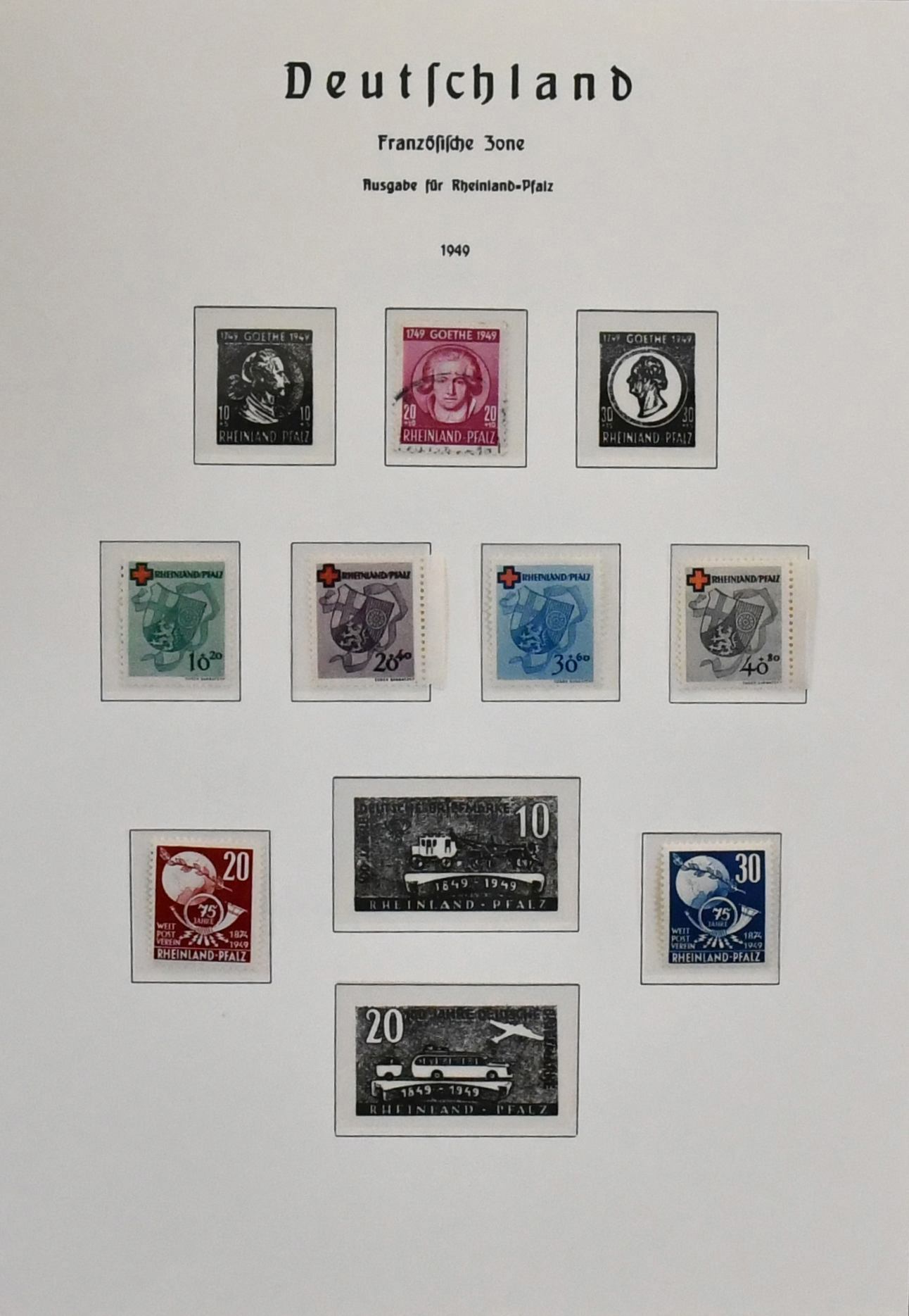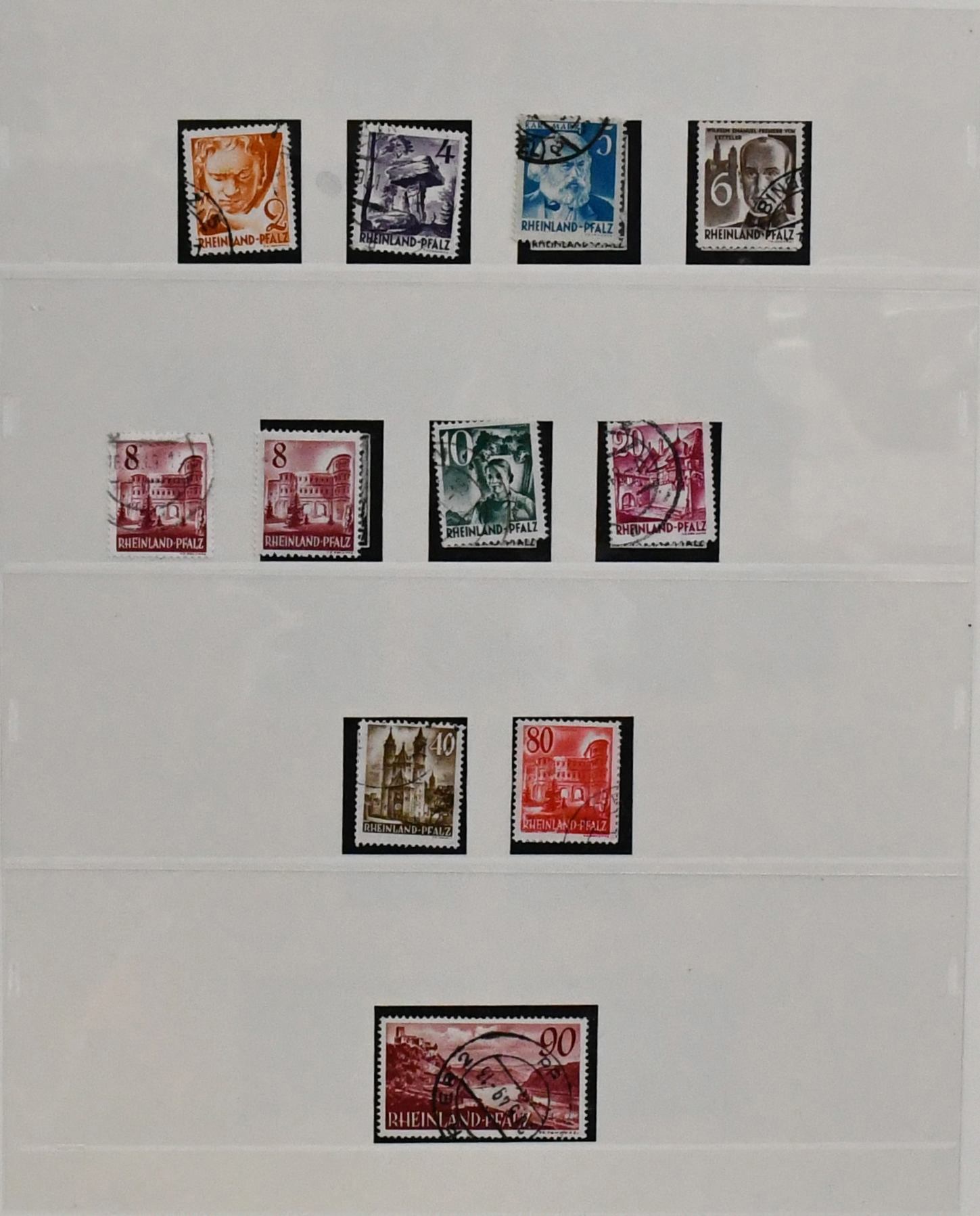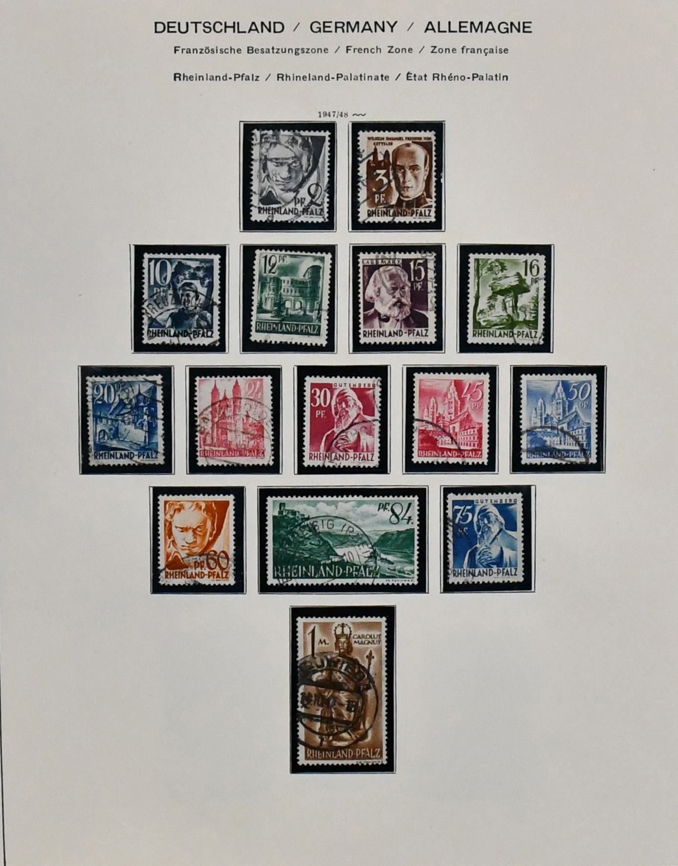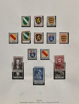 Französische Zone, 1945/49, gest. Slg. mit Allg. Ausgabe Nr. 1/13 gest. (Mi. 250,-), Rheinl.-Pfalz Nr. 32/41 (550,-), 46/48, Württemberg Nr. 36 usw., auf Lindner-Vordrucken. Mi. 1200,-
