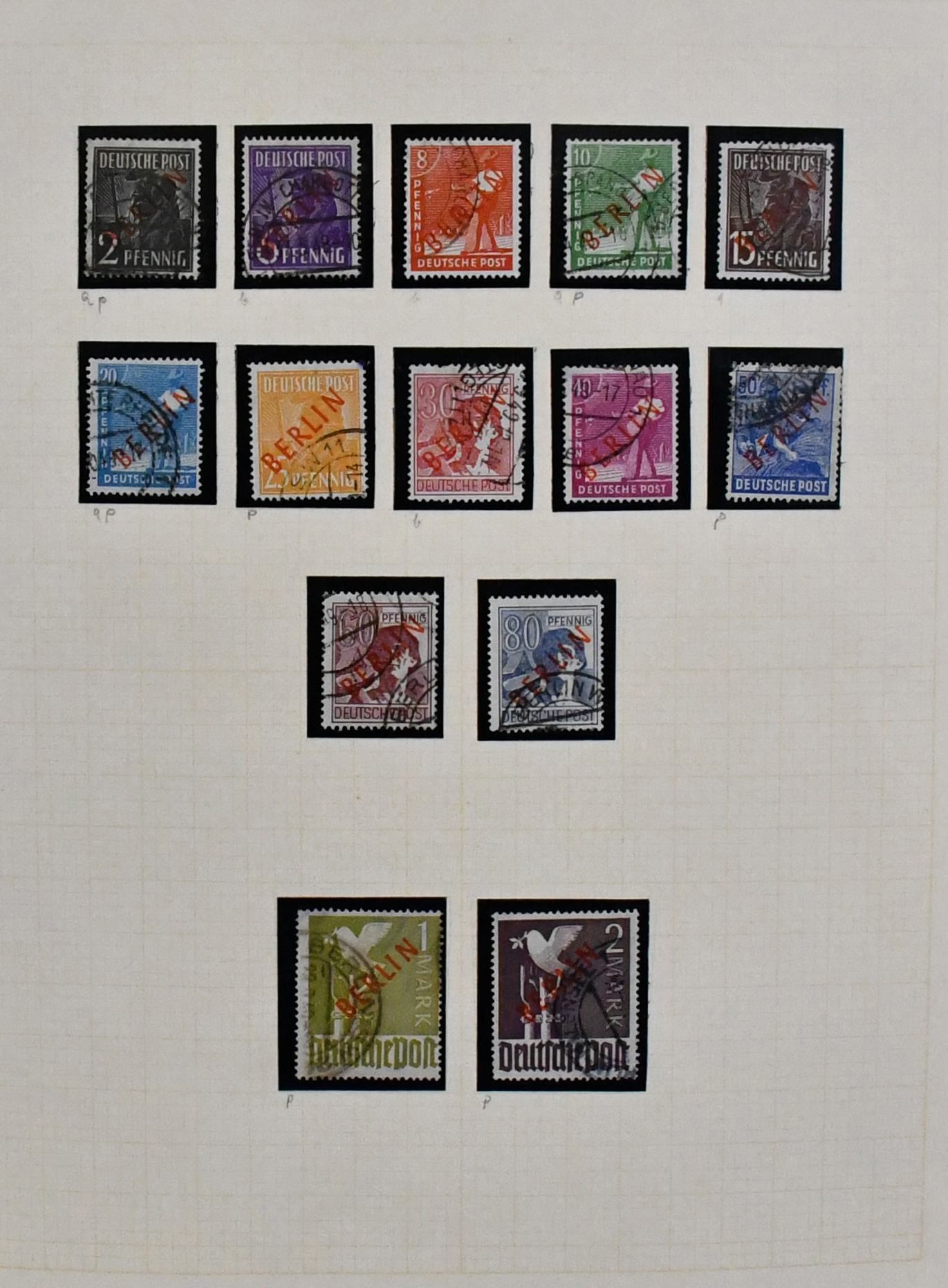 Berlin, 1948-59, gest. Sammlungsteil mit Nr. 1-19 (Mi. 1700,-), 21-34 (900,-), 61-71 (860,-), ex 72-111 (Mi. 775,-), 120b, seltene Nr. 182-86 in gest. VB (mit Nr. 184v, Mi. für Paare 1520,-) usw.