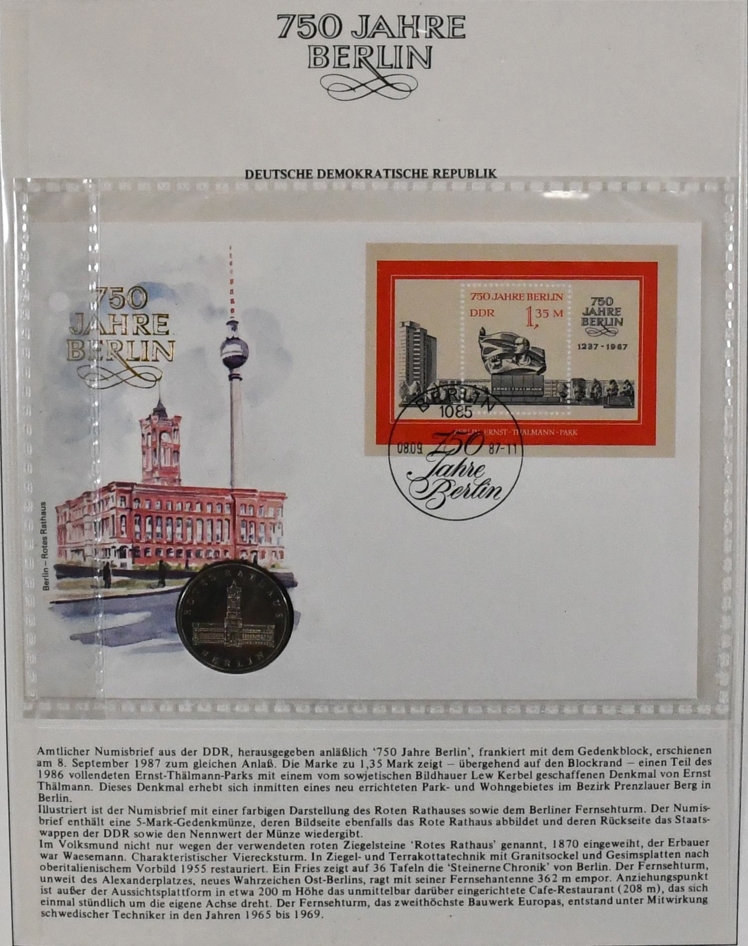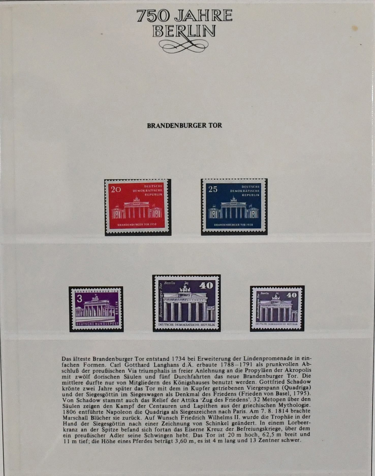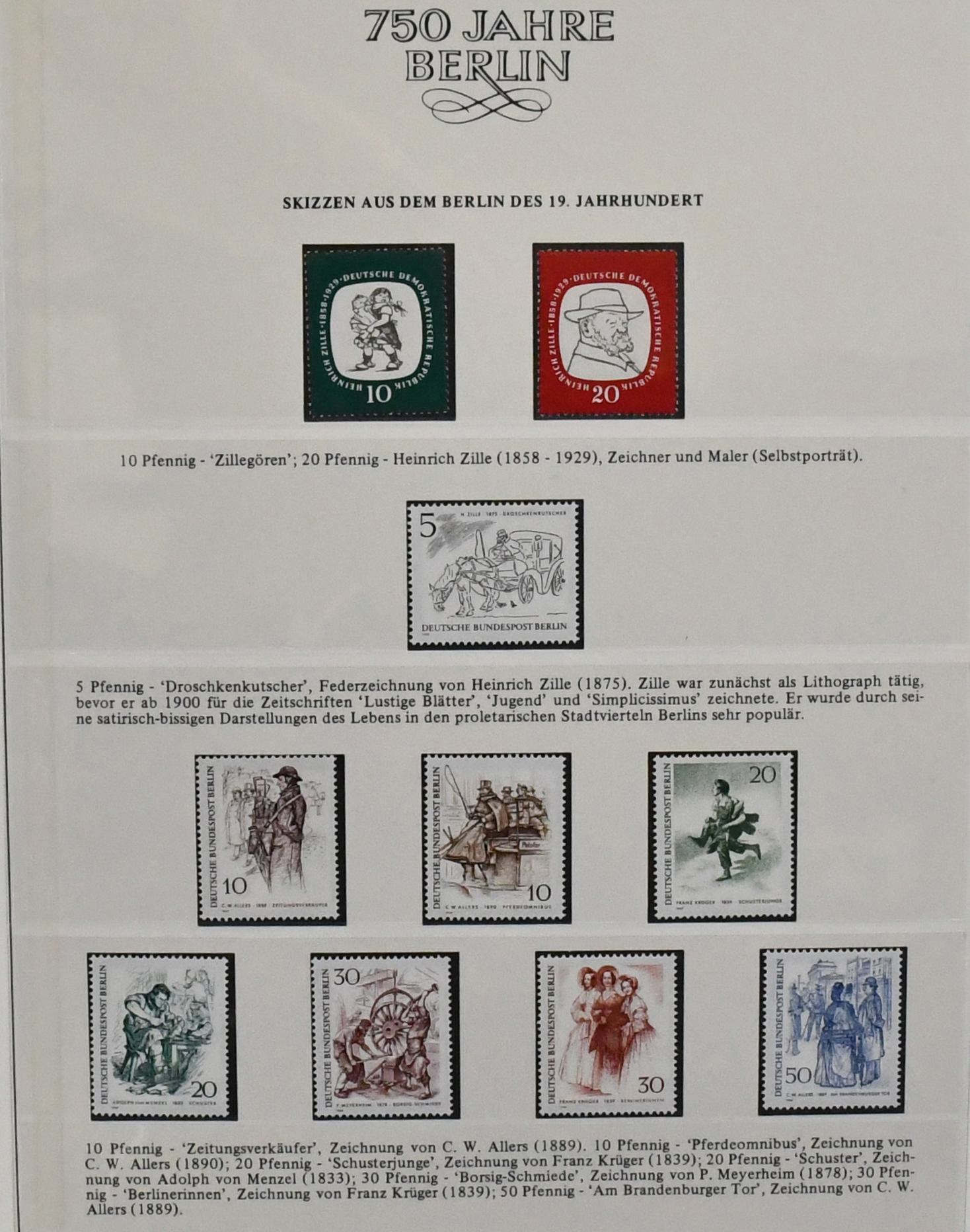 "750 Jahre Berlin", Abo-Sammlung, postfrisch und auf Briefen/Belegen, in zwei neuwertigen Borek-Vordruckalben. Dabei u.a. DDR Nr. 261/70 (Mi. 150,-) und Berlin Nr. 91/111 (295,-) je postfrisch
