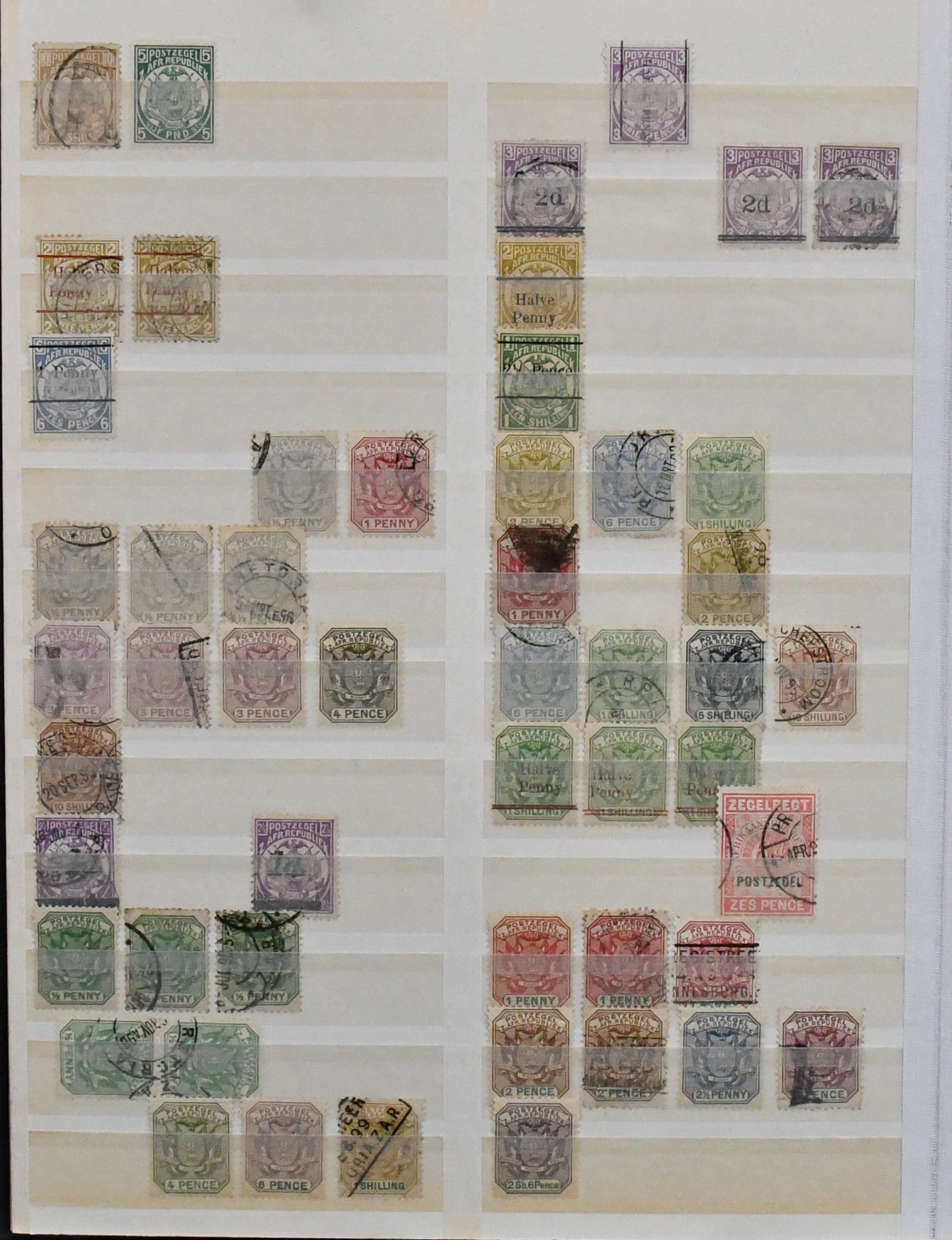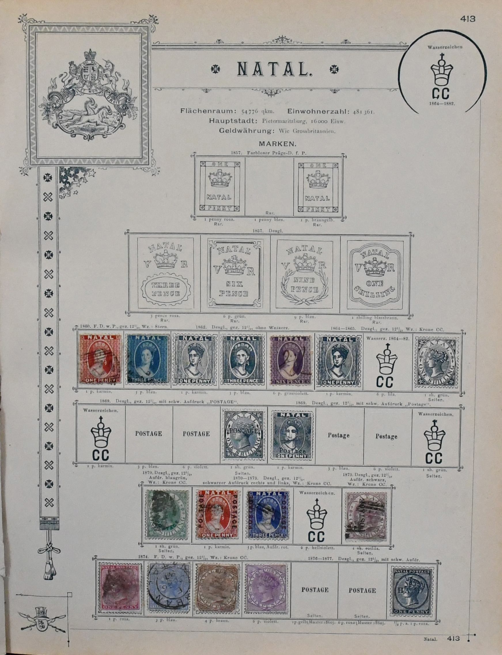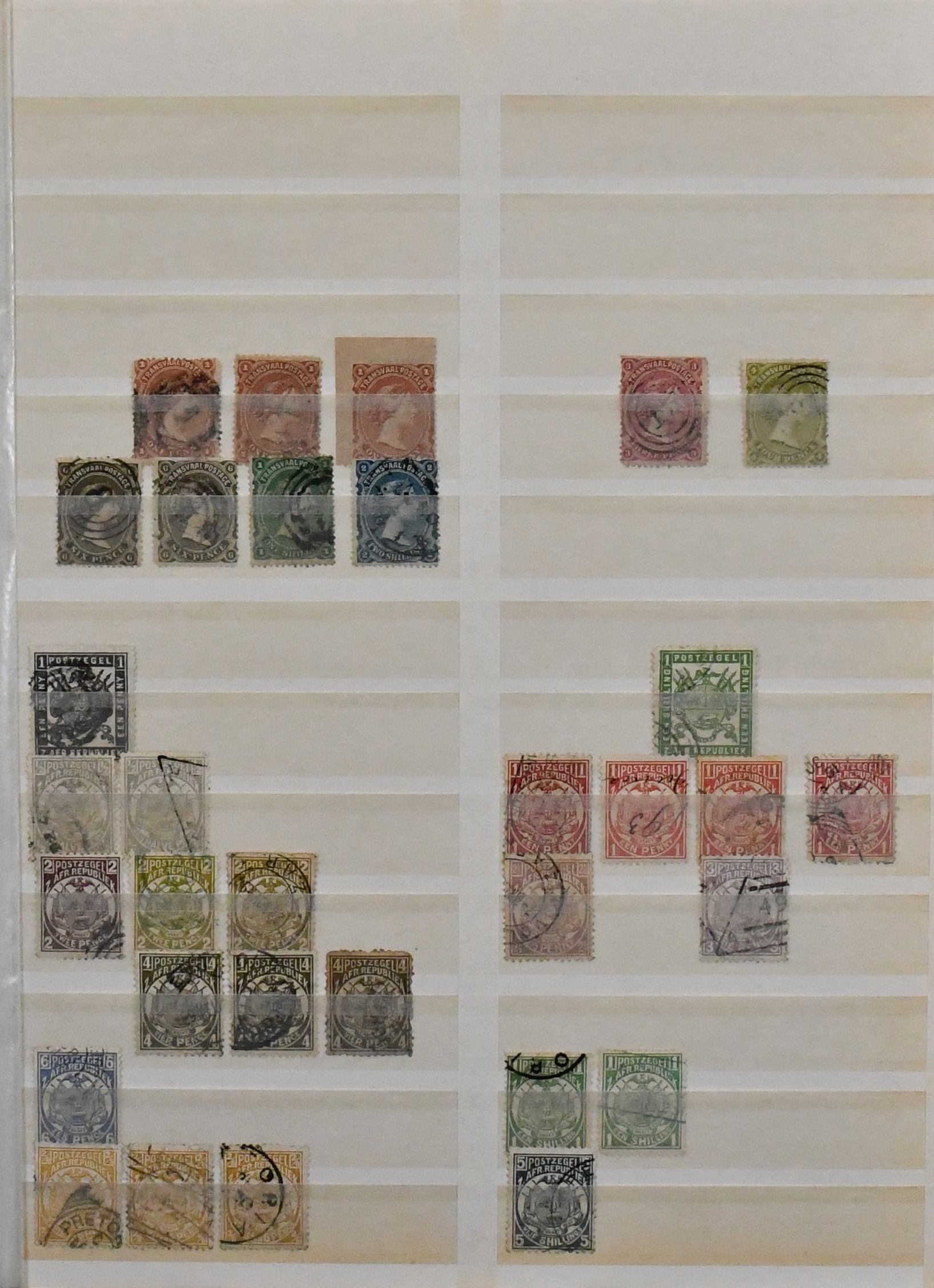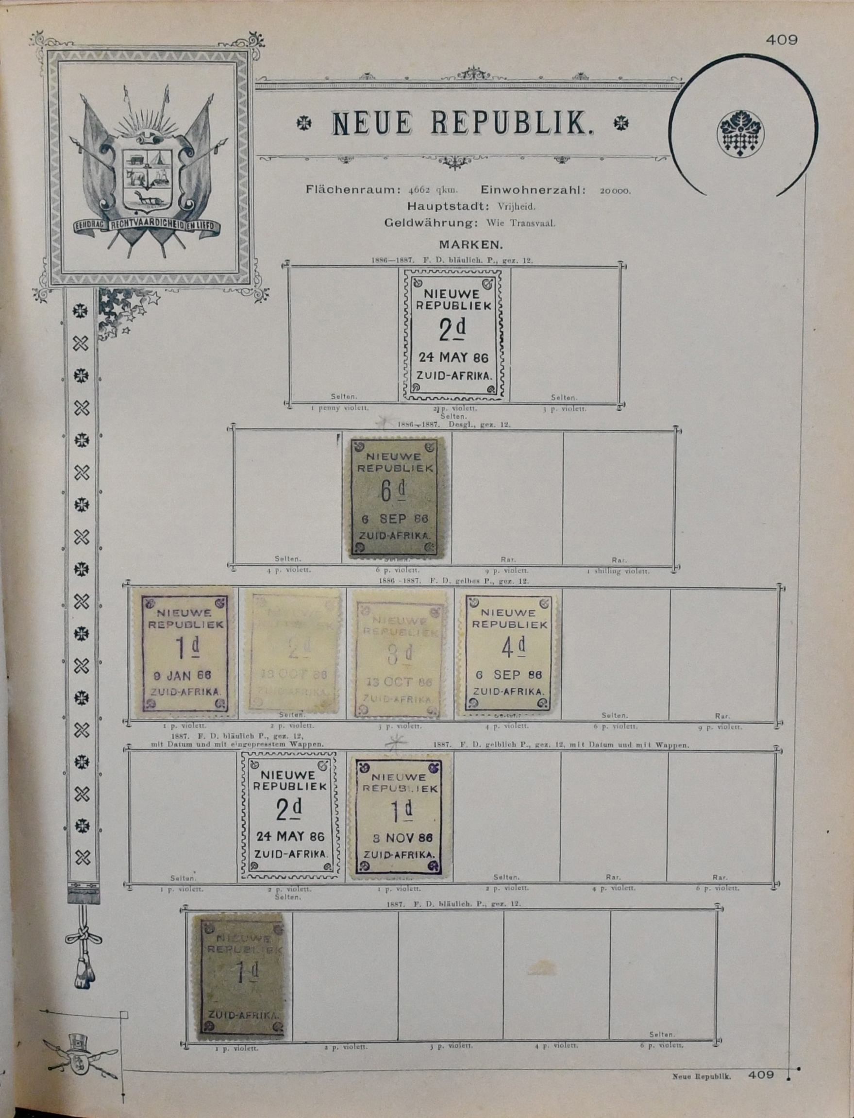 Transvaal, 1870-1905, interessante, gest. und ungebr. Slg. auf alten Albumseiten, dabei u.a. Nr. 3 gest., 6 gest., Nr. 74 ungebr. Bogenecke, 79-80 gest. usw., ferner Wappen-Marken reichhaltig inkl. Nr. 95 ungebr. (Aufdruck vermutlich falsch, daher unberechnet), bessere Ausgaben Edward, z.B. Nr. 111 ungebr., sowie ein Heftchen "Collection de Timbres du Transvaal" mit eingeklebten Nachdrucken