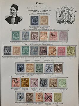 Tunesien, Sammlung in beiden Erhaltungen auf alten Albumblättern, dabei u.a. Nr. 1-3 ungebr., 4 gest., 6 gest., 7 ungebr., 7N gest., 17 gest. usw., ferner auch Portomarken gut vertreten, u.a. Nr. 17 mit Federzug
