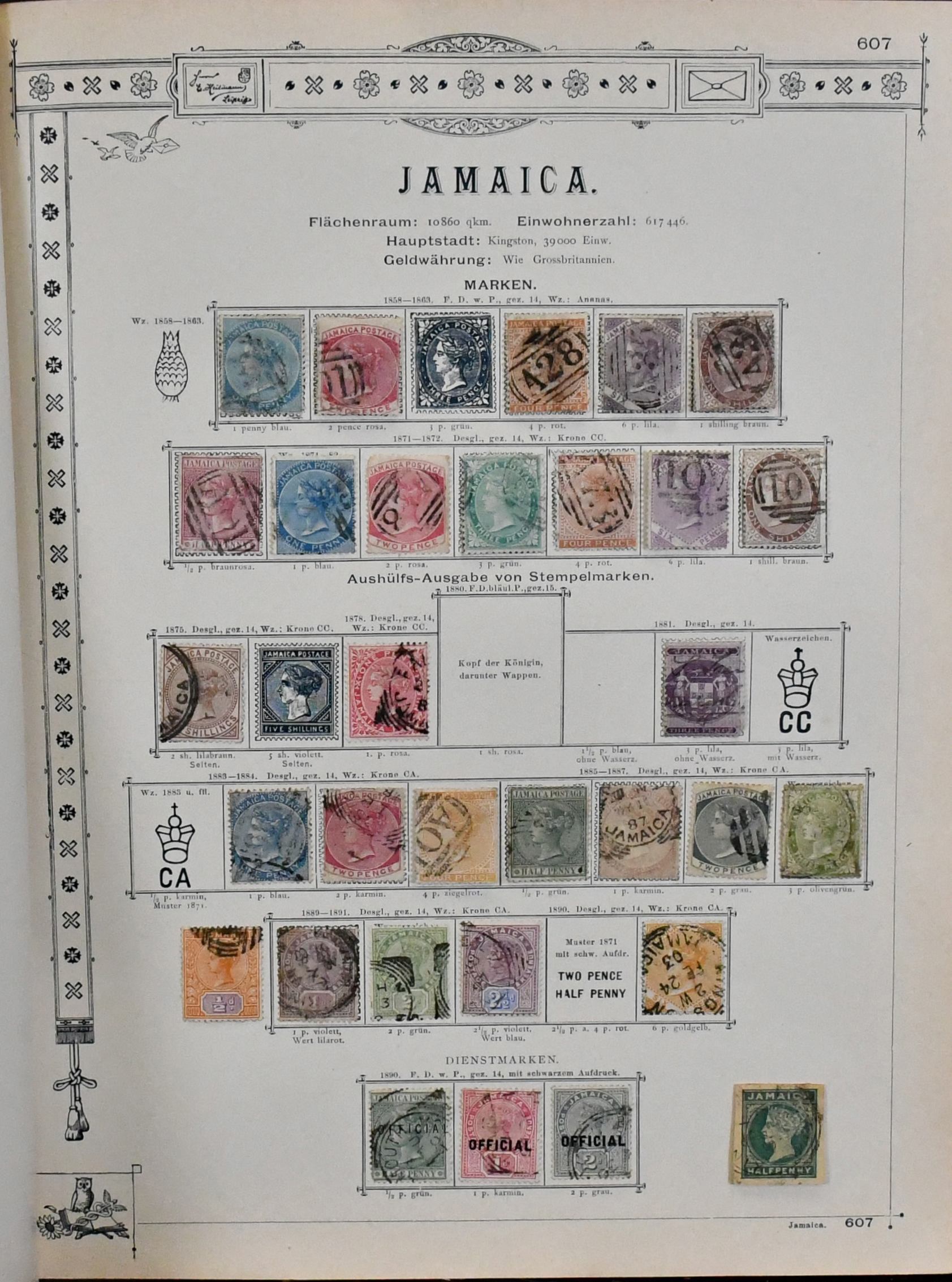 Jamaika, 1860-1891, gest. Slg. auf altem Goldschnitt-Vordruckbl., dabei Nr. 1-2, 4-6, 10, 13 usw. Marken teils haftend, aber sicher ablösbar