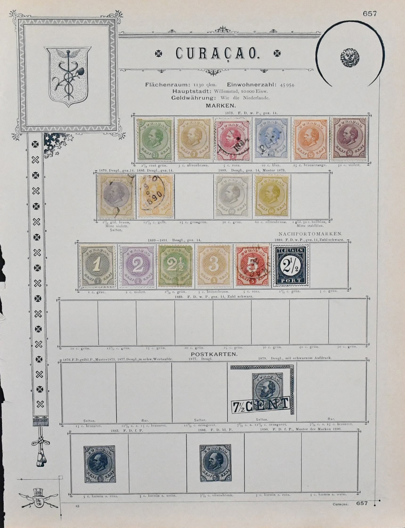 Curacao, 1876-1889, überwiegend ungest. Slg. auf altem Goldschnitt-Vordr., dabei Nr. 7-12, 13, 14, 16-17 und 19-23, Marken teils haftend, aber sicher ablösbar