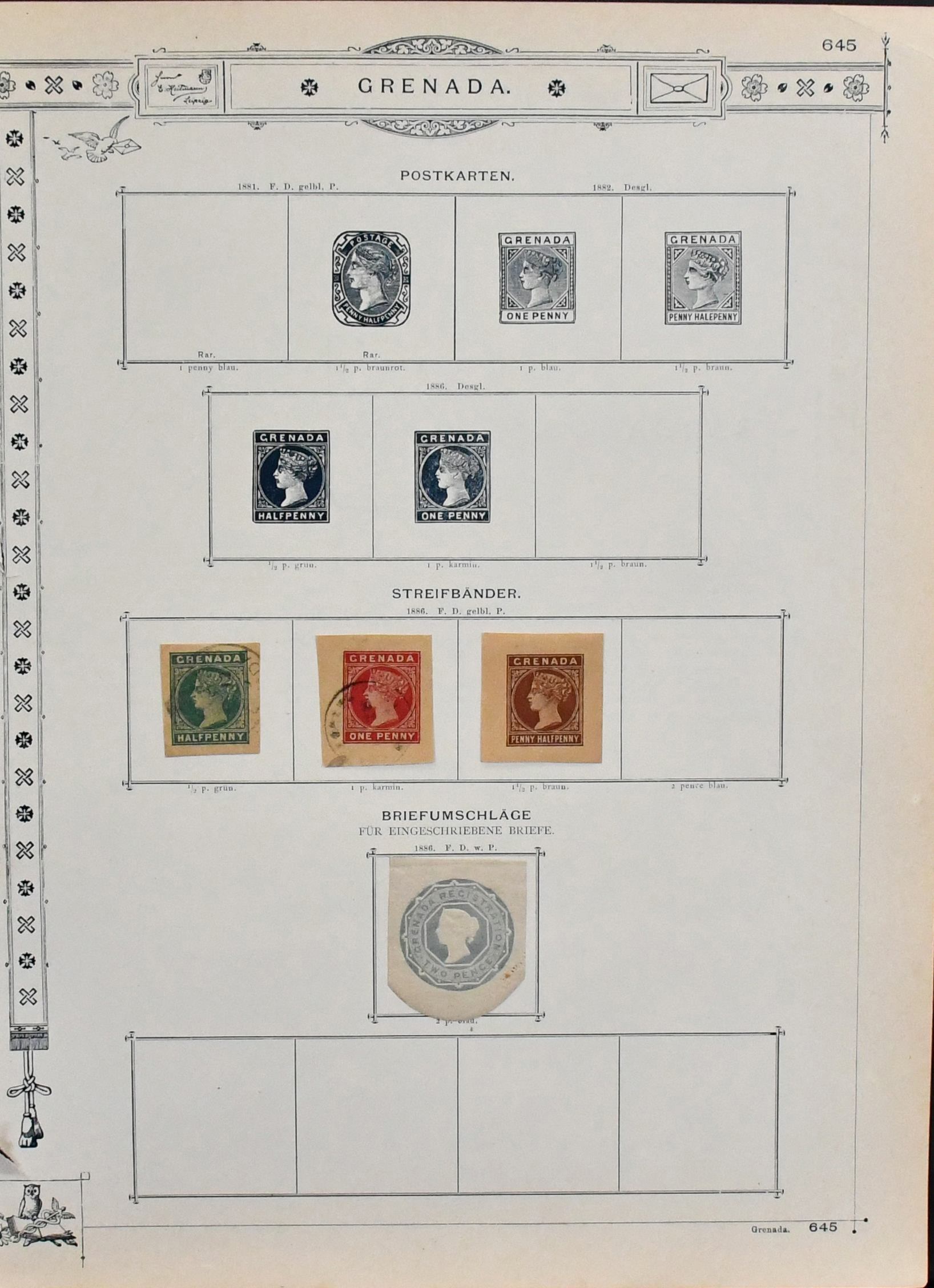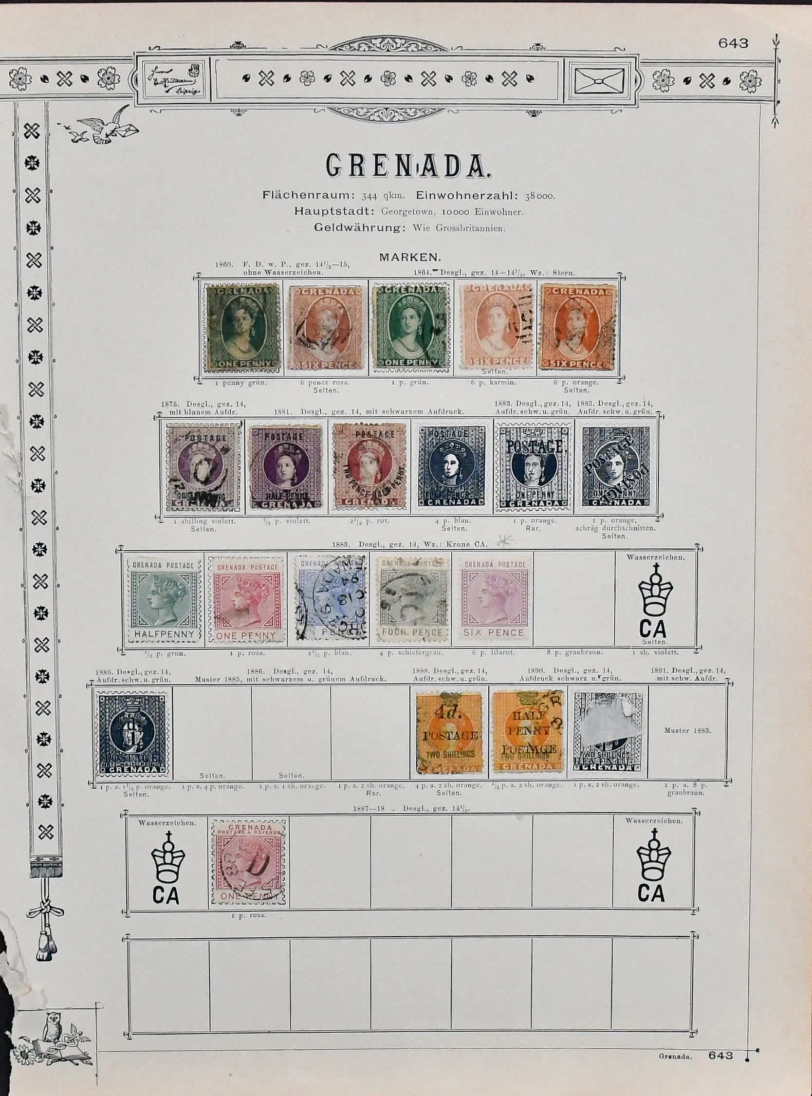 Grenada, 1861-1890, meist gest. Slg. auf altem Goldschnitt-Vordr., dabei u.a. Nr. 3-4, 6, 9, 26I, 27 usw., Marken teils haftend, aber sicher ablösbar