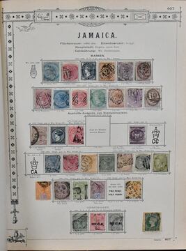 Jamaika, 1860-1962, Slg. in beiden Erhaltungen auf alten Albumseiten, dabei etliche Victoria-Köpfe wie z.B. Nr. 6 ungest., Georg V. usw.