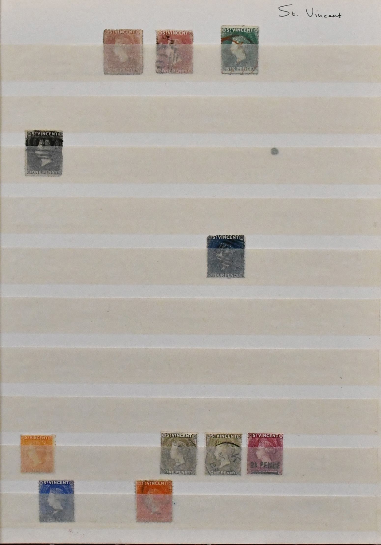 St. Vincent, 1861-1955, Sammlung in beiden Erhaltungen auf Albumseiten, dabei etliche Viktoria-Köpfe wie z.B. Nr. 1, 3, 8, je gest., Nr. 24 ungebr., 28, 30, je gest., usw.