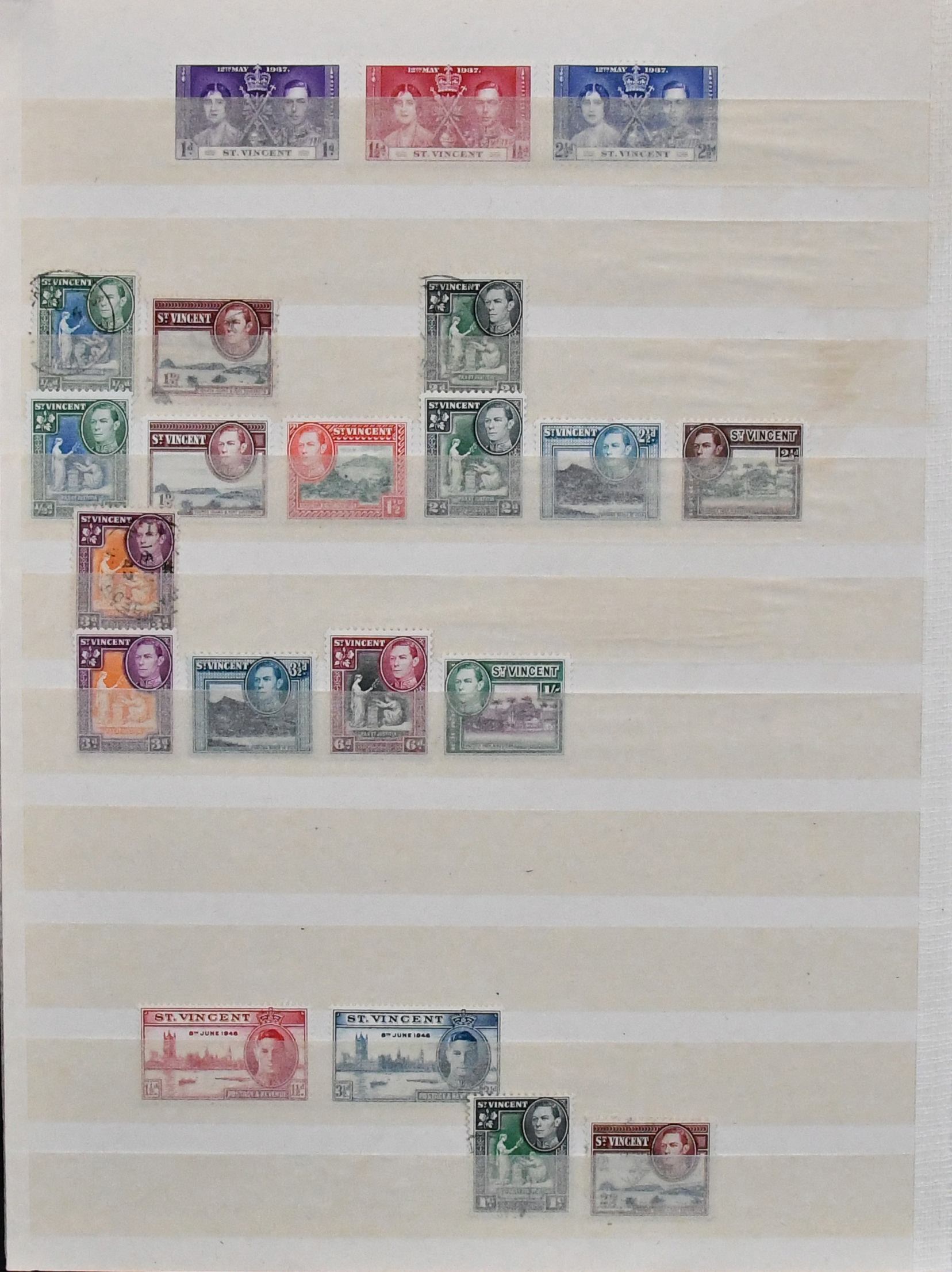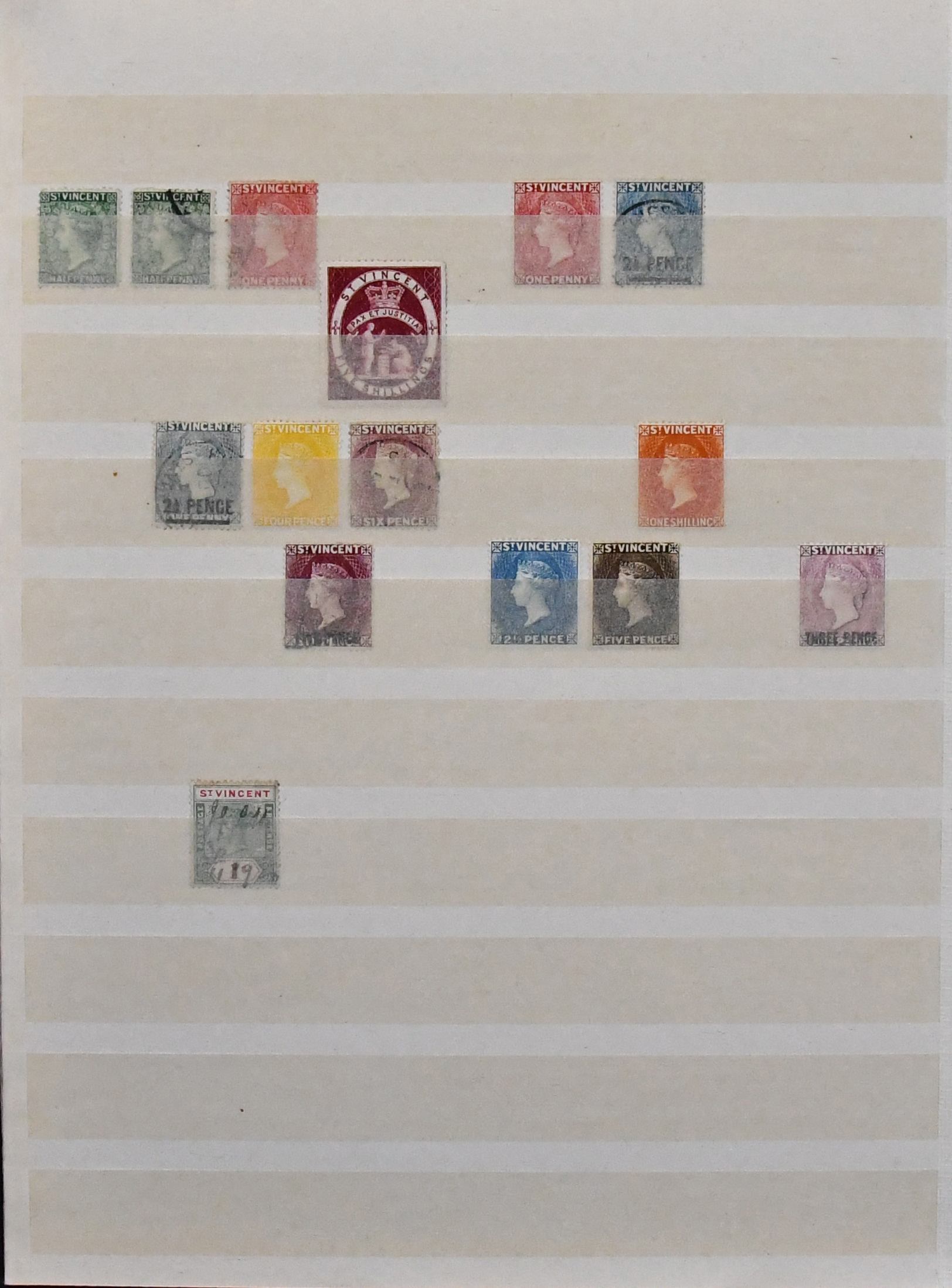 St. Vincent, 1861-1893, meist gest. Slg. in oft guter Erhaltung auf alten Goldschnitt-Vordrucken, dabei u.a. Nr. 1, 3, 8, 28, 30, 33-36 usw., Marken teils haftend, aber sicher ablösbar