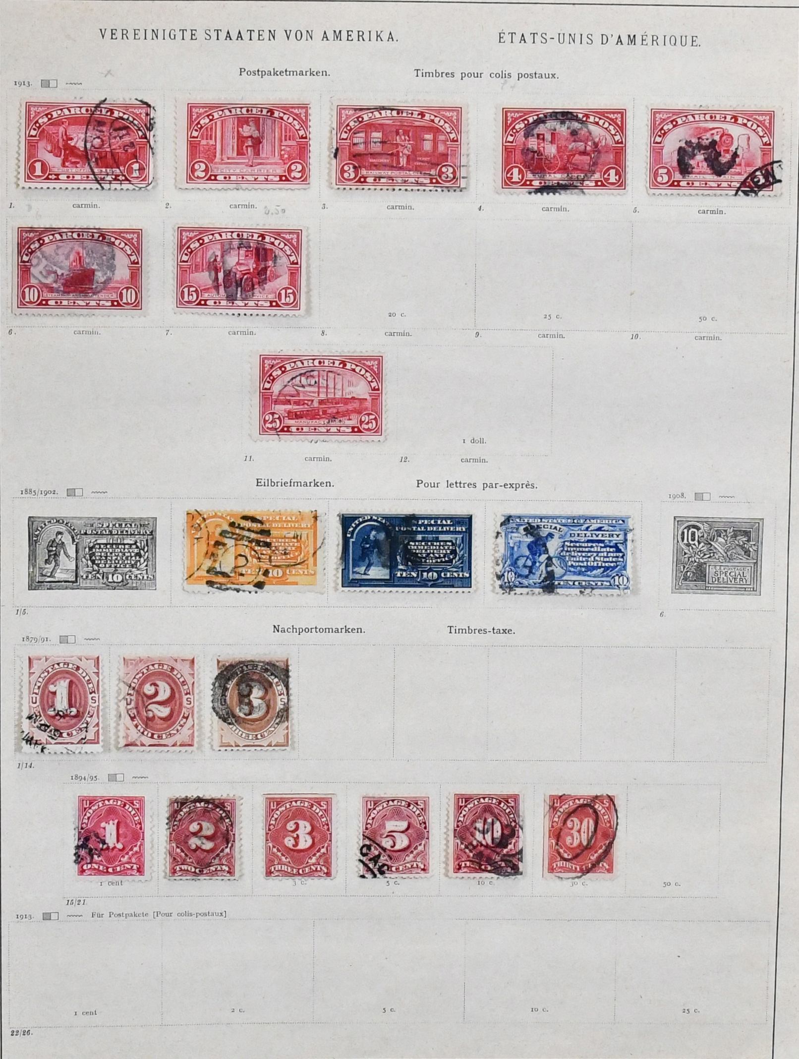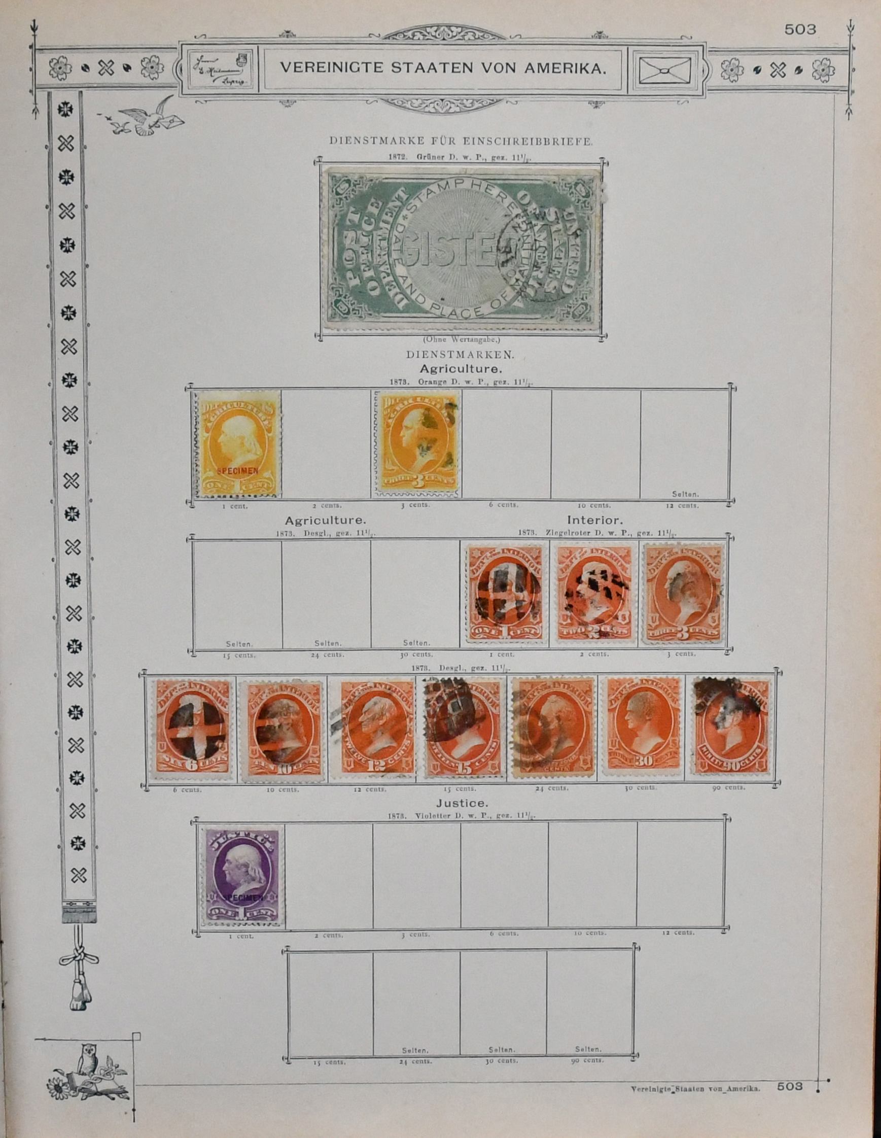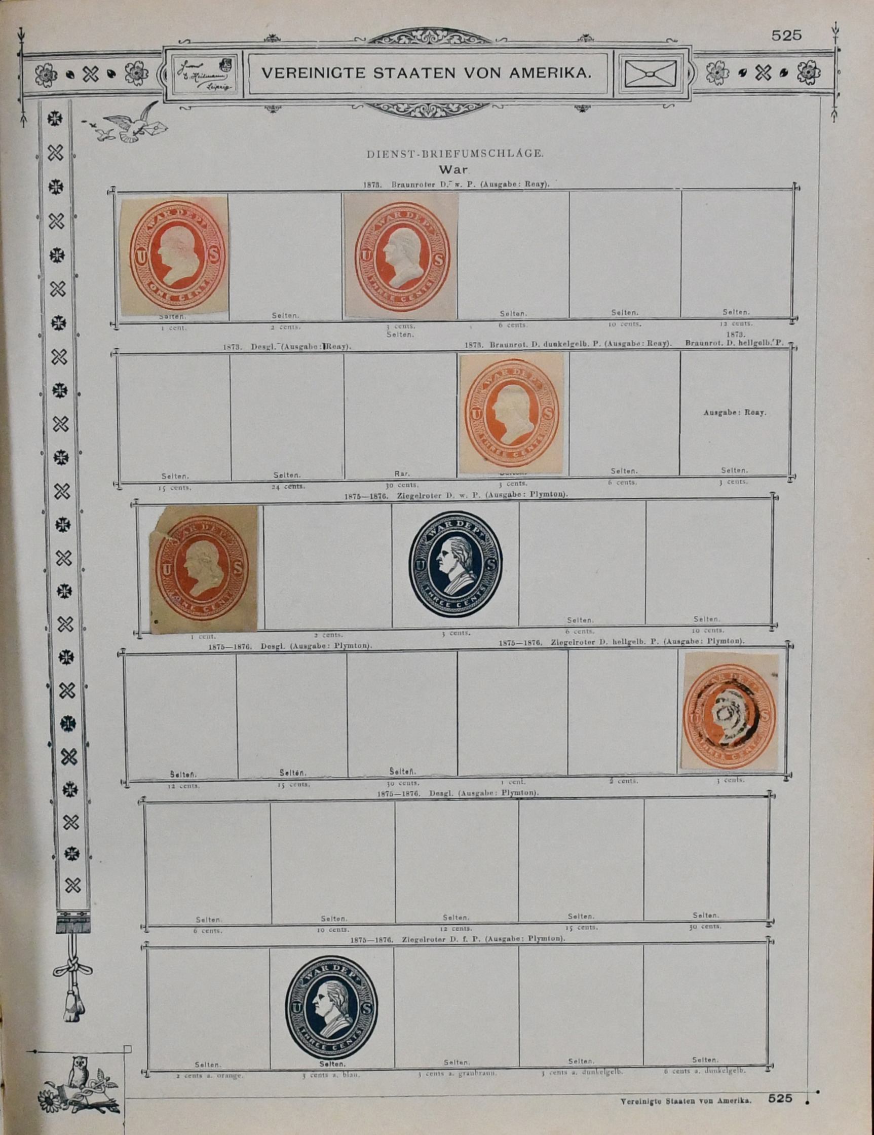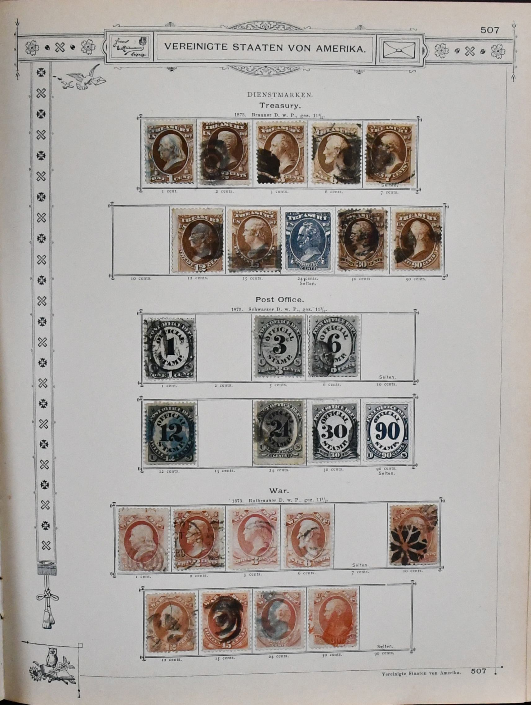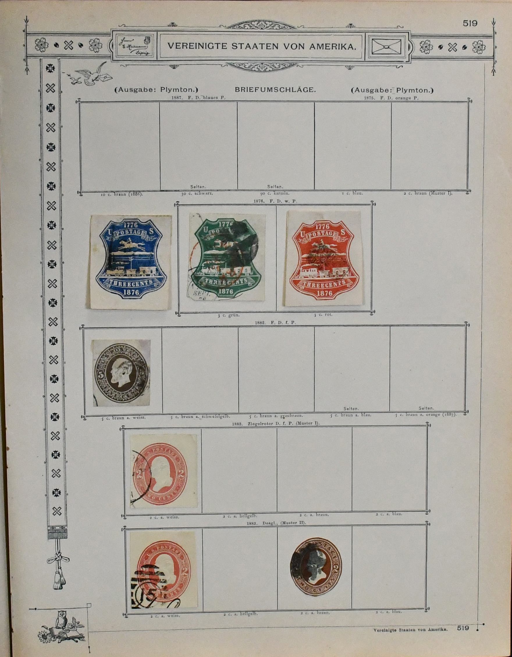 USA, 1851-1890, meist gest. Slg. in untersch. Erhaltung auf alten Goldschnitt-Vordrucken, ab Nr. 4, mit Nr. 11, 19-20, 22, 29, 36W, 36-46, 52, 53-59, 70-71 usw., ferner Zeitungs- und Portomarkenm sowie Dienst mit einigen höheren Wertstufen, zusätzlich viele Ganzsachen-Abschnitte (unbewertet), einiges teils haftend, aber sicher problemlos ablösbar