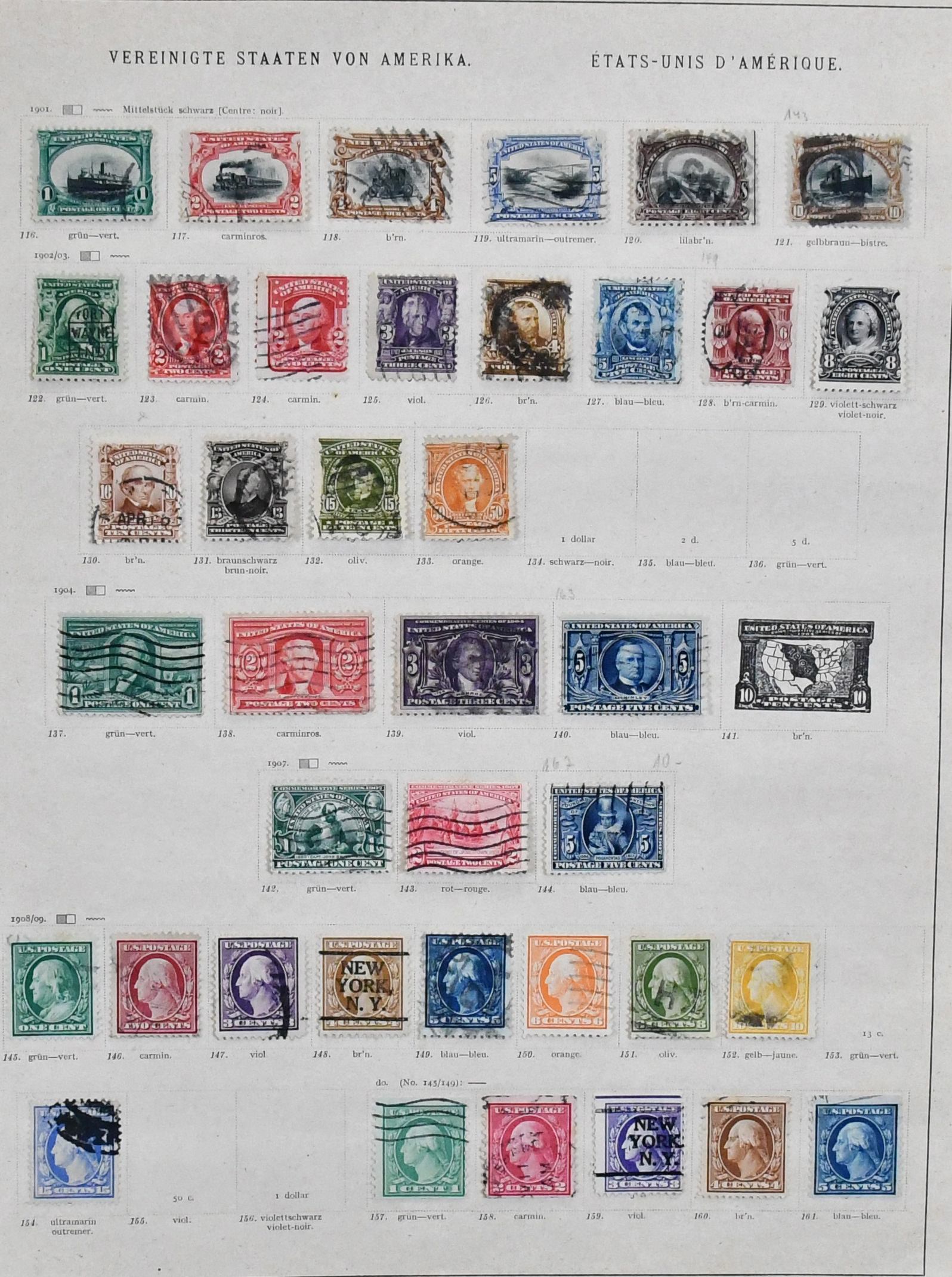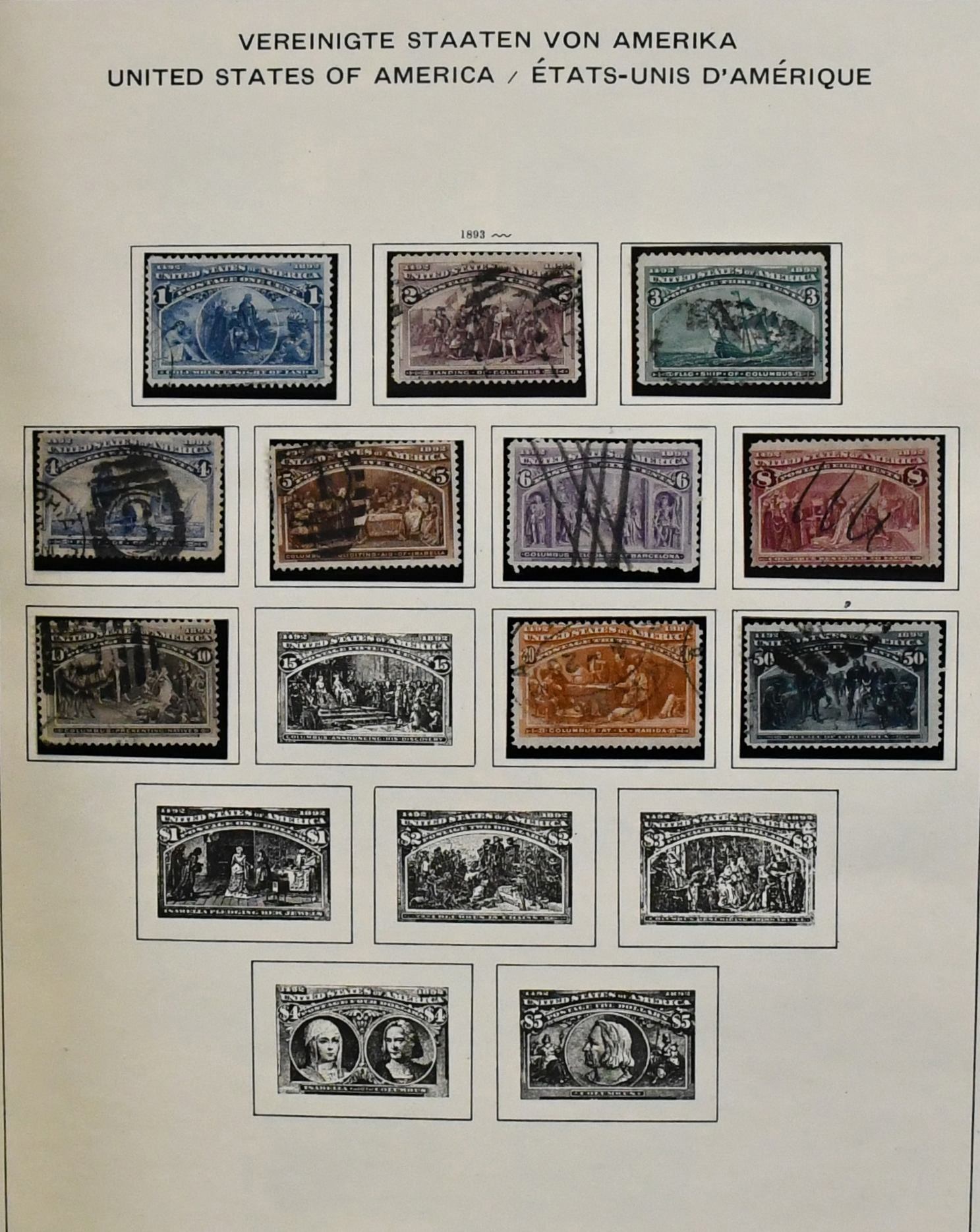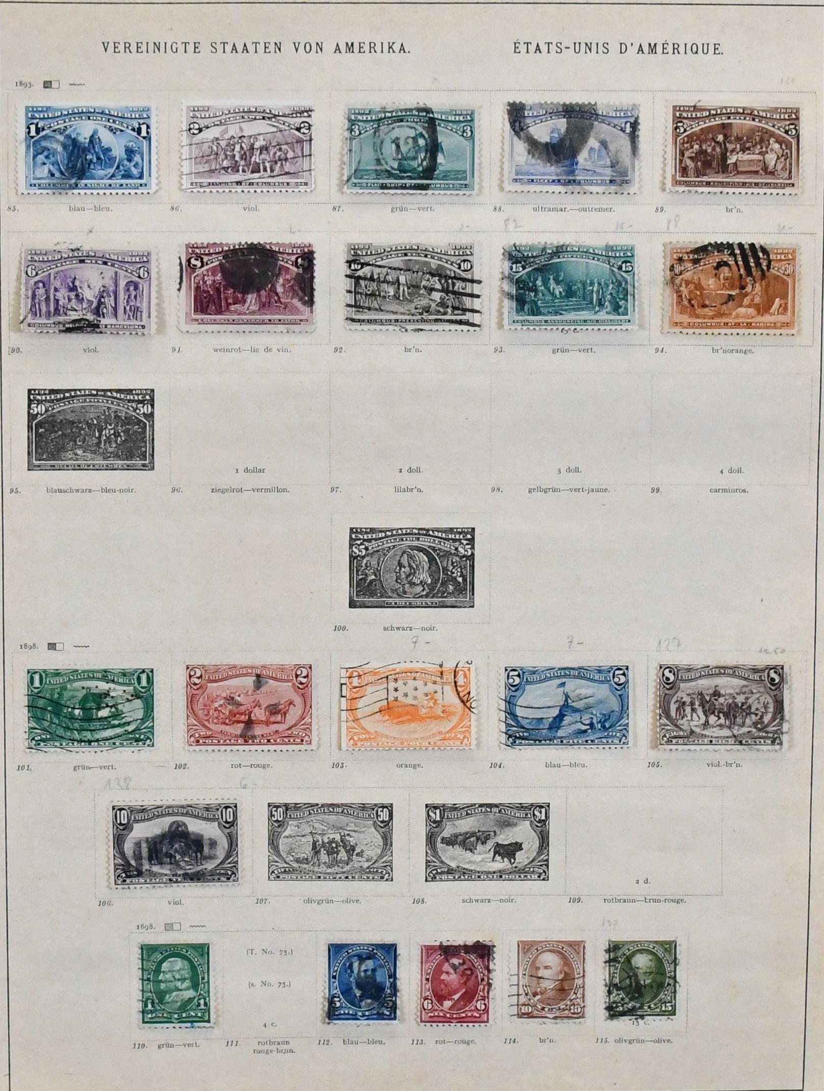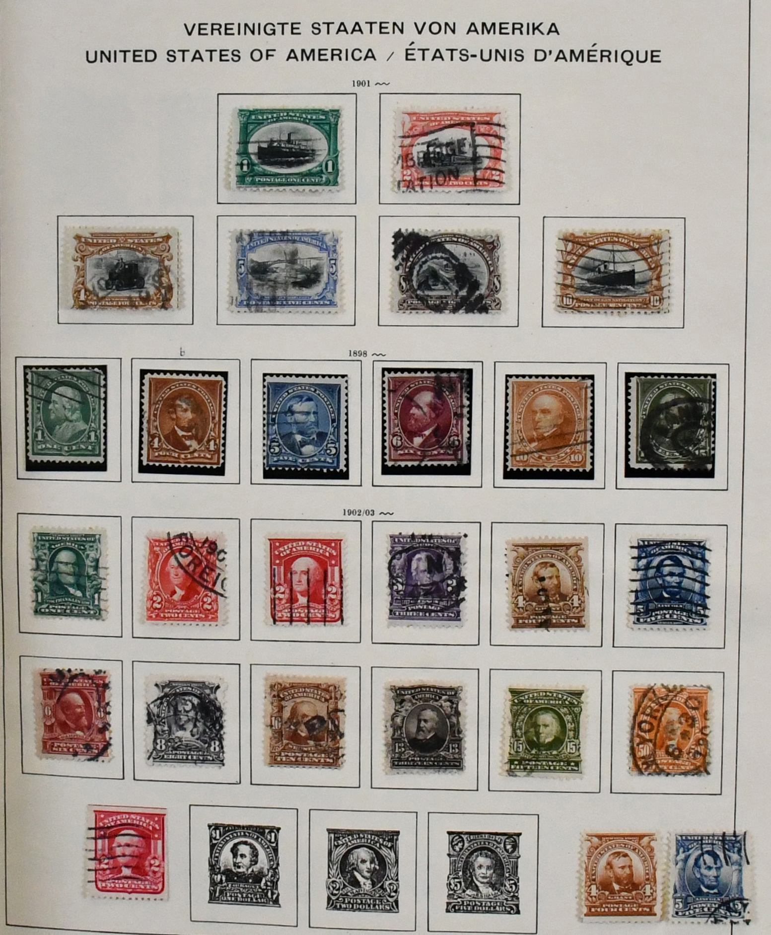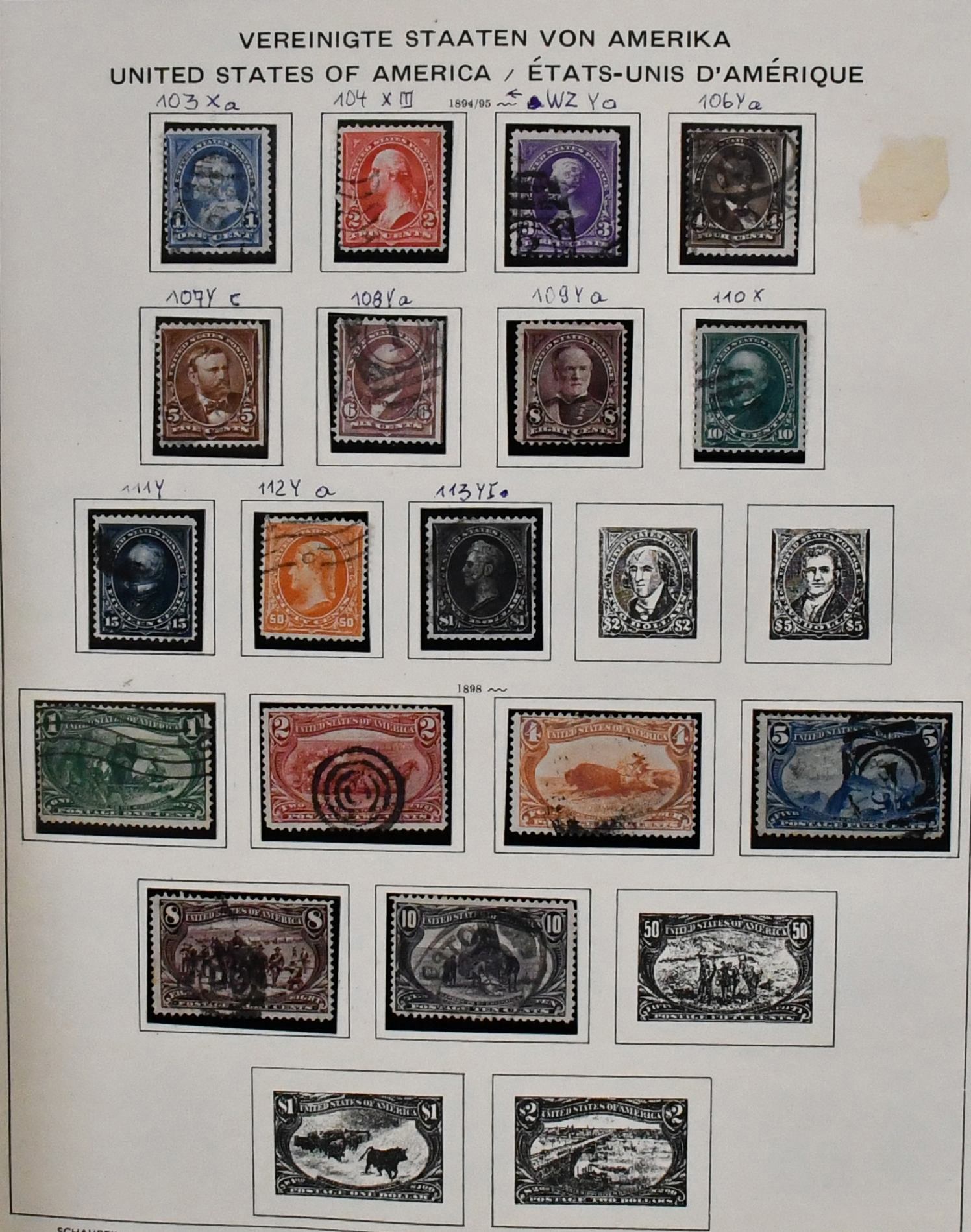 USA, 1851-1913, gest. Slg. auf alten Schaubek-Vordrucken, dabei z.B. Nr. 4, 17, 20, 22, 27-28, 37W, 40, 43, 45, 73-82, 119-21, 132-37, 155-56 usw.