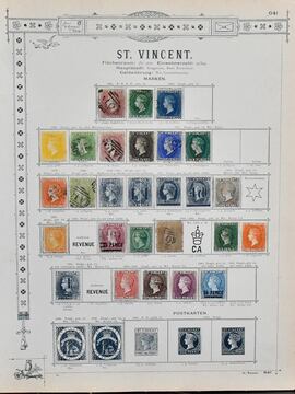 St. Vincent, 1861-1893, meist gest. Slg. in oft guter Erhaltung auf alten Goldschnitt-Vordrucken, dabei u.a. Nr. 1, 3, 8, 28, 30, 33-36 usw., Marken teils haftend, aber sicher ablösbar