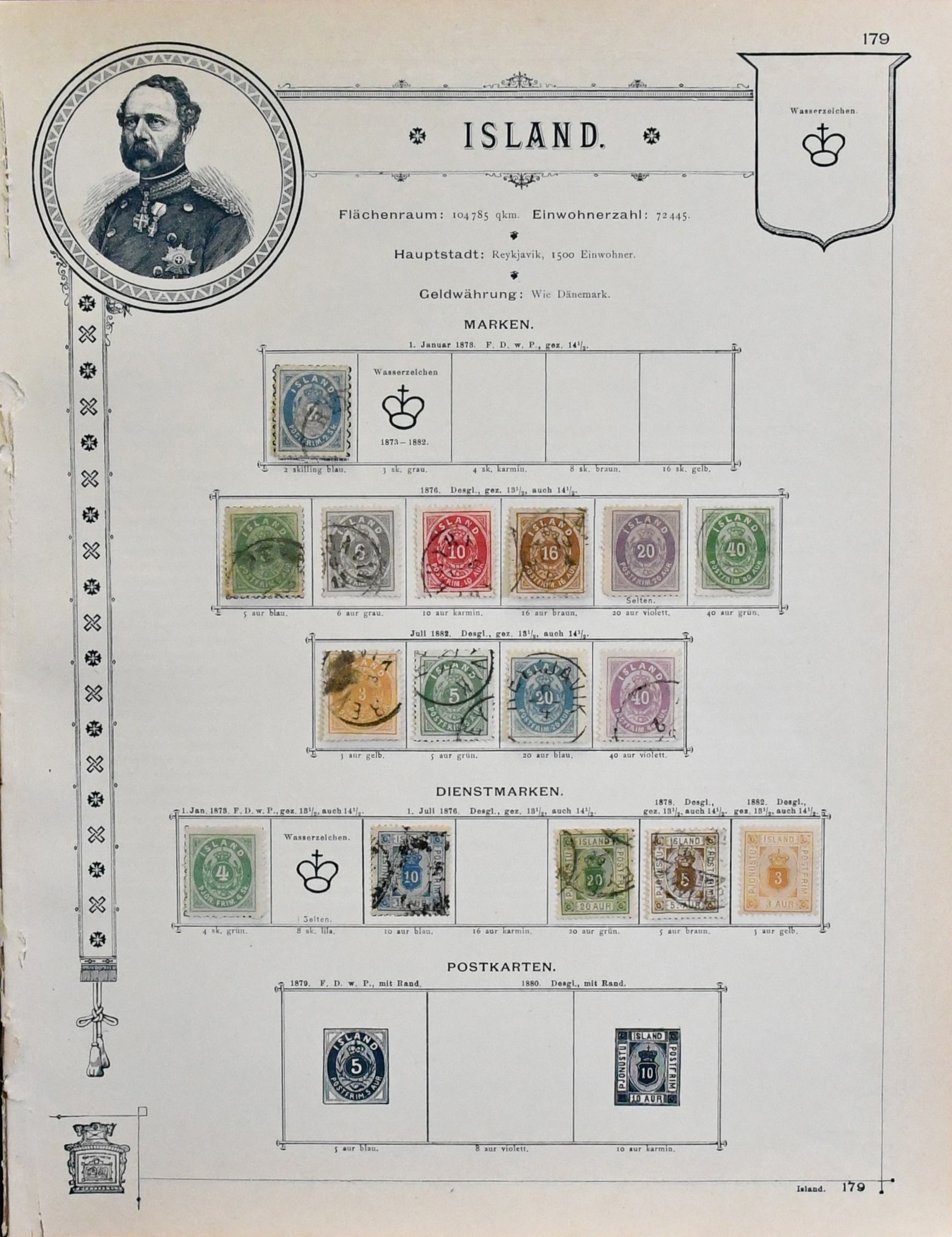 Skandinavien, überwiegend gest. Slg. in untersch. Erhaltung auf alten Goldschnitt-Vordruckseiten, dabei Island mit Nr. 1 (starke Mgl.), 7-11, 14-15, Schweden mit Nr. 7, 10, 14, 16, Finnland Nr. 3-4, 9, 18 usw., zusätzlich etliche Ganzsachen-Abschnitte