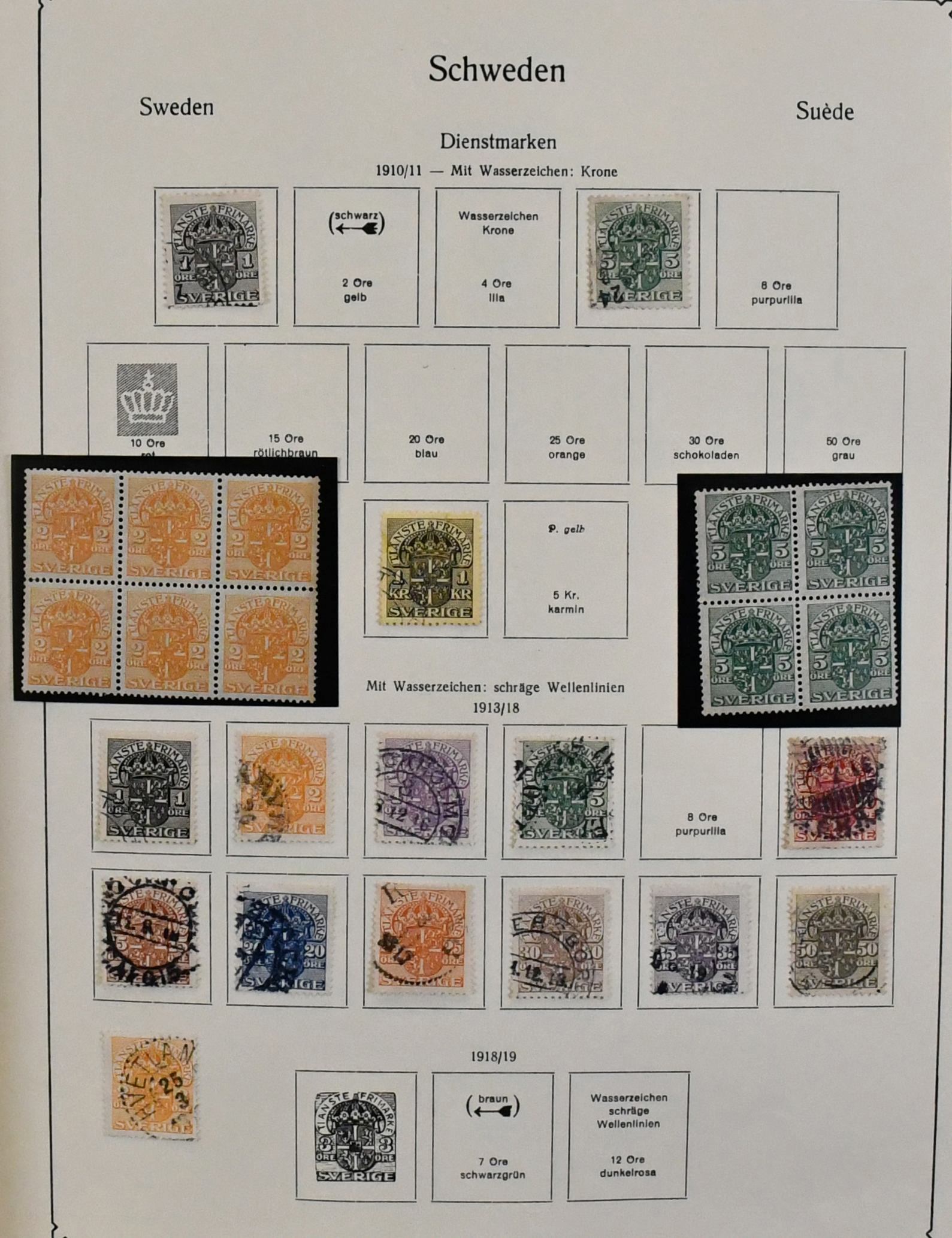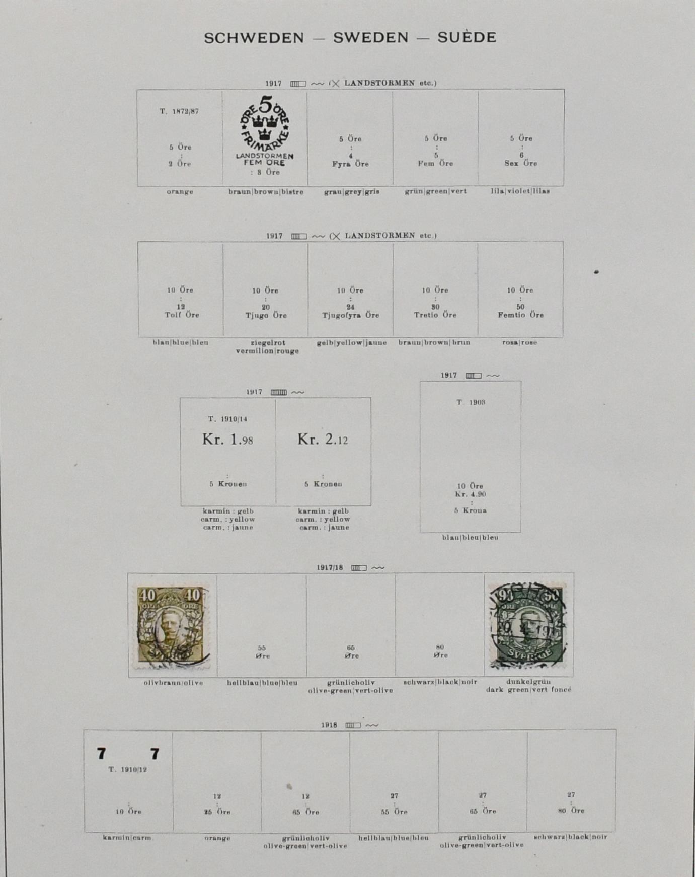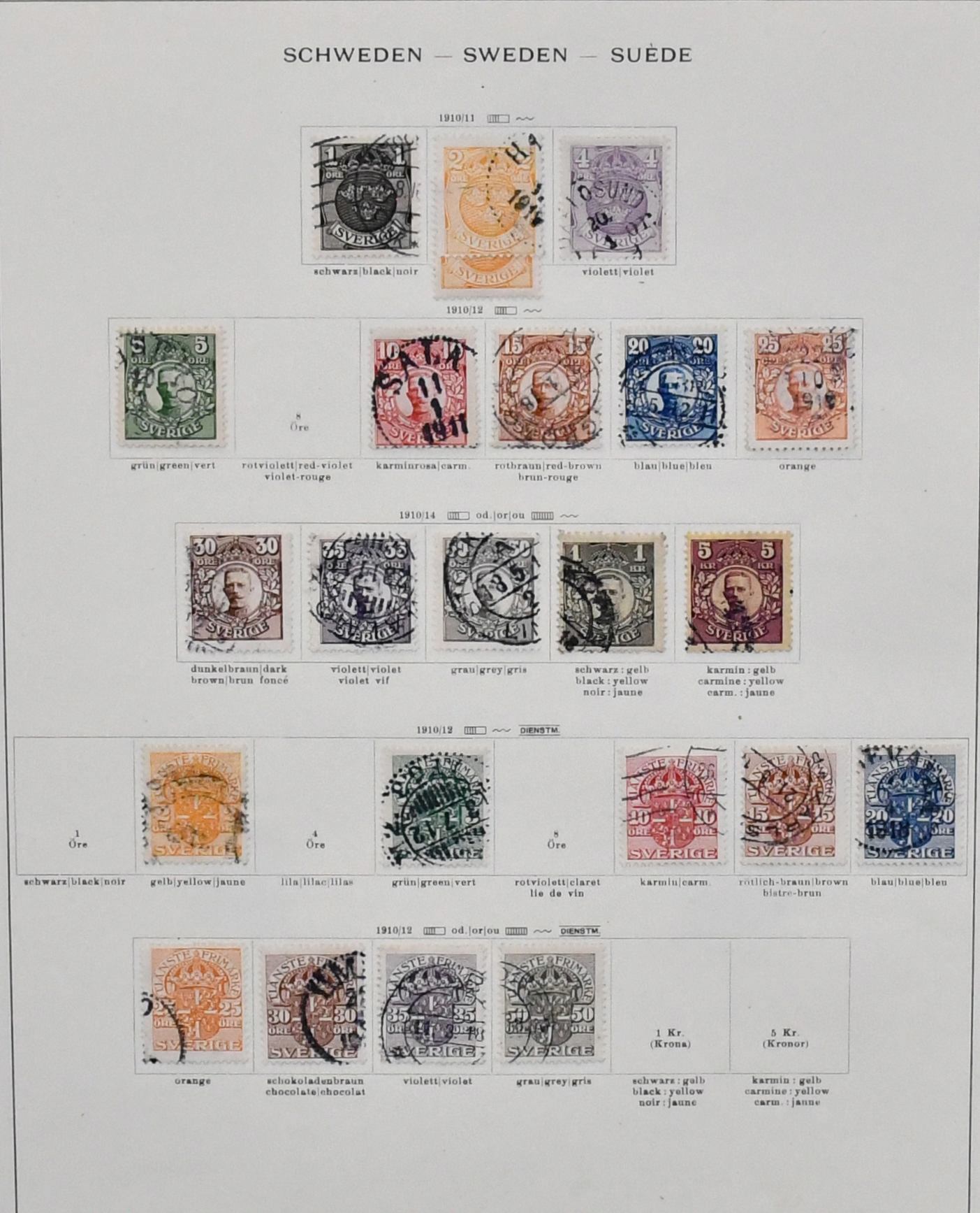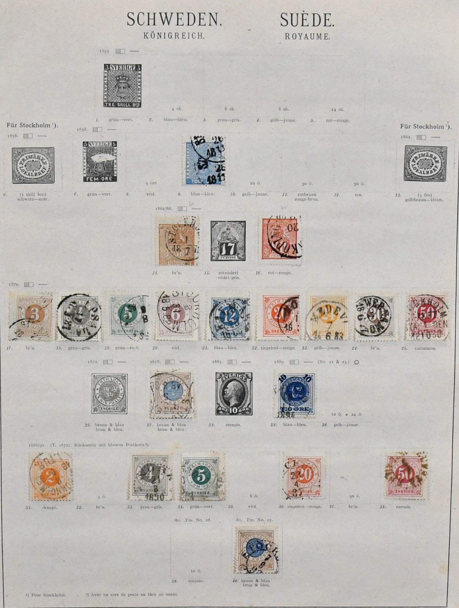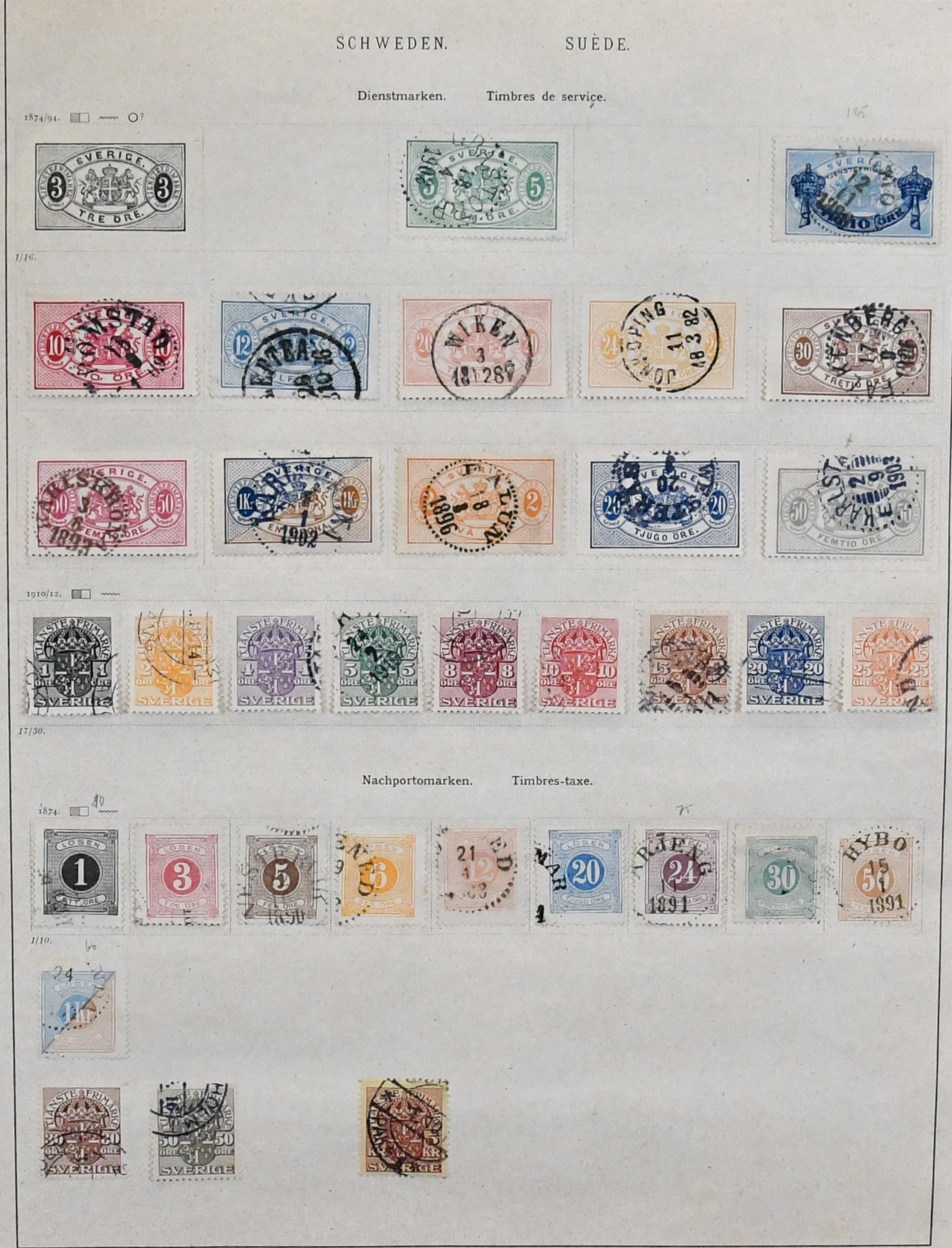 Schweden, 1858-1911, meist gest. Slg. in überwiegend guter Erhaltung auf alten Schaubek-Vordrucken, dabei u.a. Nr. 7b, 9a, 10a, 11, 14II, 16, 17-25, 27, 54 usw. Ferner Dienst- und Portomarken, z.B. P7cA