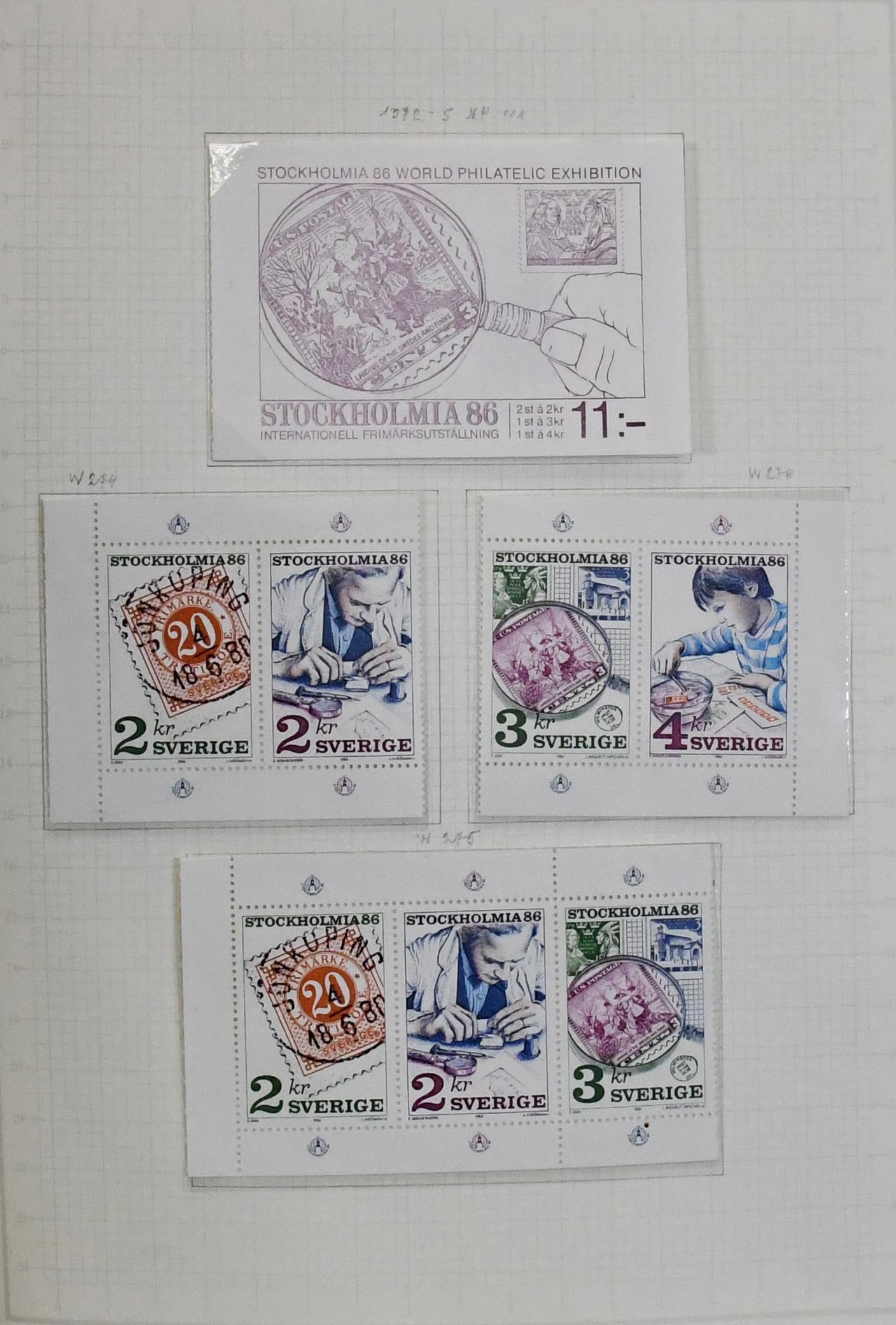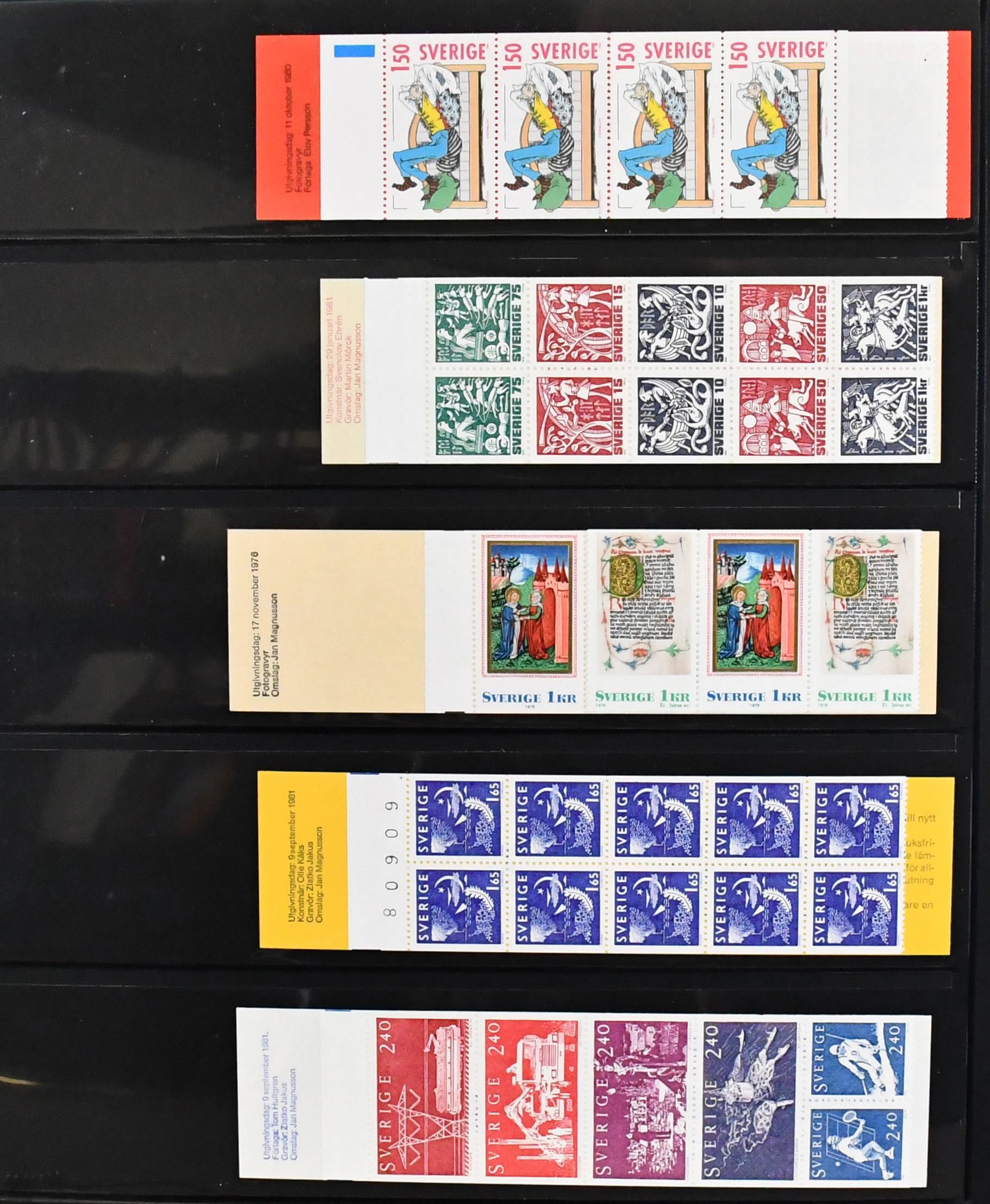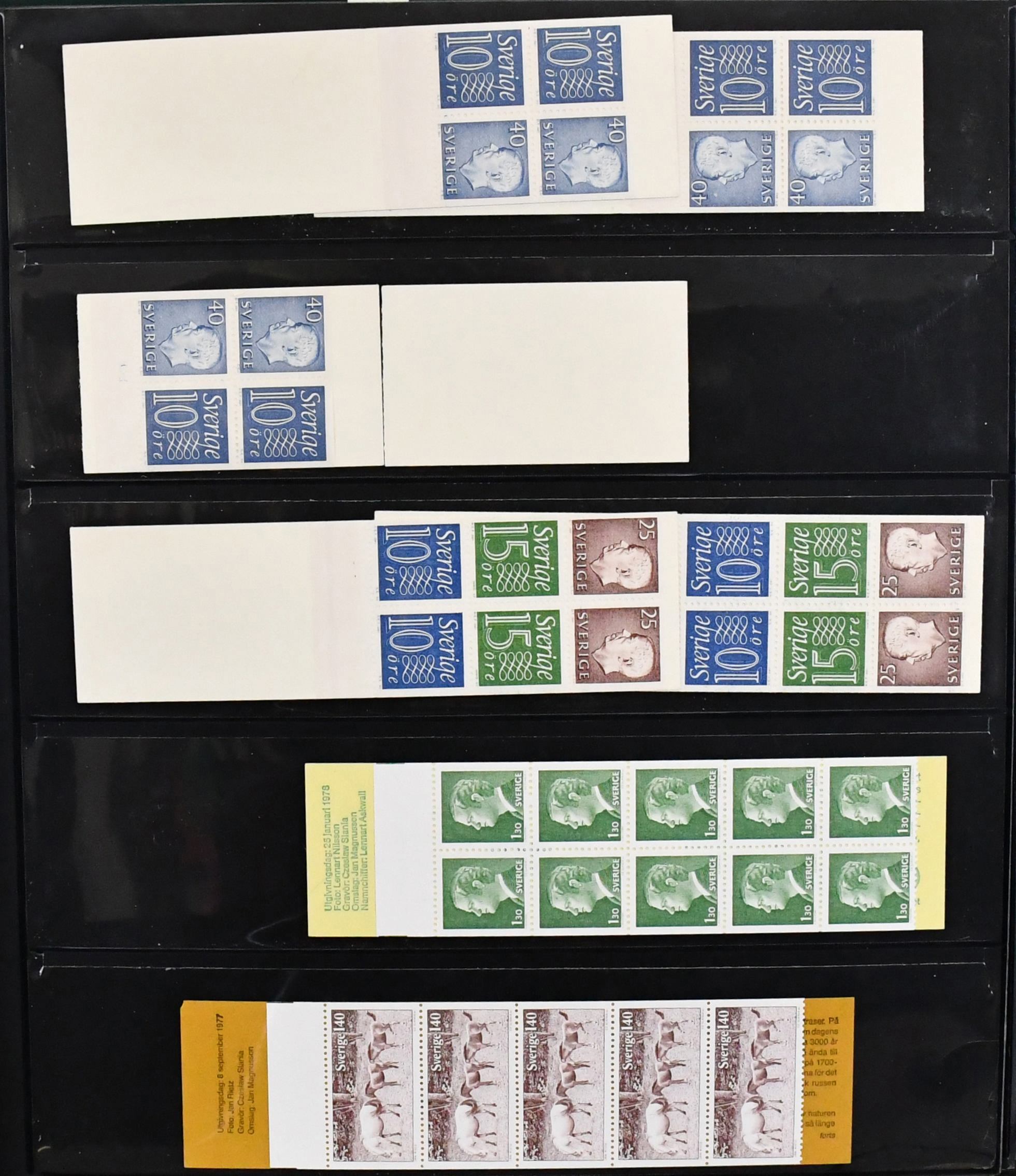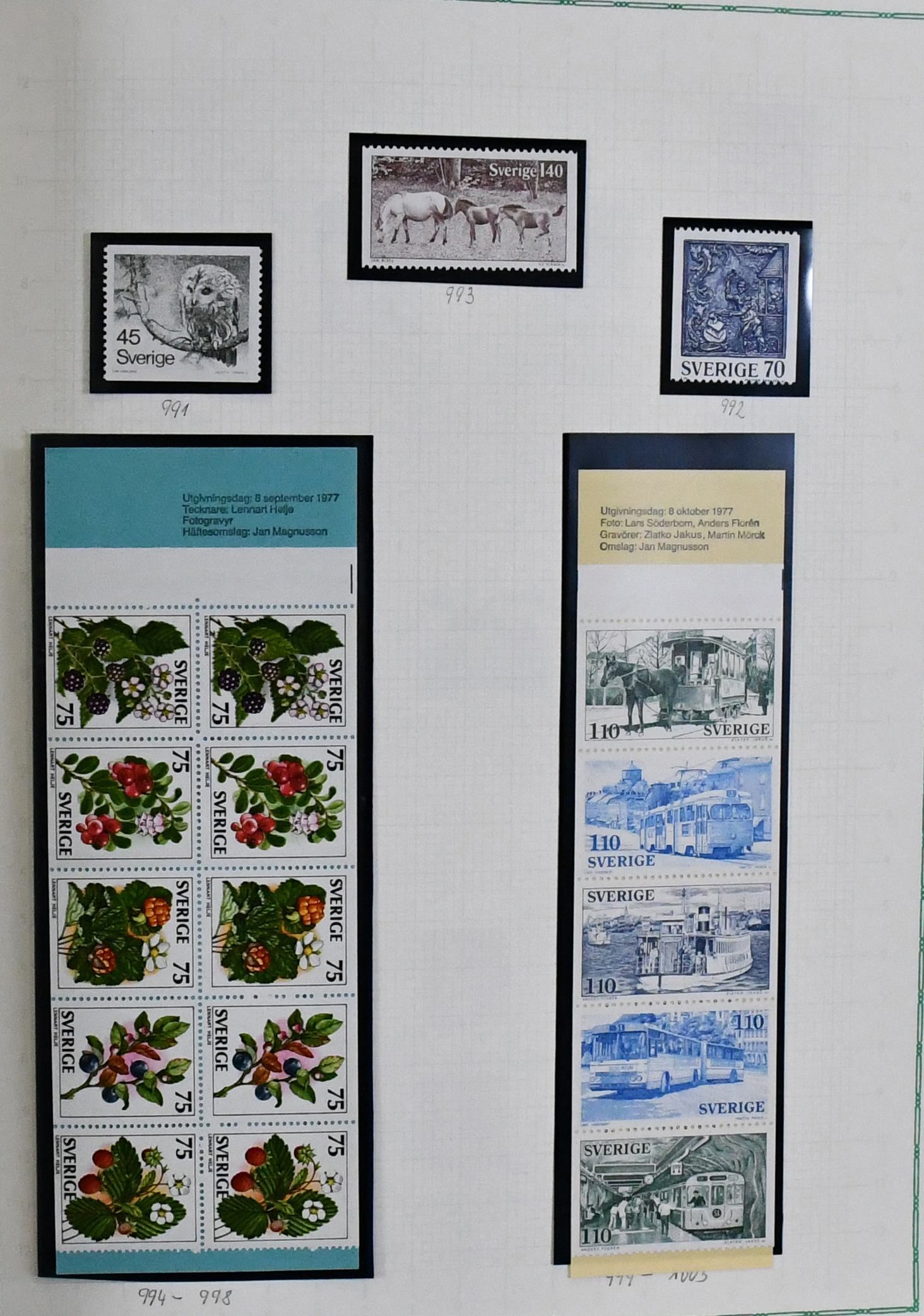 Schweden, 1970-1985 (ca.), postfr. Slg. mit einer Vielzahl von Zusammendrucken, Markenheftchen usw., im selbstgest. dicken Leuchtturm-Klemmbinder, enorm reichhaltig und alleine die enthaltene Nominale beträgt 3100,- SKr. (= 280,- Euro)