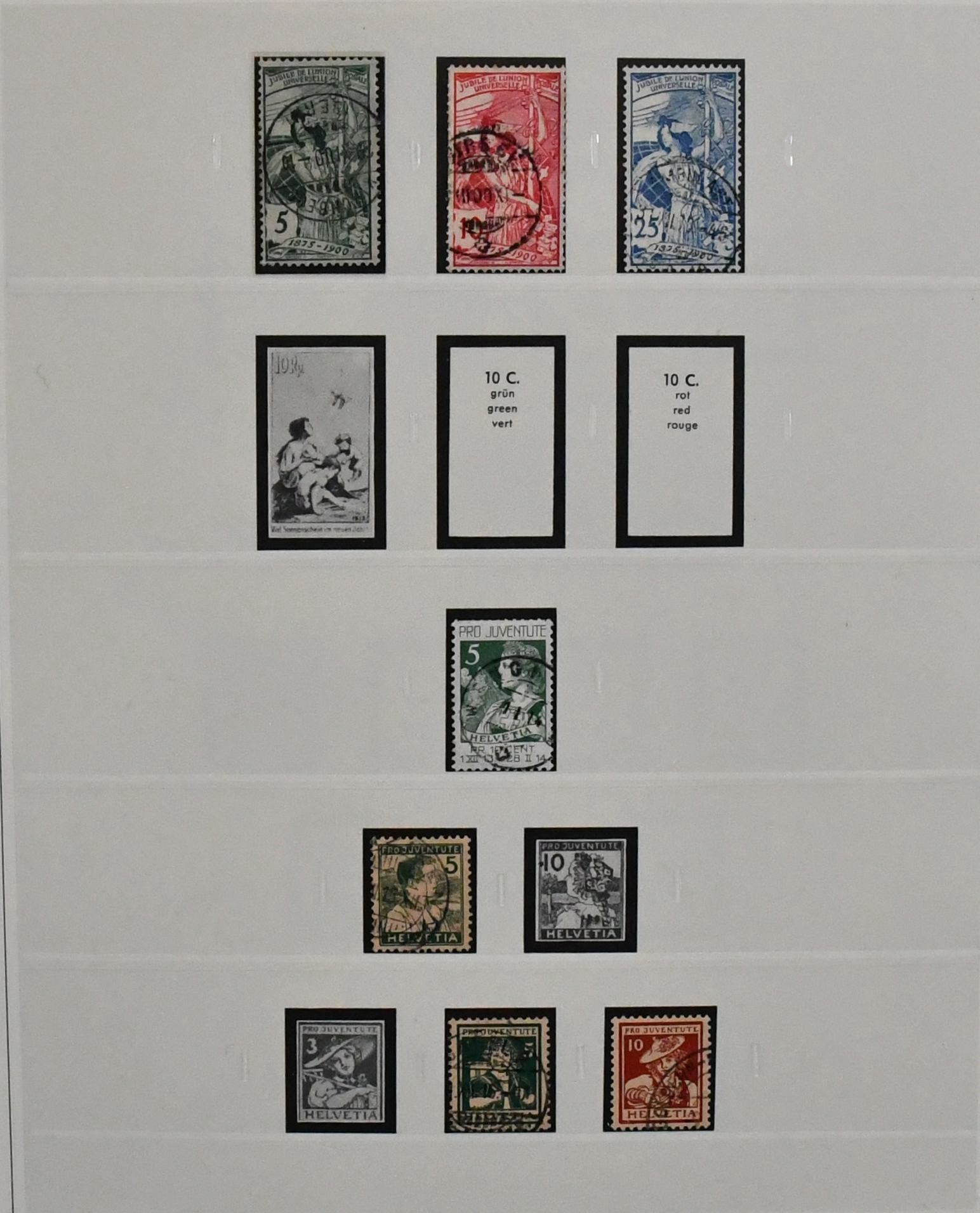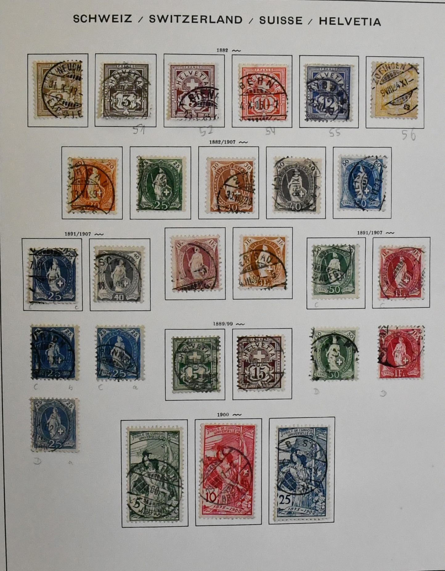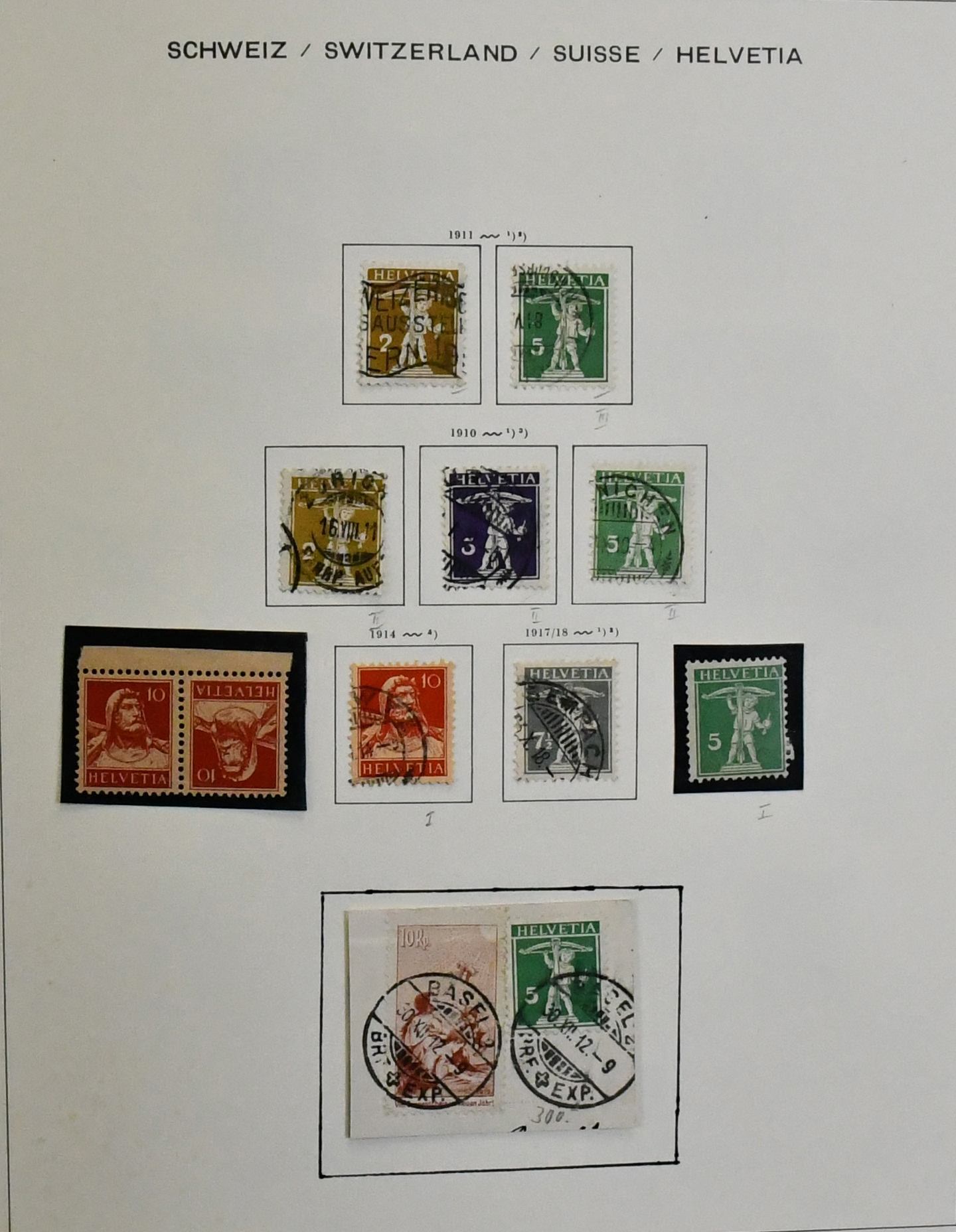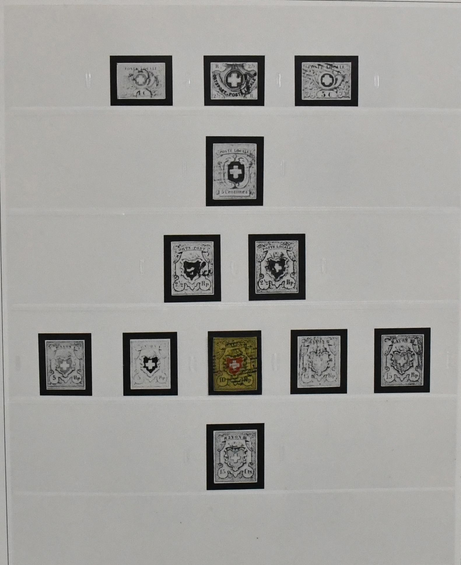 Schweiz, 1843-1920, meist gestempelte Slg. in überwiegend guter Erhaltung auf alten Schaubek-Vordrucken. Dabei eine "Zürich 6" (Mi.-Nr. 2II) auf sehr seltenem Brief von Wald (Gemeinde im Züricher Oberland) nach Zürich (vom 21.10.1846), da die Marke senkrecht nicht mit der Schere getrennt, sondern gerissen wurde, leider nicht perfekt. Dazu eine weitere "Zürich 6" mit klarem rotem Rosettenstempel, allerdings beschädigt und daher unberechnet. Ferner die Rayons inkl. Nr. 7II mit Federzug-Entwertung und ungest., Nr. 8II(2), 9 gest. und ungest., 12(2), Strubel mit Nr. 19 gest., 13-17 teils mehrfach und oft gut geschnitten, sitzende Helvetia mit u.a. Nr. 21, 39 u. 40, je gest., Pro Juventute 1913-1920 gest. kpl., Nr. 145 u. 152 je ungebr., usw. Hochwertiges und interessantes Objekt
