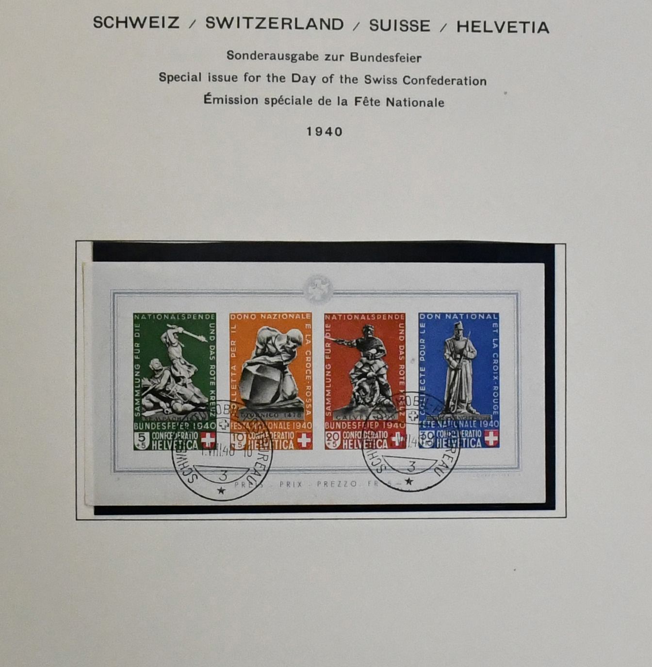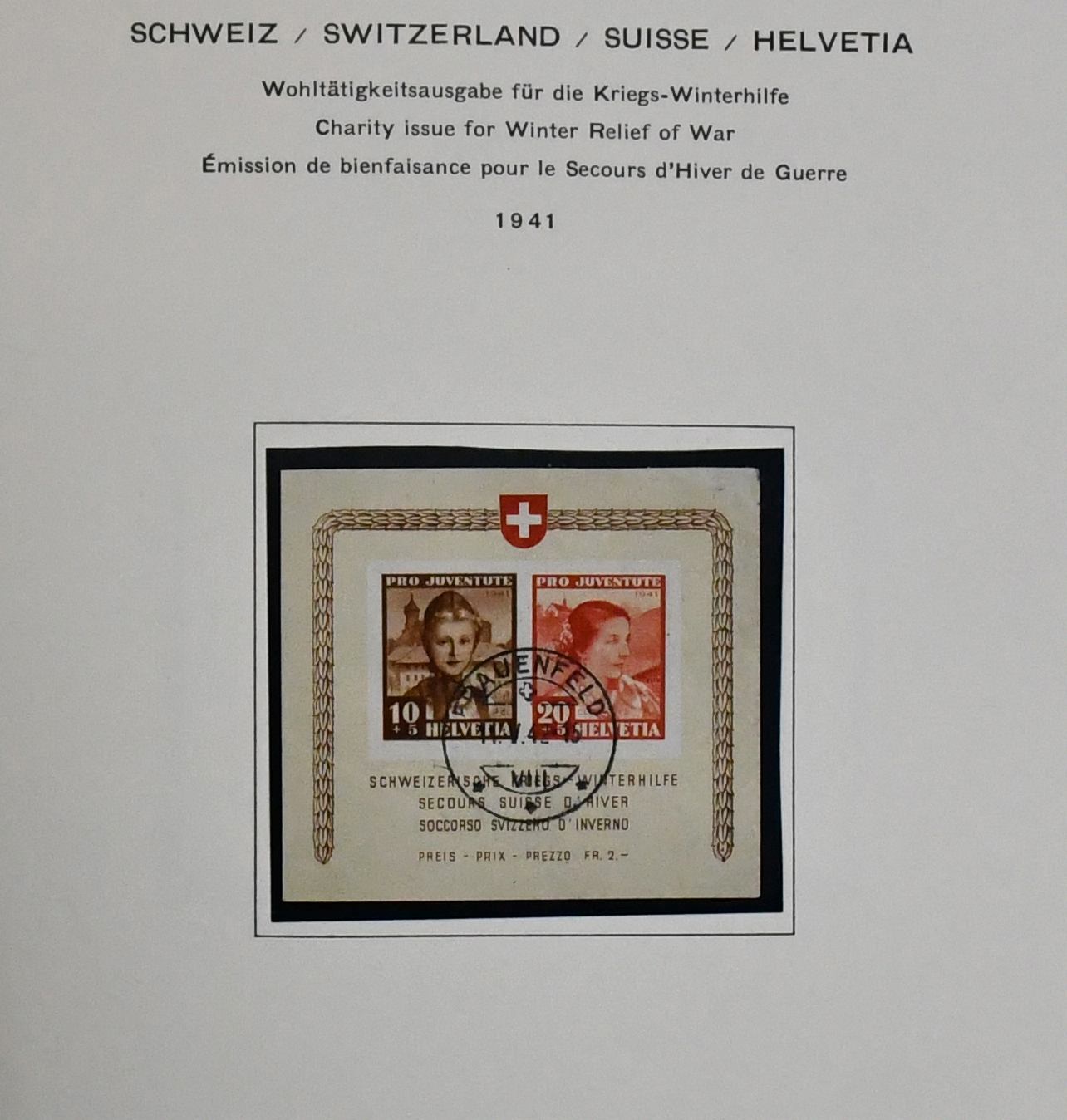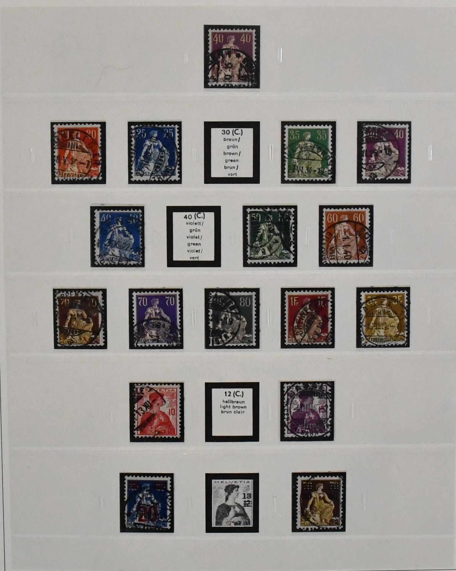 Schweiz, 1850/1944, gestempelte Sammlung ab Klassik, dabei drei Rayons, Strubel Nr. 13/18, 20/35, von 1900-1944, lediglich ohne Bl. 1, Nr. 145 u. 152, in den Hauptnummern nahezu komplett, inkl. Bl. 2/10, Helvetia nach Zähnungen spezialisiert, Flugpost-Ausgaben, allen Pro Juventute-Sätzen usw., im Vordruckalbum. Mi. 12500,-, dazu eine Zürich Nr. 1 schön gestempelt, aber oben Randkerbe (Mi. 15.000,-), sowie unberechnet eine falsche Bundespost Nr. 2