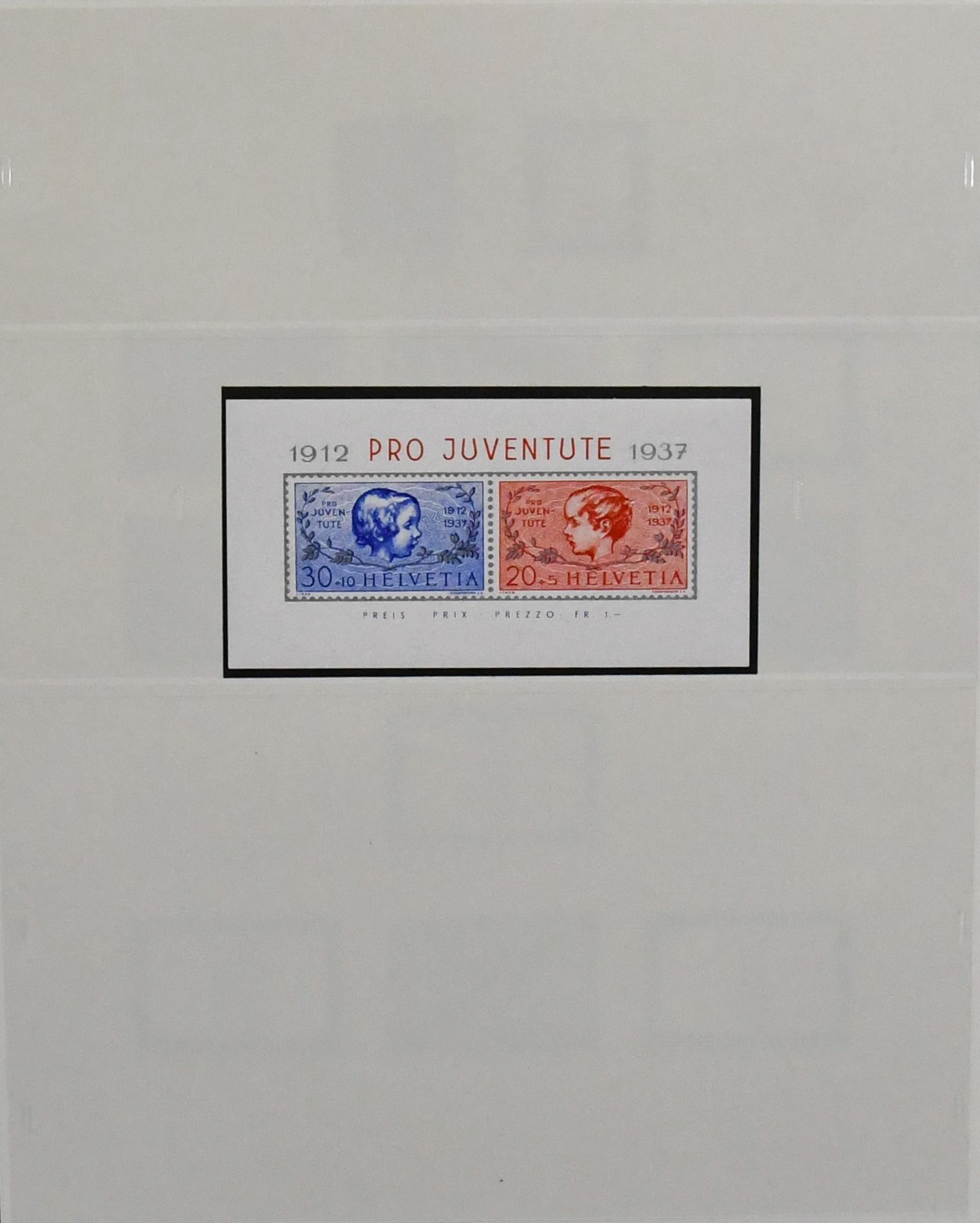 Schweiz, 1943-1963, postfrische Slg. auf Borek-Vordrucken im Borek-Klemmbinder, u.a. mit Bl. 8-10, 12-13, Mi. 1500,-