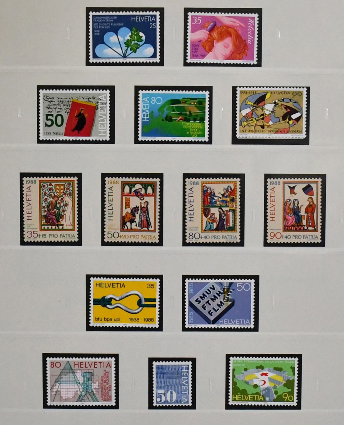 Schweiz, 1980-2000, kpl. (teils überkpl.) postfr. Sammlung in zwei neuwertigen SAFE-Vordruckalben mit Schubern. Alleine die gültige Nominale liegt bei ca. 470,- SFr.