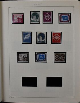 Vereinte Nationen, Slg. mit Genf 1969/1989 postfr. u. gest. je kpl., und Wien 1979/1989 ebenso postfr. u. gest. je kpl., im neuwertigen Lindner-T-Vordruckalbum. Alleine die postfr. gültige Genf-Nominale beträgt 220,- SFr. (= 210,- Euro)