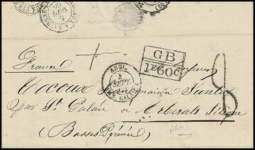 "Argentinien-England/Frankreich", 1860/67, zwei Briefe (einer etwas fleckig), je von Buenos Ayres, mit Ovalstpl. "FR 2.F.20 C." nach Wolverhampton, sowie Ra2 "GB 1 F. 60 C." nach Frankreich