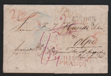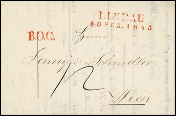 "B.O.C.", L1 in grün 1848, in rot 1843/46 auf drei Briefen, einmal sowohl in rot und schwarz zusammen (!), sowie nur in schwarz 1844 ff. auf fünf Briefen, gesamt zehn Briefe