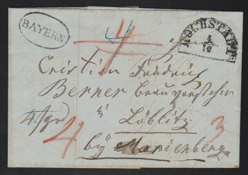 "Bayern", Ovalstempel auf zwei Briefen, 1839 mit L1 "FÜRFELD" nach Posen recom., sowie 1850 auf Brief von Höchstadt (HK)