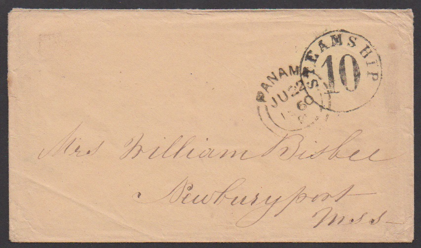 "Panama-USA", 1860, beiges Couvert mit Stempel "Steamship 10" nach Newburryport/Mass.