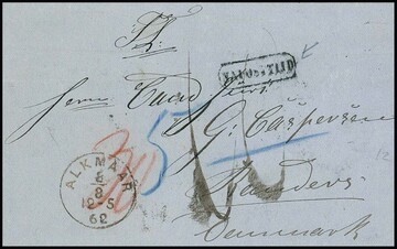 "Holland-Dänemark", drei Briefe, aus Alkmaar 1862 mit Ra1 "Na Postijd" nach Randers, sowie aus Rotterdam 1857 (hs. Taxe "5") und Amsterdam 1865 nach Copenhagen