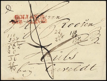 "Hollande par Cleves", roter L2 auf kpl. Faltbrief 1804 von Amsterdam nach Hüls bei Krefeld. Feuser + 600,-