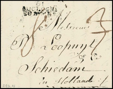 "Fransche Corresp.", seltener Rautenstempel von Breda rs. auf Faltbrief 1816 aus Frankreich nach Schiedam/Holland, zusätzlich rs. seltener Debourse-L2 von Rotterdam